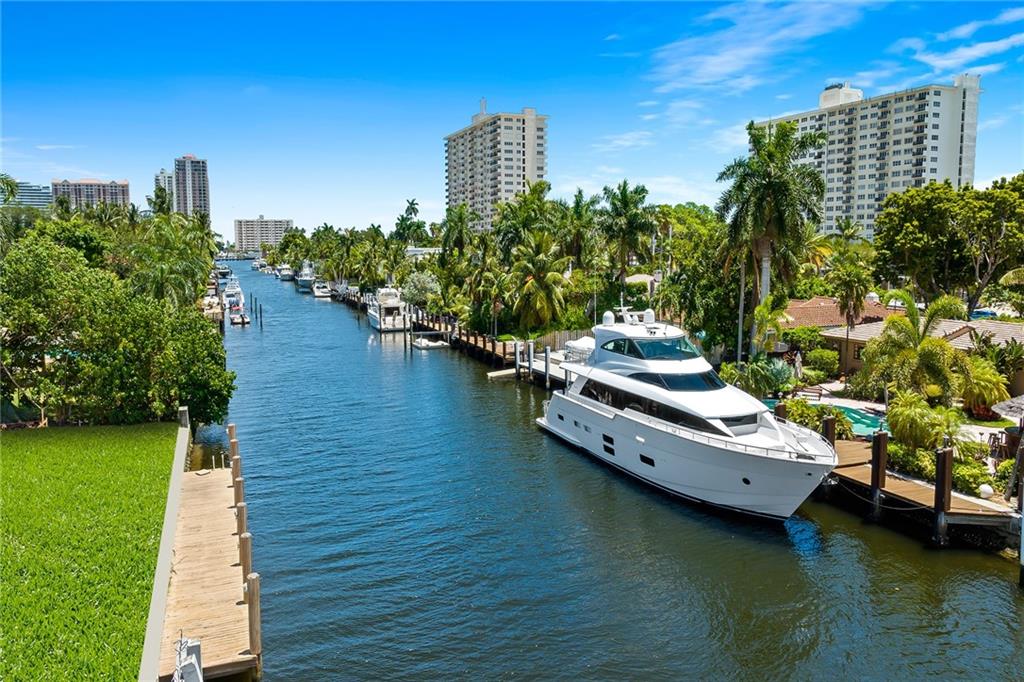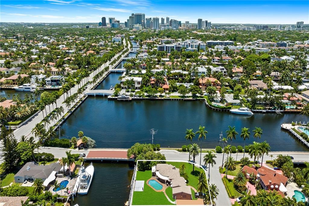 Fabulous opportunity to build on an extremely desirable corner lot in the exclusive Seven Isles just off Las Olas Blvd. This is being sold at land value with a brand new seawall currently under construction. A well positioned house here would offer amazing views that are very rarely found with waterviews on all 3 sides of lot, East view straight down canal, South water lake view, West waterview and also a downtown view! 100 ft of waterfront.... Photos and aerial shots should emulate view for new build!!