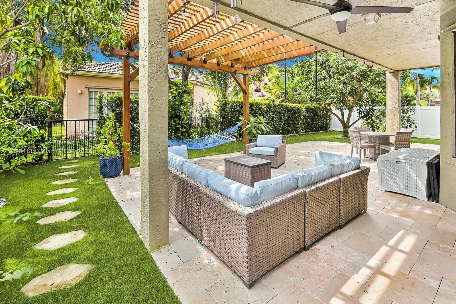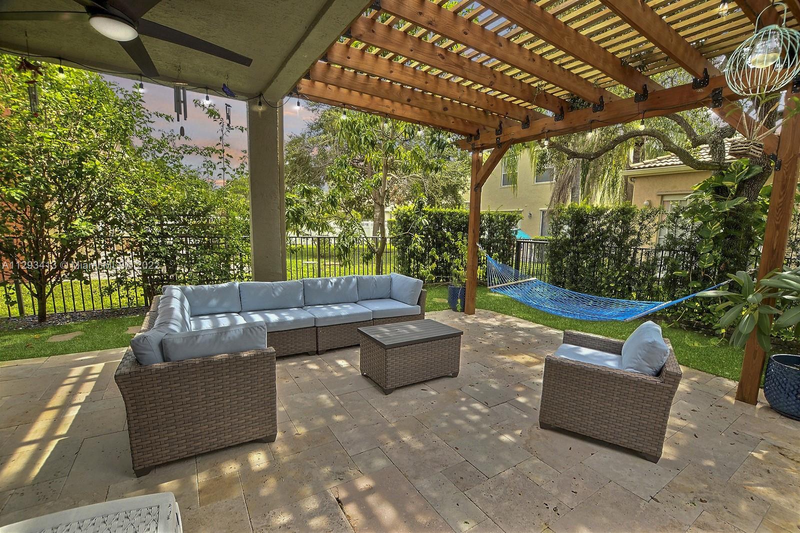 WELCOME TO THE RESORT STYLE MANNED GATED COMMUNITY OF RIVIERA ISLES, FEATURING THIS SPECTACULAR 5 BEDS 2.5 BATH HOME W 3,170 SQ FT OF LIVING SPACE. ELEGANT DOUBLE DOOR ENTRY OPENS TO TASTEFUL DECOR, GORGEOUS FIXTURES, STUNNING WOOD & IRON STAIRCASE & DETAIL THROUGHOUT. FABULOUS KITCHEN HAS TWO-TONED CABINETRY & QUARTZ COUNTERS. UPSTAIRS PRIMARY SUITE RETREAT W SITTING AREA. ENSUITE BATH HAS 2 VANITIES, SOAKING TUB & SHOWER. SERENE BACKYARD PARADISE PROVIDES THE ULTIMATE OUTDOOR LIVING/ENTERTAINING SPACE W EXTENDED PATIO & CHARMING PERGOLA LINED BY AMBIENT MATURE FRUIT TREES & LOW MAINTENANCE TURF. OTHER UPGRADES: SOLAR PANELS, ROOF 4 YEARS OLD & BRAND NEW IMPACT WINDOWS. ENJOY ACCESS TO UNPARALLELED RESORT STYLE ONSITE AMENITIES IN PROXIMITY TO DESIRABLE SCHOOLS, I-75, SHOPS & RESTAURANTS.