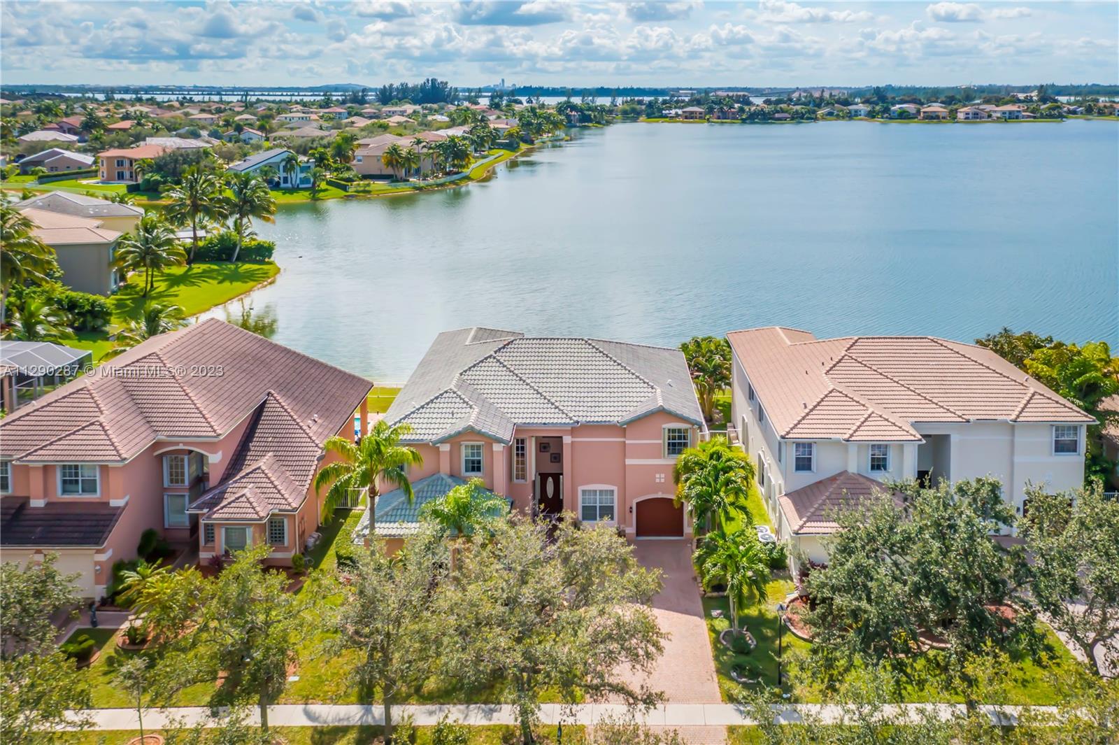 STUNNING FIVE BEDROOM, PLUS LOFT, THREE & A HALF BATHROOM, TWO STORY HOME W/SPECTACULAR VIEWS OF THE WIDE LAKE FROM THE FRONT & BACK OF THE HOUSE! LOWER LEVEL OF THIS HOME IS PROTECTED BY ***HURRICANE IMPACT WINDOWS & DOORS***, UPPER LEVEL IS PROTECTED BY ACCORDION SHUTTERS. THIS HOME FEATURES TILE FLOORING ON THE LOWER LEVEL, WOOD LAMINATE FLOORING ON THE STAIRS & UPPER LEVEL, UPGRADED WROUGHT IRON STAIR RAILING, CROWN MOLDING, BEAUTIFUL CHANDELIERS & UPGRADED BLINDS THROUGHOUT. CHEFS KITCHEN IS COMPLETE W/GRANITE COUNTERTOPS, WOOD CABINETRY, DECORATIVE BACKSPLASH & SNACK BAR. TWO BEDROOMS LOCATED ON THE LOWER LEVEL. THE FENCED-IN BACKYARD IS PERFECT TO ENTERTAIN W/A LARGE POOL, SPA & PATIO OVERLOOKING THE LAKE. LOCATED IN A CUL DE SAC W/NO NEIGHBORS IN THE FRONT OR BACK OF THE PROPERTY.