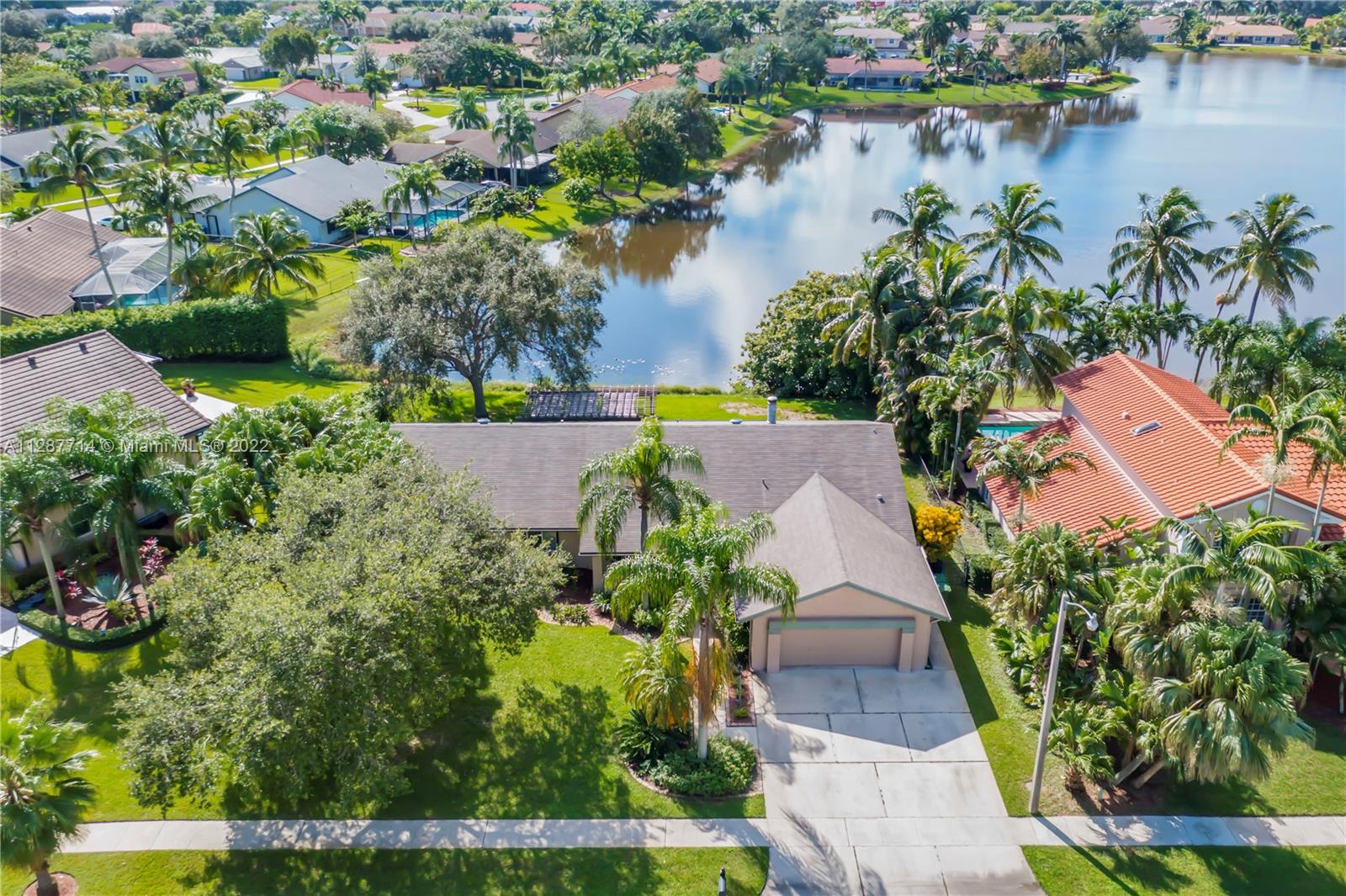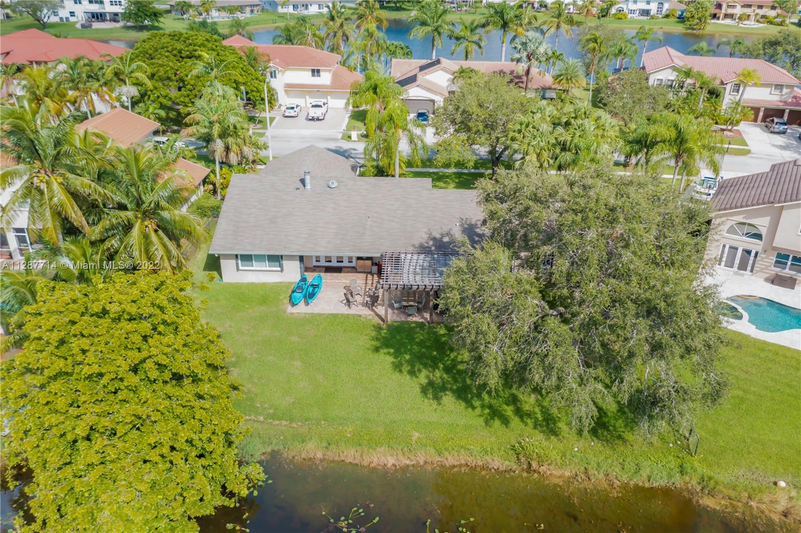 Gorgeous 1 story home on an oversized .32 acre lakeside lot in Pasadena Estates II at Chapel Trail! This home features a **BRAND NEW AC (2023)**, stunning tile floor throughout, volume ceilings, & a working Chicago brick fireplace! The master suite is complete w/2 custom walk-in w/built-ins, & a brand new upgraded master bath modern style! The large fenced-in backyard has an amazing lake view, huge paver patio, & an oversized pergola that provides the perfect outdoor entertaining space. There is plenty of space for a pool! This is a ***SMART HOME***, including a newer smart water heater, & upgraded smart switches. A Konnected© Smart security system was installed. Home is wired w/ 12 camera 4k PoE surveillance system. Upgraded w/both ***HURRICANE IMPACT WINDOWS & ACCORDION SHUTTERS!***