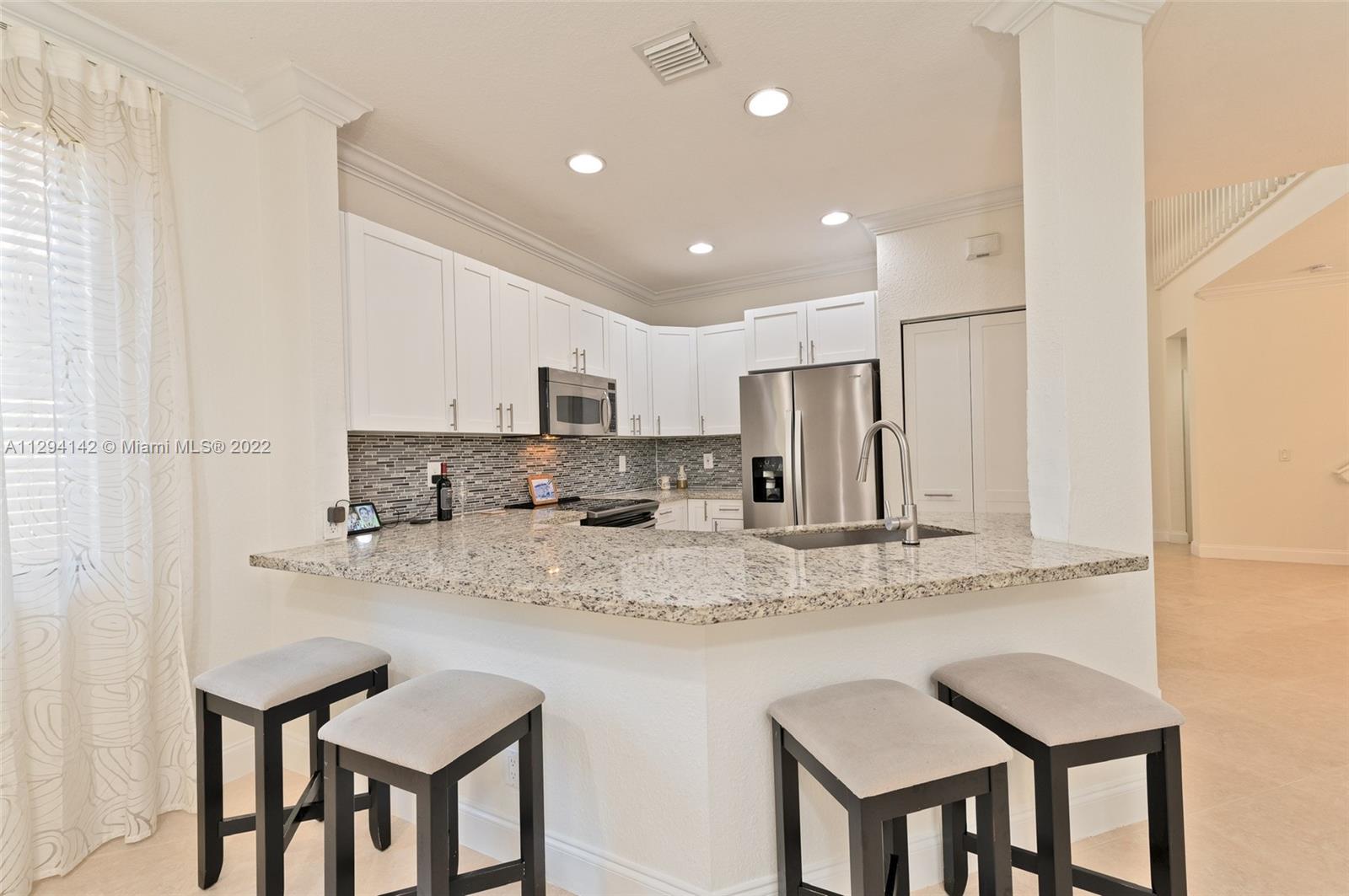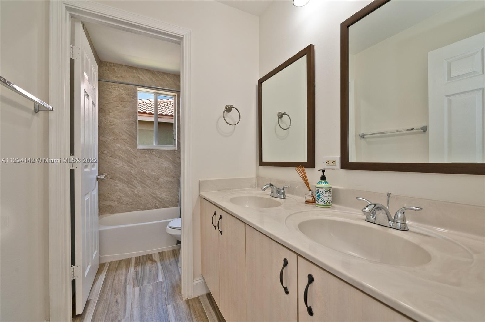 2 Story home in the heart of one of the most desired communities in Weston. Gated community with 24 hour security surveillance. Easy access to grocery stores, Restaurants, Coffee house,Banks, Parks and all of Weston's A-Rated Schools. Near I-75 and Interstate 595, Sawgrass Mall, Ft. Lauderdale Beach and airport. It has an open Floor-plan including 5 bedrooms, 2 of which are suites with walk in closets, and 3.5 baths. The kitchen is remodeled with stainless steel appliances and granite countertop. Its open concept is perfect for any family. The house has crown moldings and wood floors throughout the second floor. The bathrooms have been recently updated. New roof, New A/C. The windows have accordion hurricane shutters and 2 car garage. Backyard is a cozy covered patio for your enjoyment.