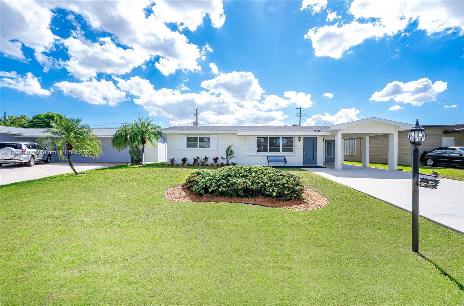 Beautiful home in Pembroke Pines that features a brand new roof (2021), a recently painted exterior, a large driveway with a carport that can easily fit five or more cars. Close to shopping areas (including Pembroke Mall), restaurants, Broward Community Colledge, North Perry Airport, and major highways. Bonus room can be converted into third bedroom. No H.O.A. Won't last!!!