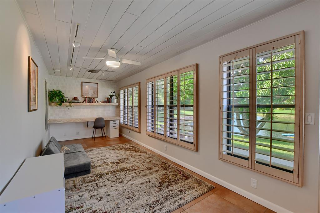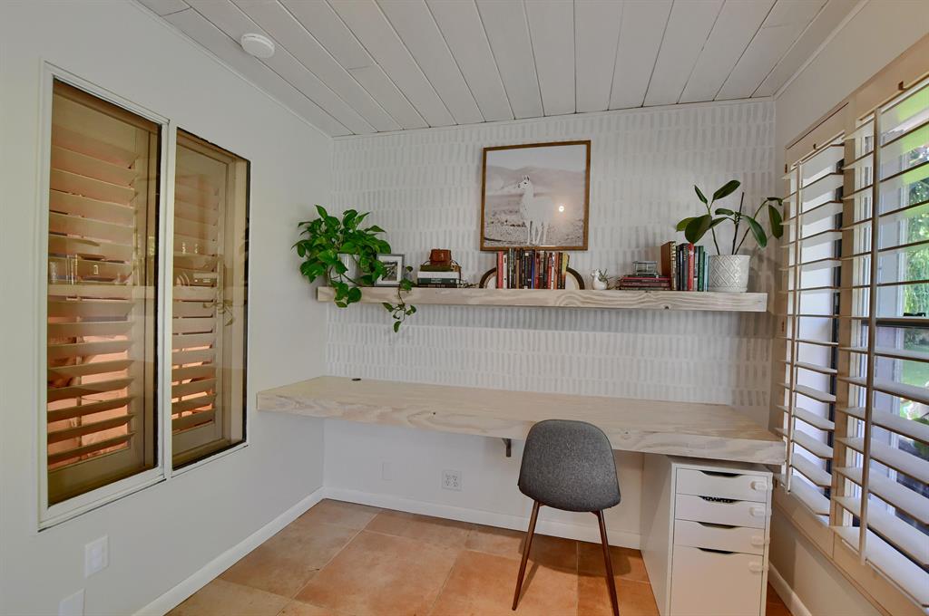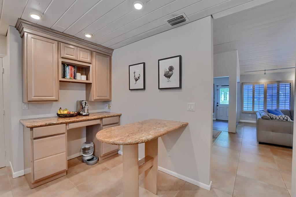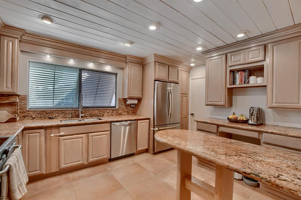 Beautiful upgrades in this meticulous lakefront home! The foyer welcomes you with built-in seating and opens to vaulted cedar ceilings and porcelain tiled floors throughout the living and dining areas. The chef's kitchen includes plenty of wood cabinets and a pantry with sliding shelves, a newer dishwasher, French door refrigerator and 5 burner stove with double oven and side cooking station. A breakfast bar and built-in desk complete the kitchen. Off the kitchen and leading to the garage is an indoor laundry room with cabinets for ample storage. Master bedroom with ensuite and walk-in closet with newer closet system installed. Split plan includes a second bedroom with built-in shelving and the third bedroom has mirrored sliding closet doors. SEE SUPPLEMENTAL REMARKS.