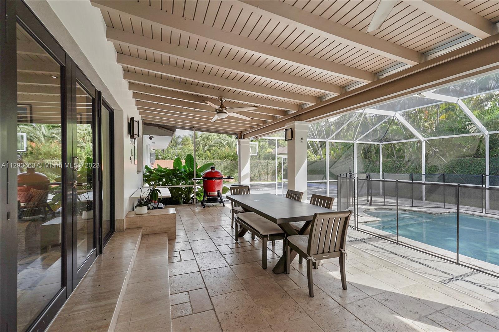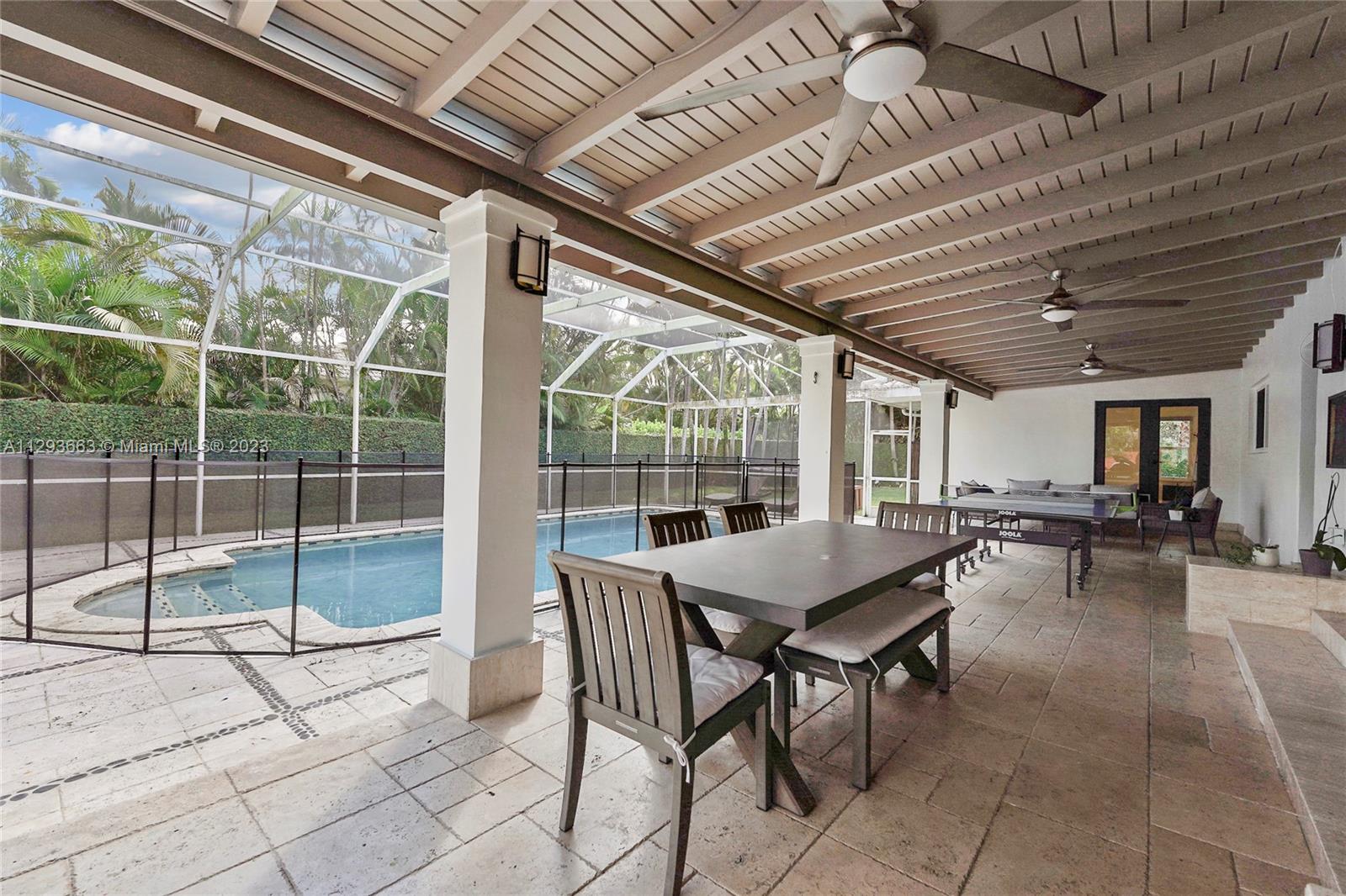 Beautifully remodeled house perfectly located in Pinecrest by the Sea, a coveted gated community close to Miami's best public and private schools. Convenient 2 car port – cochere protecting your cars from sun and rain. This impeccable 5/3 house has a very convenient floorplan consisting of 4 bedrooms in one side and 5th bedroom closer to living areas which has been converted to a perfect spacious home - office for two. Splendid closets. Spacious kitchen with gas stove and laundry room with a tub. Air-conditioned garage which can perfectly be used as a gym, art studio or as you might desire. Hurricane impact windows and doors. Inviting spacious roofed, sparkling pool and bonus basketball court. Easy to show**