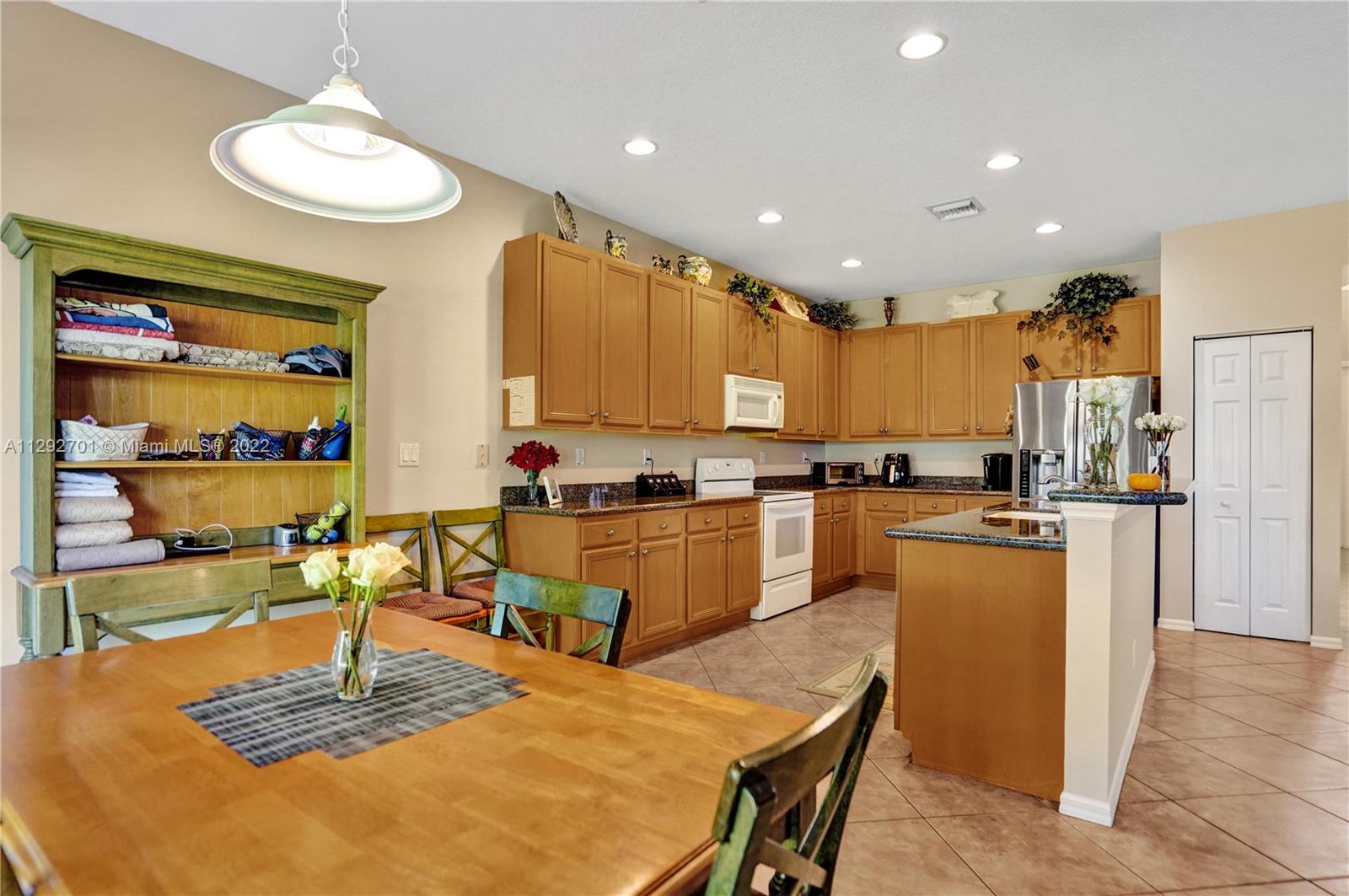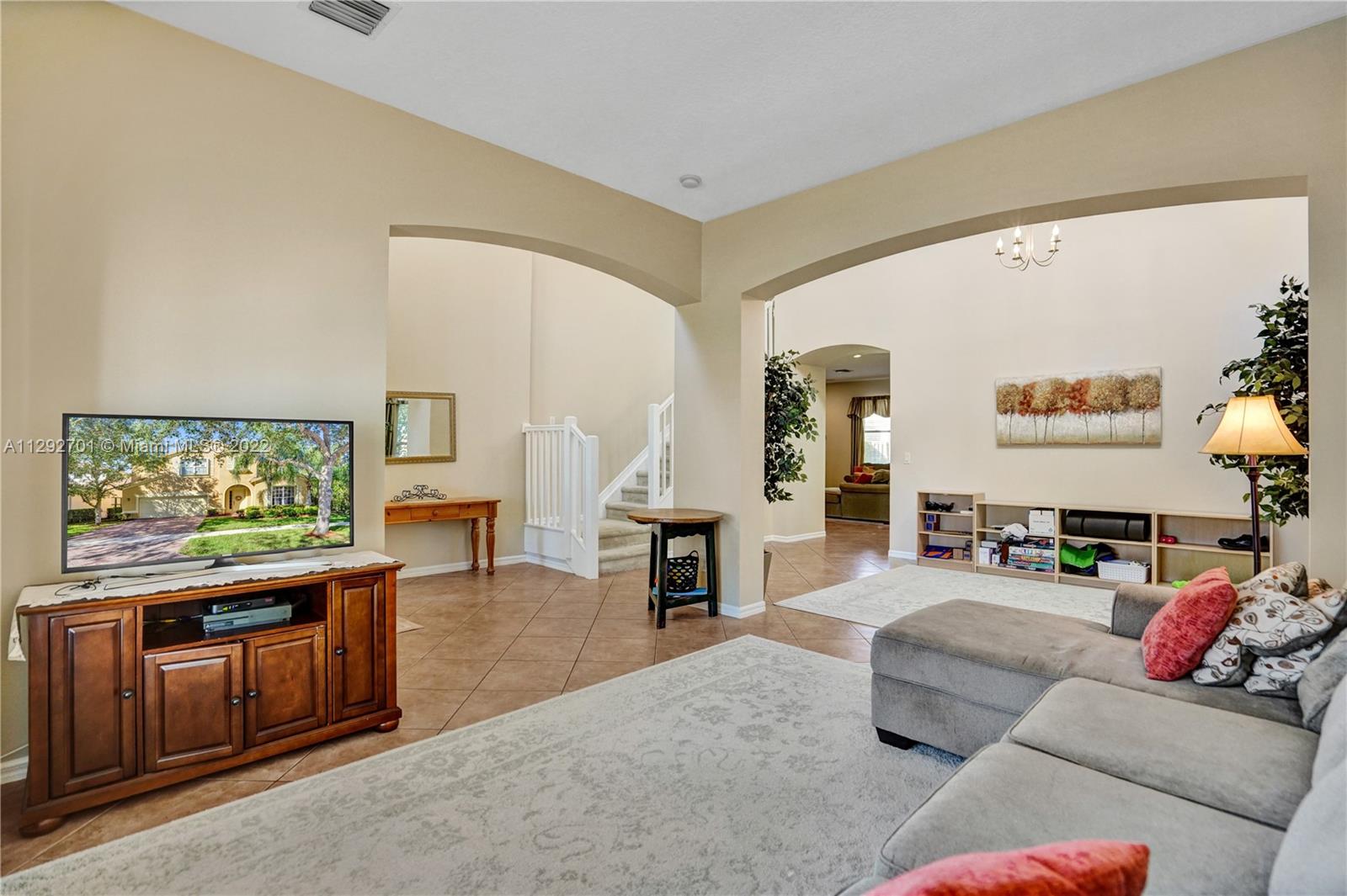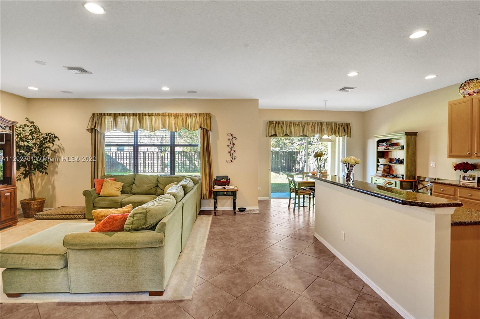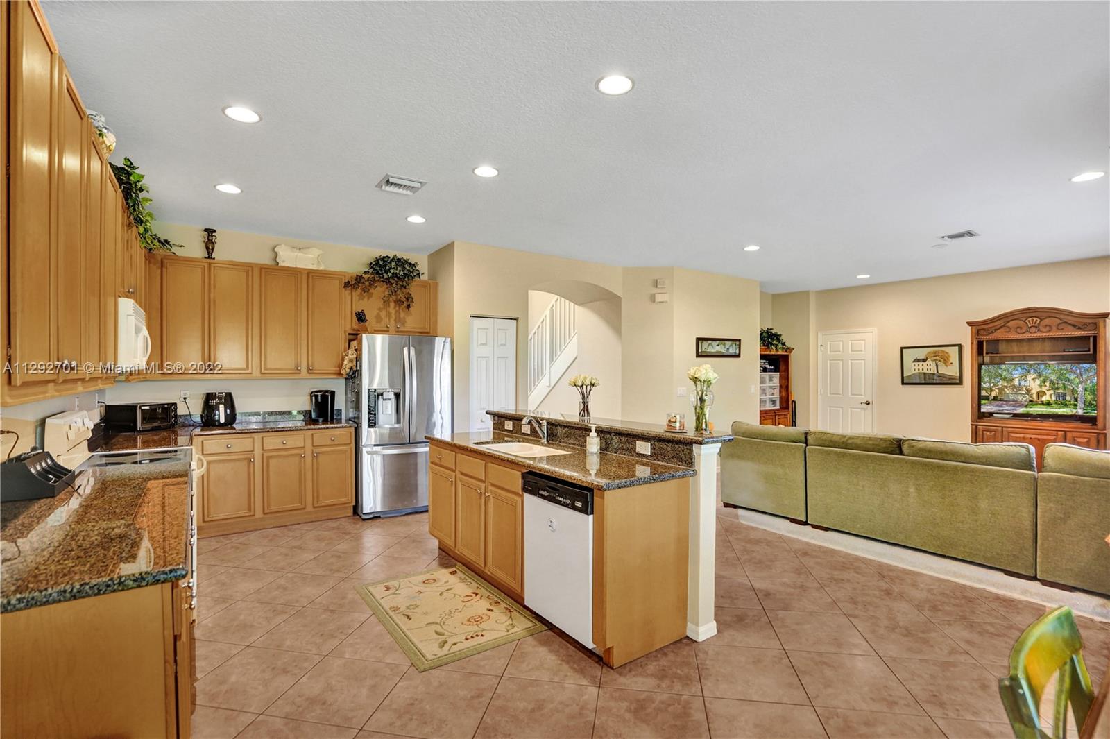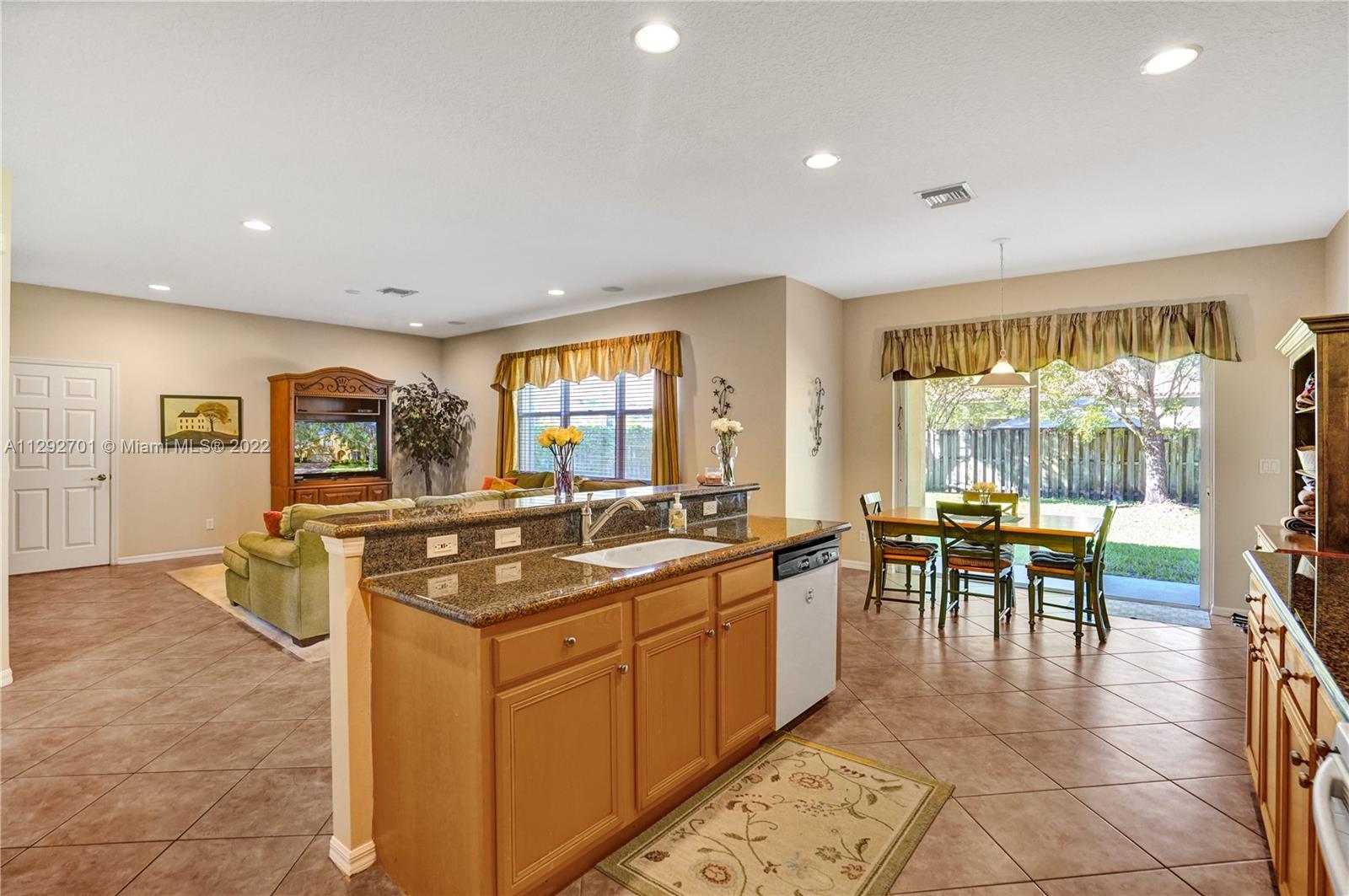 ISLES AT WESTON - Crystal (Model) 5 BR (4 Up. 1 Down). 4 BTH (Full). 3,115 SF (LA). High Ceilings provide Abundant Natural Light throughout Entry, Foyer, Living Room and Dining area. Floor Plan seamlessly transitions to Kitchen and Family Room. Kitchen has Wood Cabinets, Granite Countertops & Island. In-law / Guest BR with Full BTH completes downstairs. Upstairs has Expansive Main BR with 2 Walk-In-Closets. Upstairs includes 3 more BR (1 En Suite. 2 Share Bath) and separate Laundry Room. This house offers room for every purpose and additional separate storage room in garage. Backyard is oversized and completely fenced-in. Isles at Weston is a great community with A+ rated schools, and amenities: Clubhouse, Pool, Gym, Playground and Sport Courts. Cleveland Clinic is a short distance away.