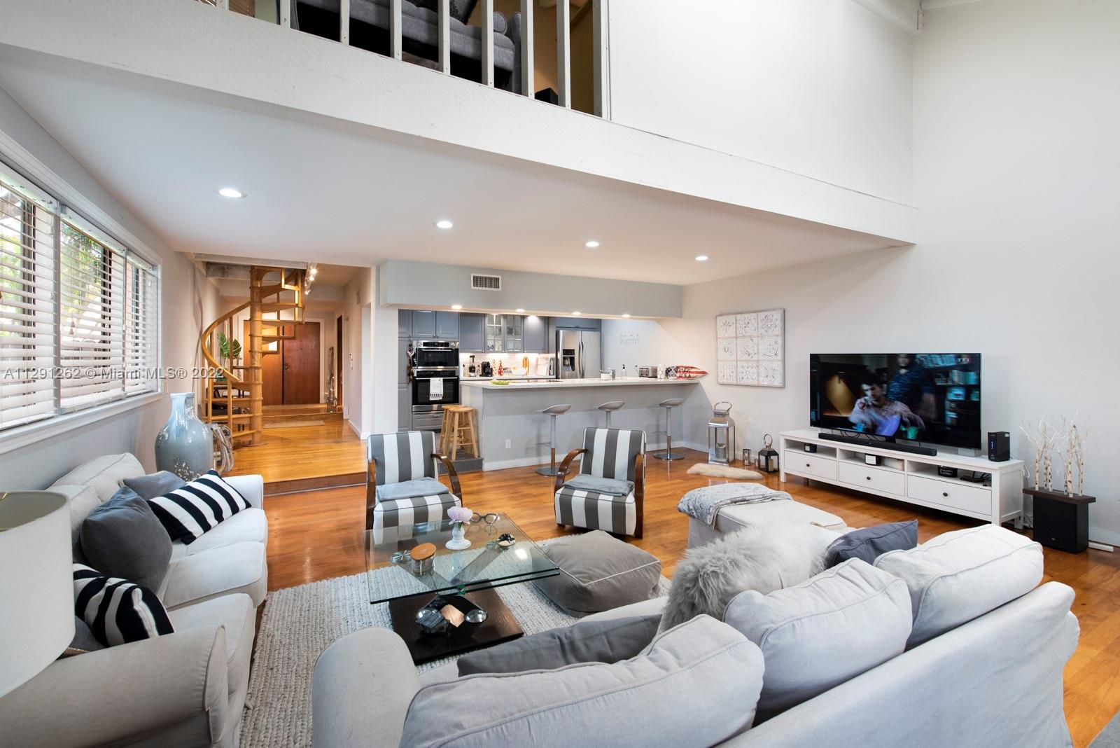 This one of a kind, corner, garden townhome, is like no other. Large outdoor spaces with Oak canopy and large park like setting. Indoors is infused with natural light, two story beamed ceilings and den office downstairs with 2 bedrooms upstairs. Kitchen and baths have been updated. Don't miss this opportunity. Seller currently has offer but actively showing for back up contract.