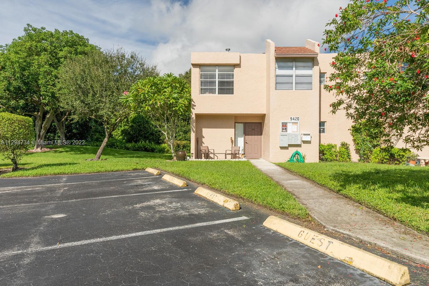 Fantastic opportunity to own in the highly desirable Live Oak community in Pine Island Ridge. Beautiful 3 bedroom, 2.5 bath corner townhouse with lush views from your living room and screened patios. Lots of natural light. Custom blinds, wood flooring first floor, brand new carpet on stairs and upstairs bedrooms. Laundry room w/new washer and dryer. Well maintained and nice layout makes the 1340 sq ft seem even larger. Walking distance to the Country Club and Golf course. Enjoy restaurants, pool, golf, tennis, bbq. HOA includes: membership to Pine Ridge Country Club, building exterior, roof repairs, cable tv, common area & water. Home can be rented right away. One assigned parking and plenty of guest parking. A+ schools. Family and kid-friendly. Pets allowed.