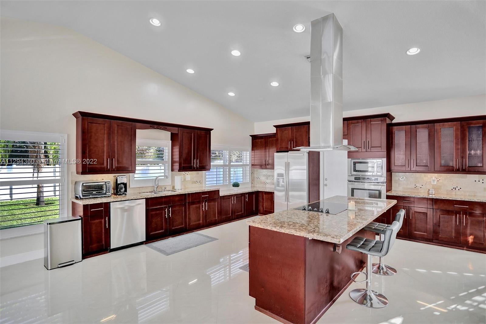 Enjoy Florida living at its best in the West Pembroke Pines gated community of Estancia. Desirable, Rarely available, 1-Story, 4/3 with a NEWER ROOF, AC and tankless water heaters. Open floor plan, vaulted high ceilings, beautiful Primary en-suite. The updated kitchen is the heart of the home with new appliances, modern cabinetry and countertops, custom designed and ideal for entertaining. Large corner lot with plenty of room for a pool, fenced in yard, covered patio area, accordion shutters, 2 car garage with custom storage cabinets and circular driveway. Award winning City of Pembroke Pines is home to top schools, safe city ranking and many parks, shopping centers and casual dining all within walking distance. Easy access to I-75, SR 27 and centrally located between MIA and FLL airports.