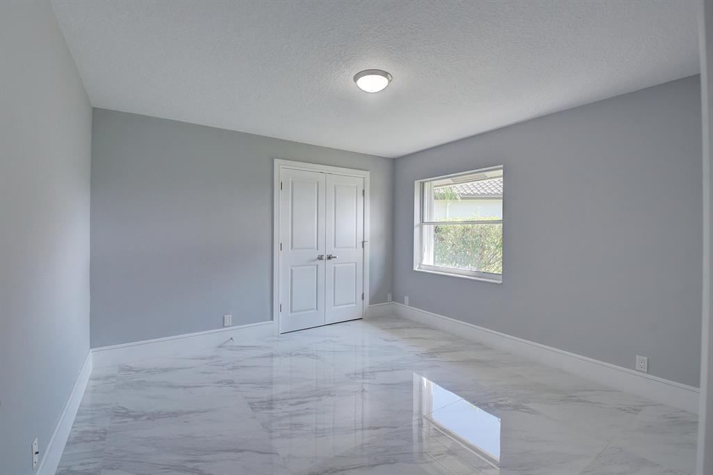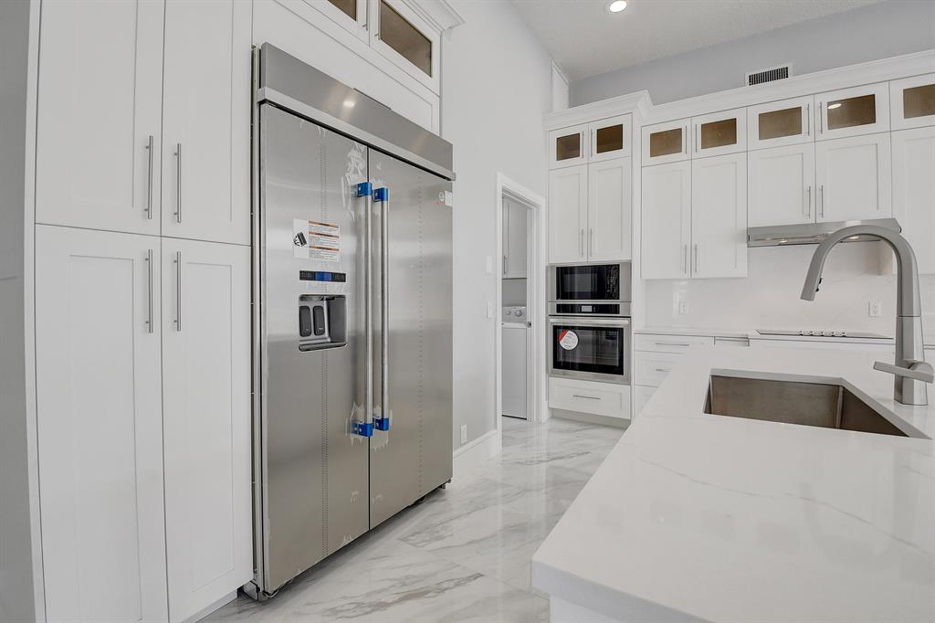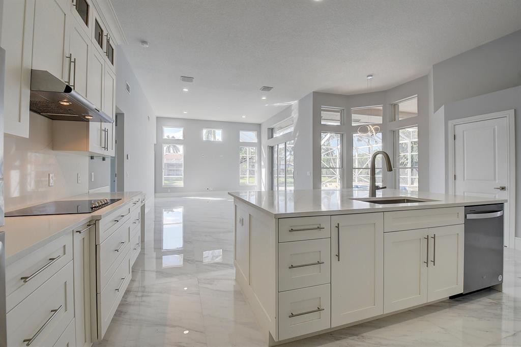Why wait to build....Welcome to this totally renovated home in Boca Isles South. This amazing Grand Cayman model with 4 bedrooms and 3 full baths is spectacular and is located on a cul-de-sac lot. Every detail is exquisite. Amazing custom double entry doors. Porcelain tile throughout the entire house. New 2022 roof, freshly painted interior and exterior, fabulous bathrooms, formal living, and dining rooms. Custom designed kitchen featuring an oversized island which seats 6 very comfortably and additional seating in the breakfast area. The kitchen has Quartz countertops, white shaker cabinets which are all soft closing, top of the line stainless steel appliances and 2 built in pantries. Perfect for entertaining as you overlook the family room. The primary suite with beautiful pool and lake
