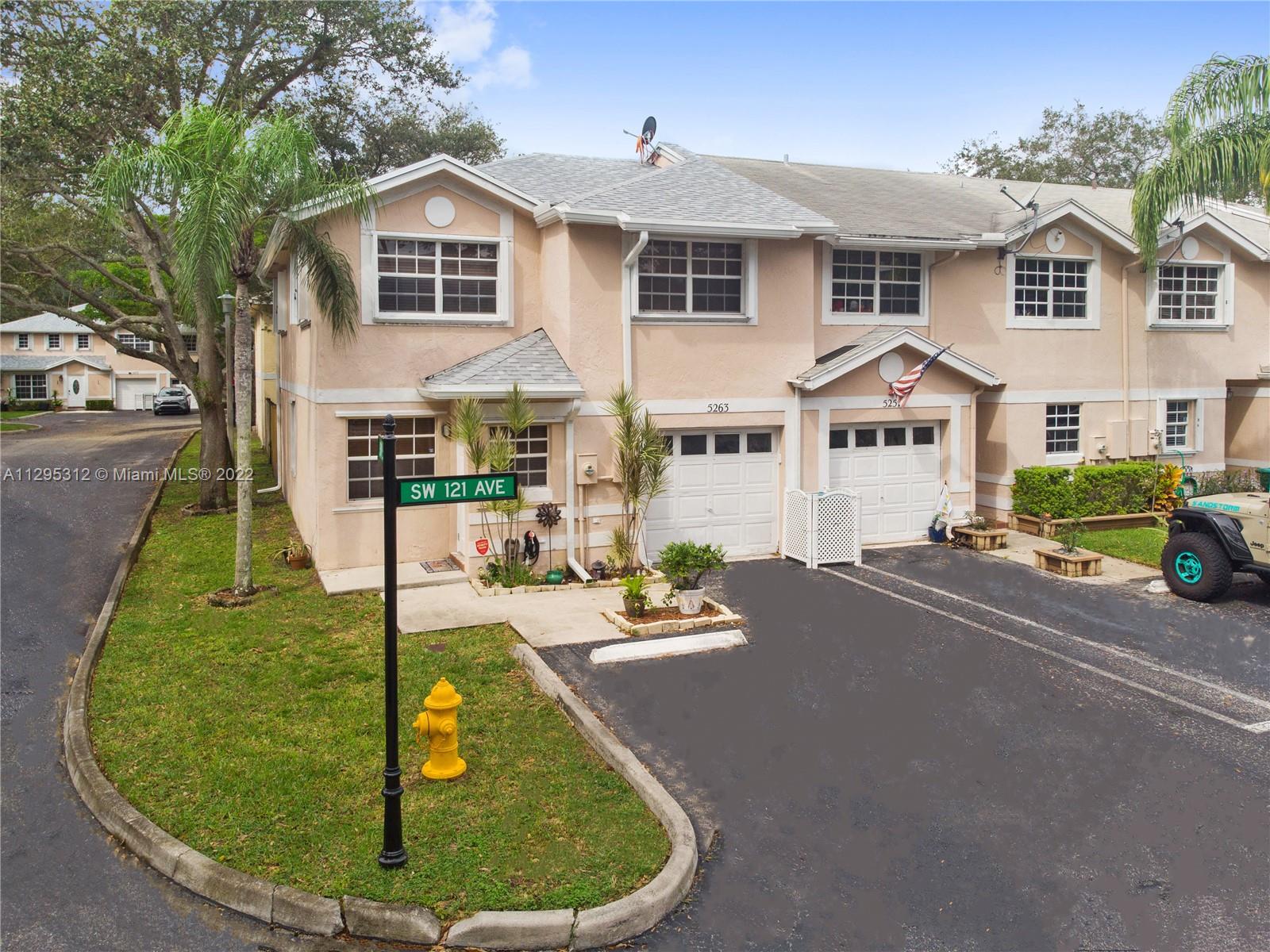 **AMAZING CORNER UNIT, TWO-STORY TOWNHOUSE FEATURING 3 BEDROOMS, 2 1/2 BATHROOMS AND 1-CAR GARAGE ** BRAND NEW ROOF INSTALLED EARLIER THIS YEAR ** RENOVATED KITCHEN WITH NEW REFRIGERATOR** ONE CAR GARAGE WITH LARGE DRIVEWAY TO ACCOMMODATES 2 + MORE GUEST PARKING IN FRONT ** WOODEN LAMINATE FLOORING THROUGHOUT SECOND FLOOR ** NEW GUTTERS INSTALLED WITH LEAF GUARDS ** NEWER WASHER AND DRYER INSTALLED TWO YEARS AGO ** NEW HURRICANE PANEL SHUTTERS ** LOCATED IN ONE OF THE BEST SCHOOL ZONES IN BROWARD COUNTY **EASY REACH OF SHOPPING, DINING & MANY OTHER SERVICES & LESS THAN 10 MINUTES FROM THE I75. **