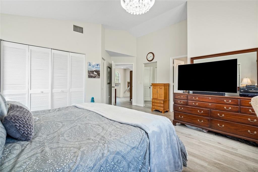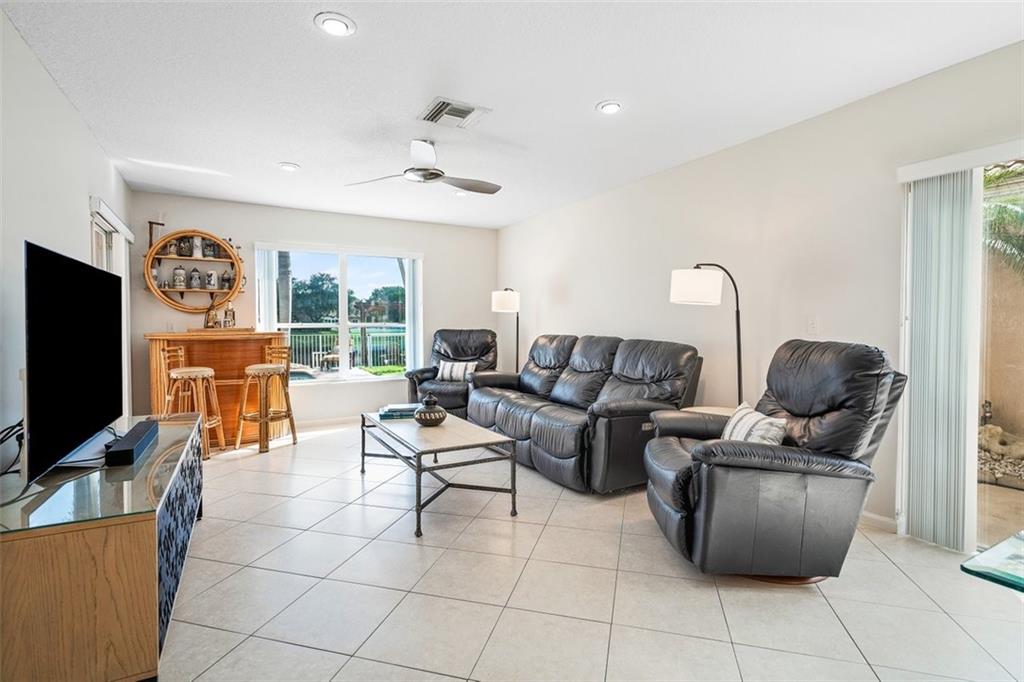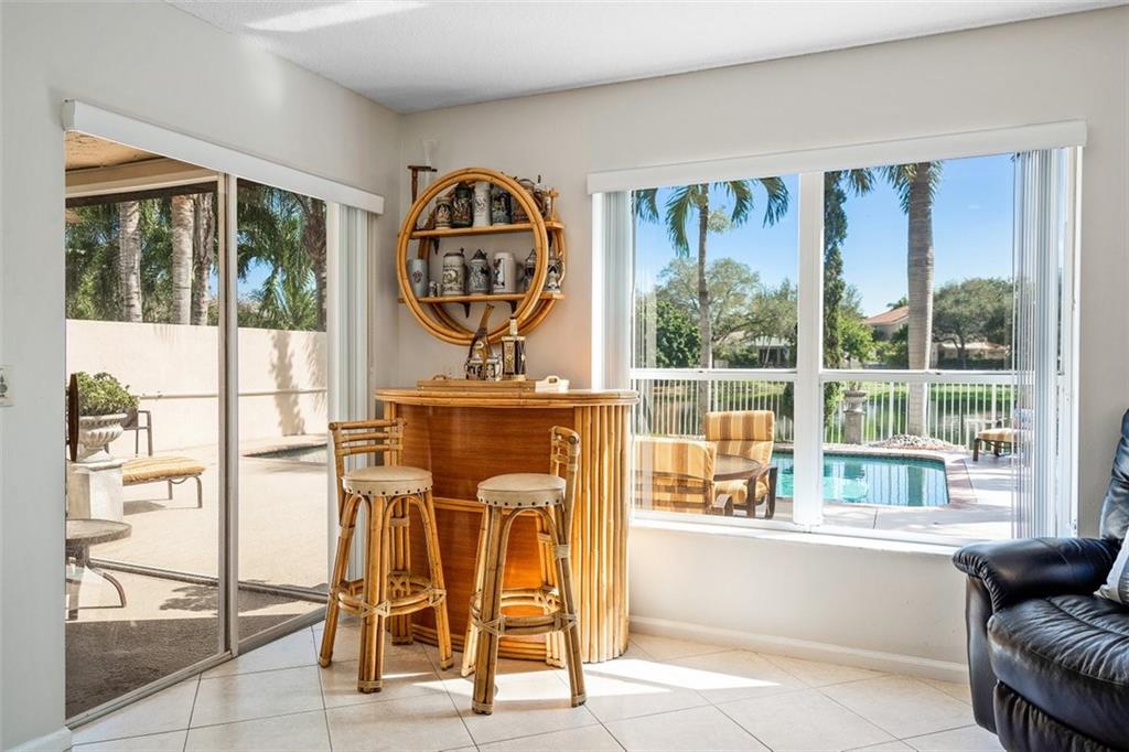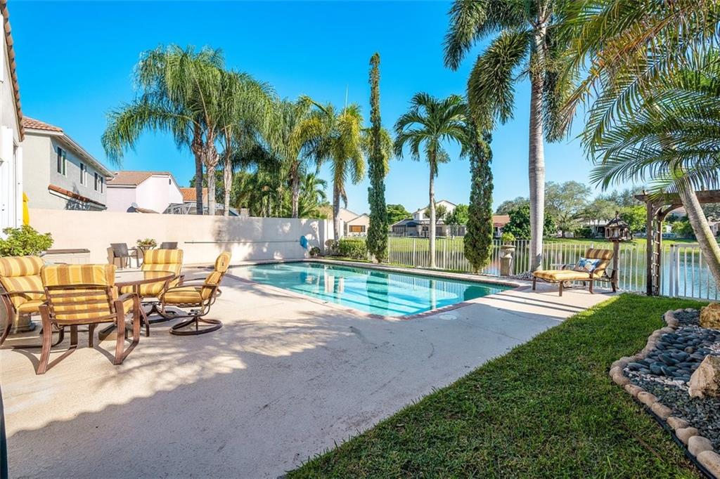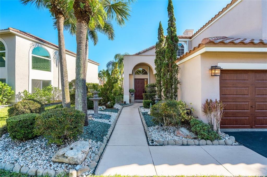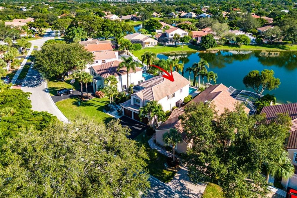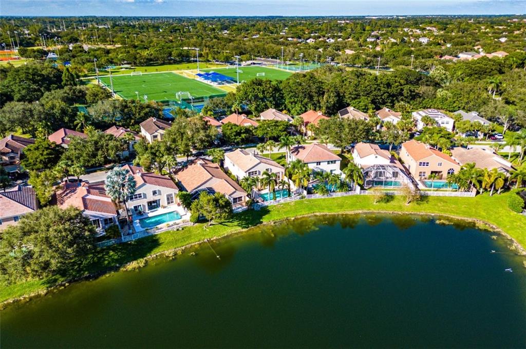 Beautiful lakefront home sited in a wonderful guard-gated community. Impressive curb appeal with manicured landscape & 3 car garage. Stunning panoramic views of the lake & pool area take centerstage throughout. Soaring ceilings, sun-drenched living areas & fabulous light fixtures results in a light & airy home. The spacious & open family room/kitchen area features a kitchen with fine wood cabinetry, SS appliances, granite, a pantry & glass doors leading to glorious outdoor living areas. Perfect for indoor/outdoor living & entertaining. Large primary suite offers a spa-like bathroom, several closets some with cabinetry & serene views of the water. Offerings: Loft/Insulated Hurricane W8 Rated Garage Doors/Accordion Hurricane Shutters for the entire house/Porch has a retractable screen.