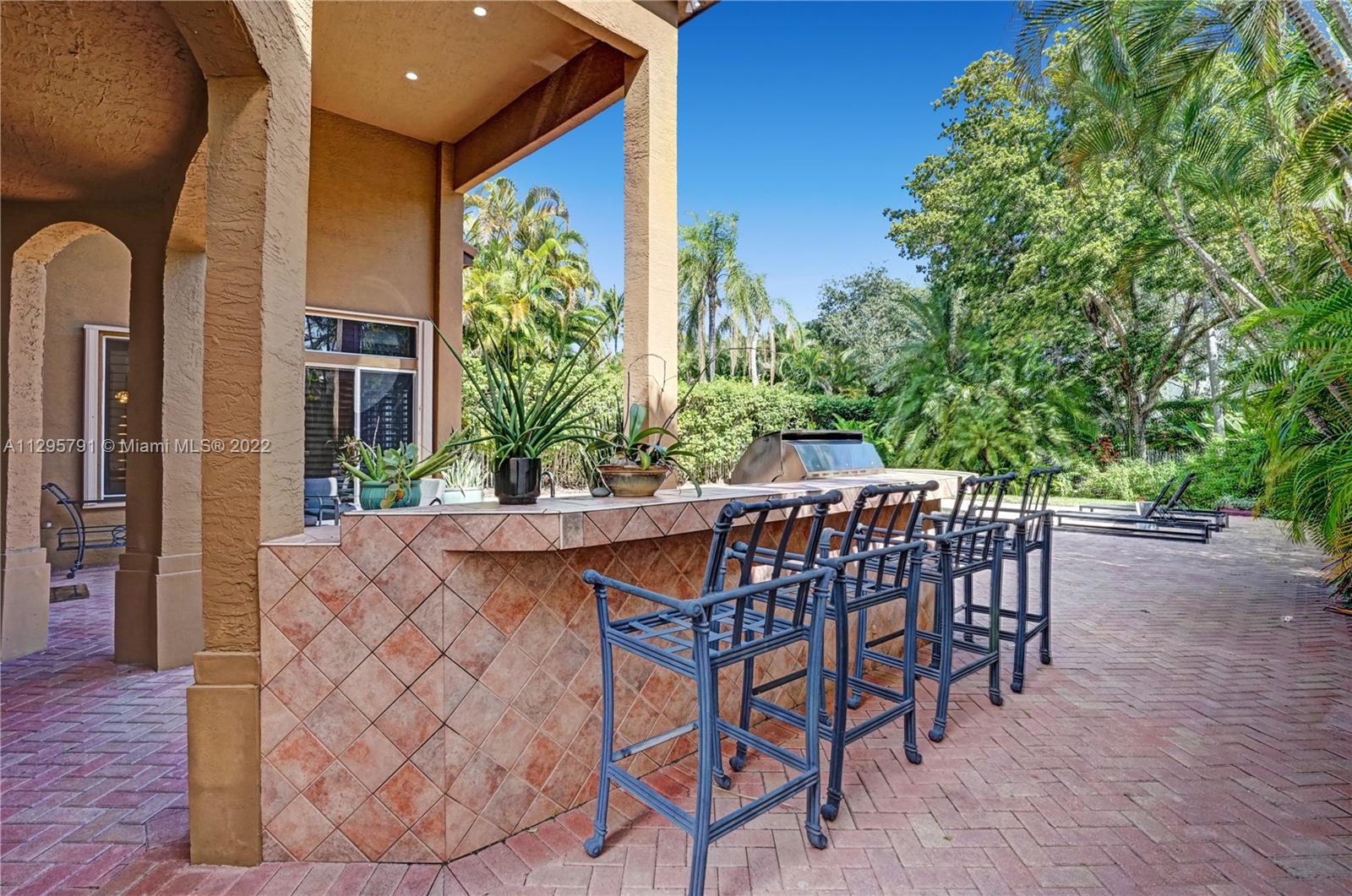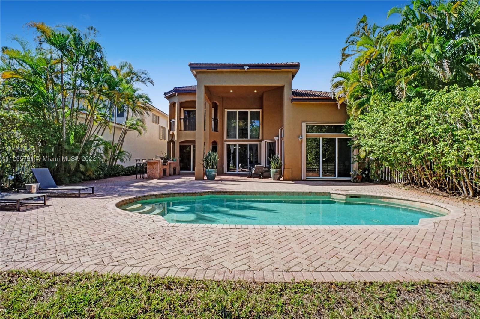 Presidential Estates, highly desirable Garland model located on a large 10,521sqft lot with beautiful garden views. This select lot allows for extra privacy and safety so children can directly access the park's interior path from the backyard. The home offers 6 beds 4.5 baths with many upgrades including marble and wood floors, updated baths, chef's kitchen w/gas cooking, volume ceilings, two walk-in primary closets, 2 car garage, large backyard patio with pool, a summer kitchen & plenty of room for backyard entertaining. This exclusive guard gated community is ideally located near restaurants, shops, schools, houses of worship and is close to beaches, international airports, and major highways. Call today for a private or virtual showing.