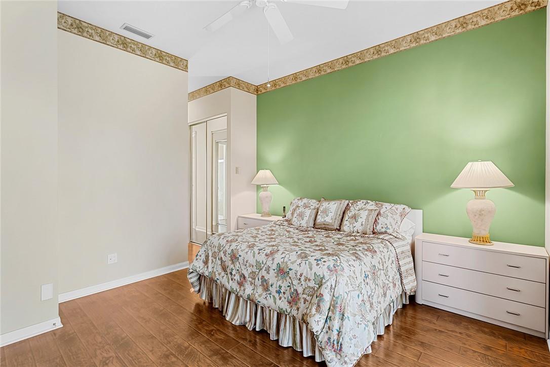 Desirable Oakmont model with vaulted ceilings for that airy spacious feel. Only one very meticulous owner who took care of his house. Osmosis water filter, reinforced garage door and surge protector on home. Larger model home with adaptable floor plan and eastern exposure. Newer water heater and 2010 TRANE a/c with UV sterilization. Situated on one of the most desirable streets in Riverwalk! This charming lakefront residence is on a wider part of the lake for extra privacy & gorgeous views! Side entry 2 car garage, lush landscaping & walkway provides excellent curb appeal. Incredible Community of Riverwalk features an updated fitness center, 3 swimming pools, pickleball, bowling club, hair salon, bocce ball, walking clubs, paint classes, Italian marketplace & restaurant and MORE!