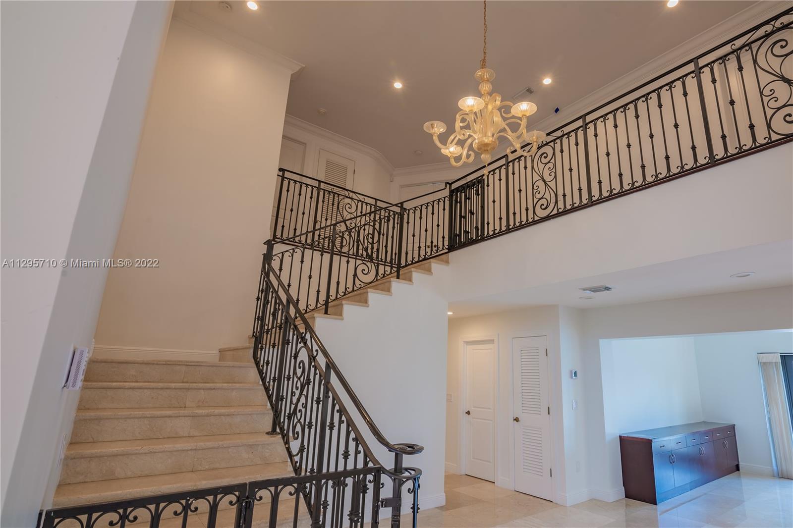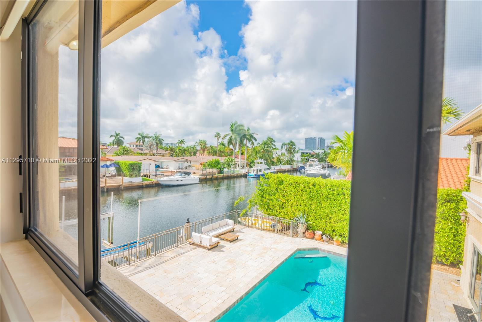 Beautiful updated waterfront home w/ 19FT high ceilings located in 24/7guard gated community of Eastern Shores. Upstairs has beautiful wood floors. Huge master suite overlooking pool & waterway, plus 3 spacious bedrooms, home theater, office/playroom & storage room. Downstairs has marble floors throughout, including 3 bedrooms. Many upgrades - Impact windows & doors, generator, top of the line Gourmet Kitchen, including gas-wolf stove oven. Sub-Zero refrigerator freezer, Built-In Miele Nespresso coffee maker & wine cooler. Beautiful Pool Patio area has gazebo/grass area. 80 ft on the water with 21,000 lb. boat lift in place. Direct ocean access with no fixed bridges to Haulover Inlet. 2 Car garage, Oversized circular driveway. Walk to shopping, restaurants, iPic theater parks & the beach.