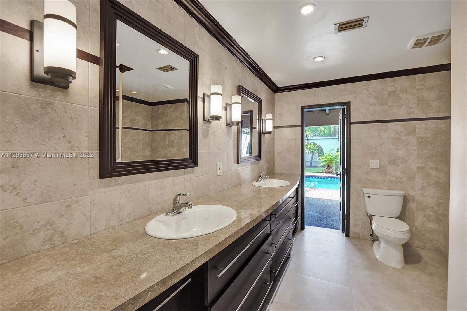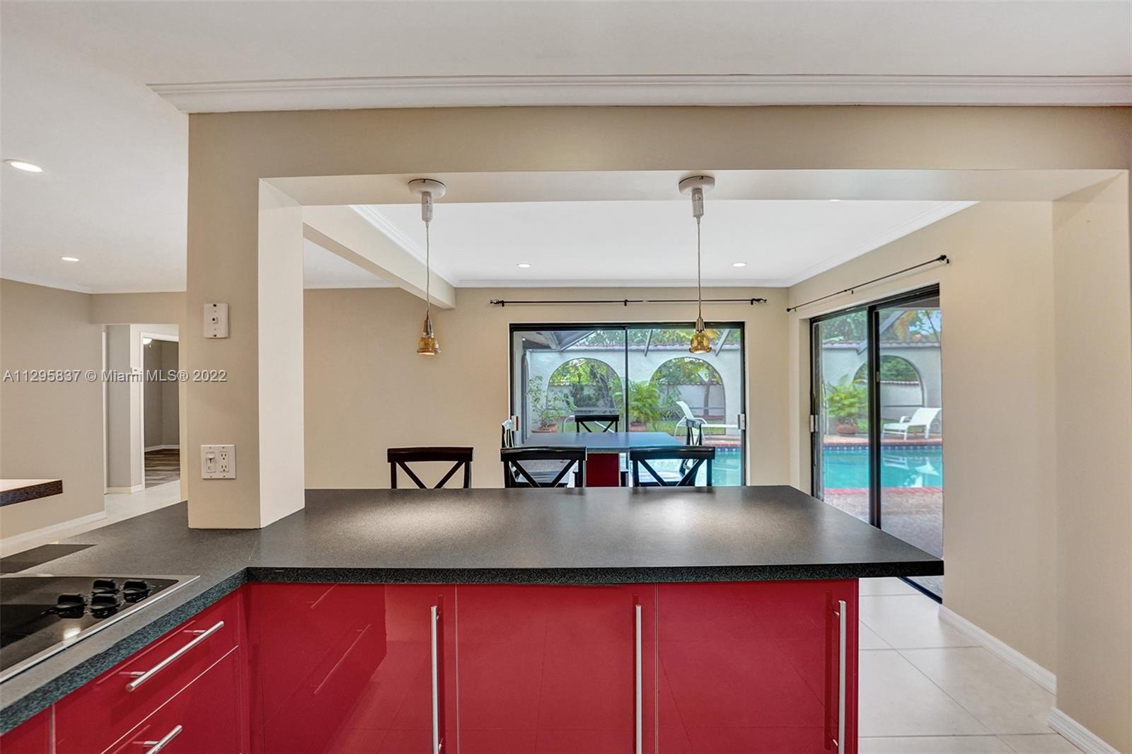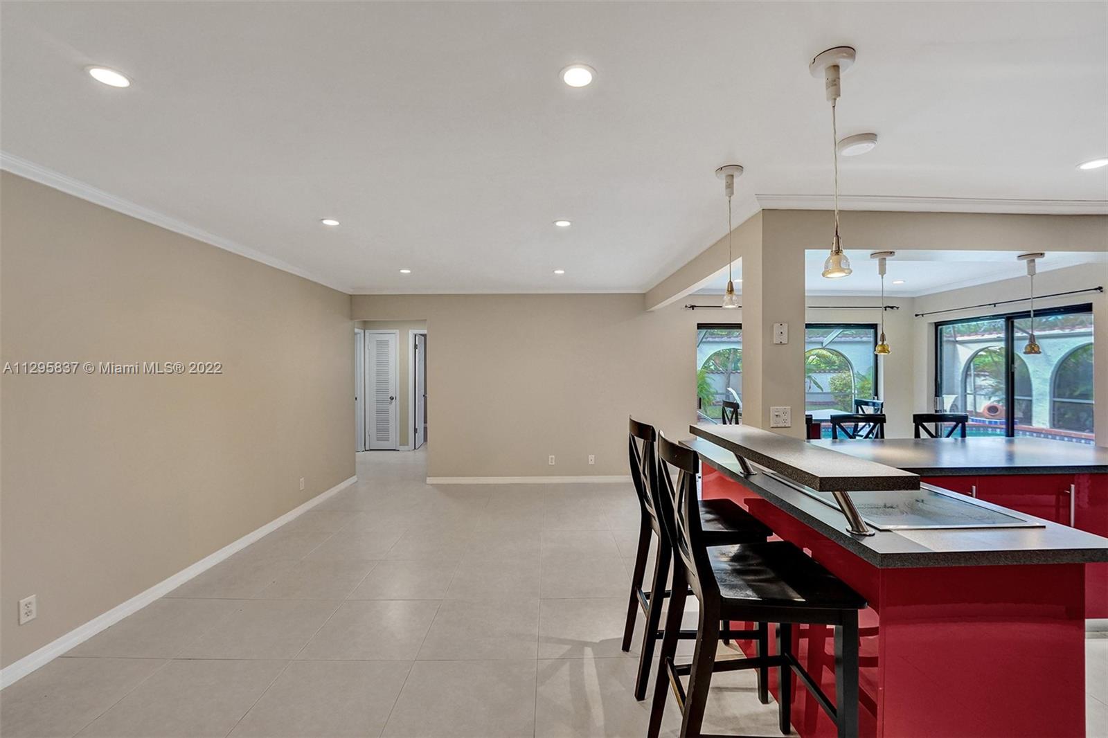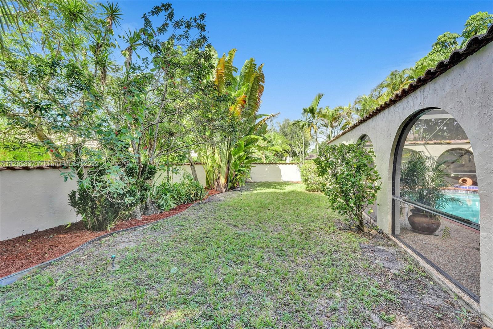 This spacious 4/2 with 2 car garage is located on a LARGE CORNER LOT & features a PEACEFUL SCREENED POOL area with ARCHED CONCRETE WALLS and a CONCRETE PRIVACY FENCE. Beautiful MODERN STYLE KITCHEN with COOKING ISLAND and STAINLESS STEEL APPLIANCES. SPLIT FLOOR PLAN with two living areas with SEPARATE SPACE FOR DINING OR OFFICE. SPACIOUS MASTER BEDROOM with walk-in closet. Master cabana bath has DUAL SINKS and a LARGE TUB/SHOWER. Guest bedrooms share a BIG CABANA BATHROOM. Kitchen and baths have RECESSED LIGHTING. FRESHLY PAINTED inside. TILE AND NEW WOOD LAMINATE FLOORS THROUGHOUT. INDOOR UTILITY/LAUNDRY ROOM WITH SINK and plenty of storage.