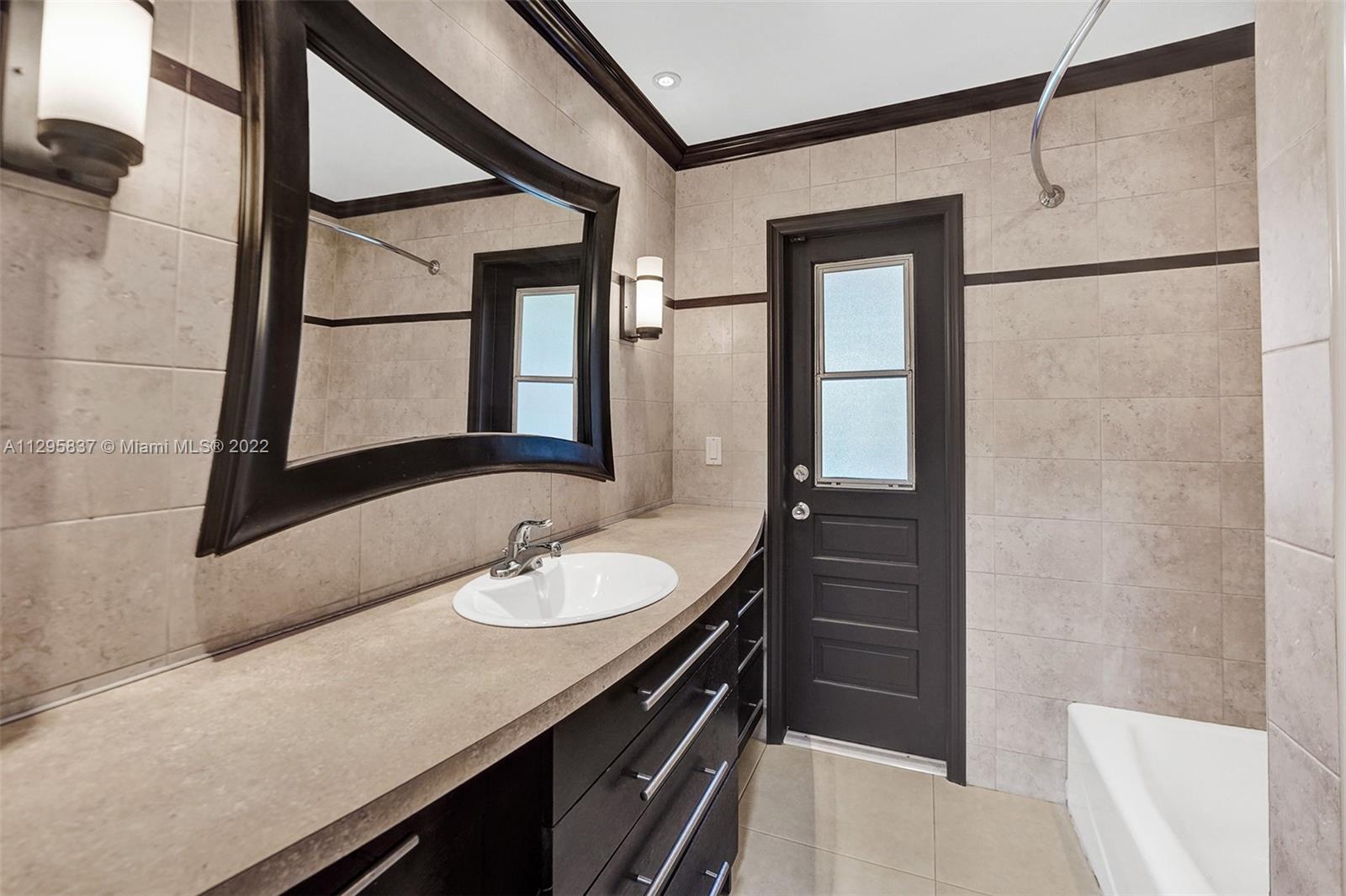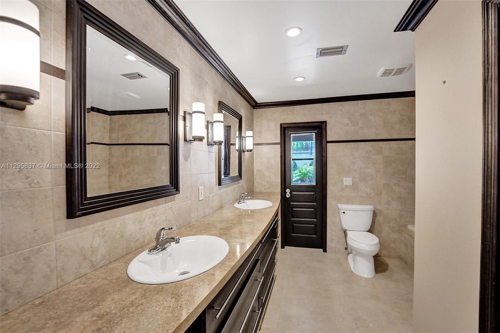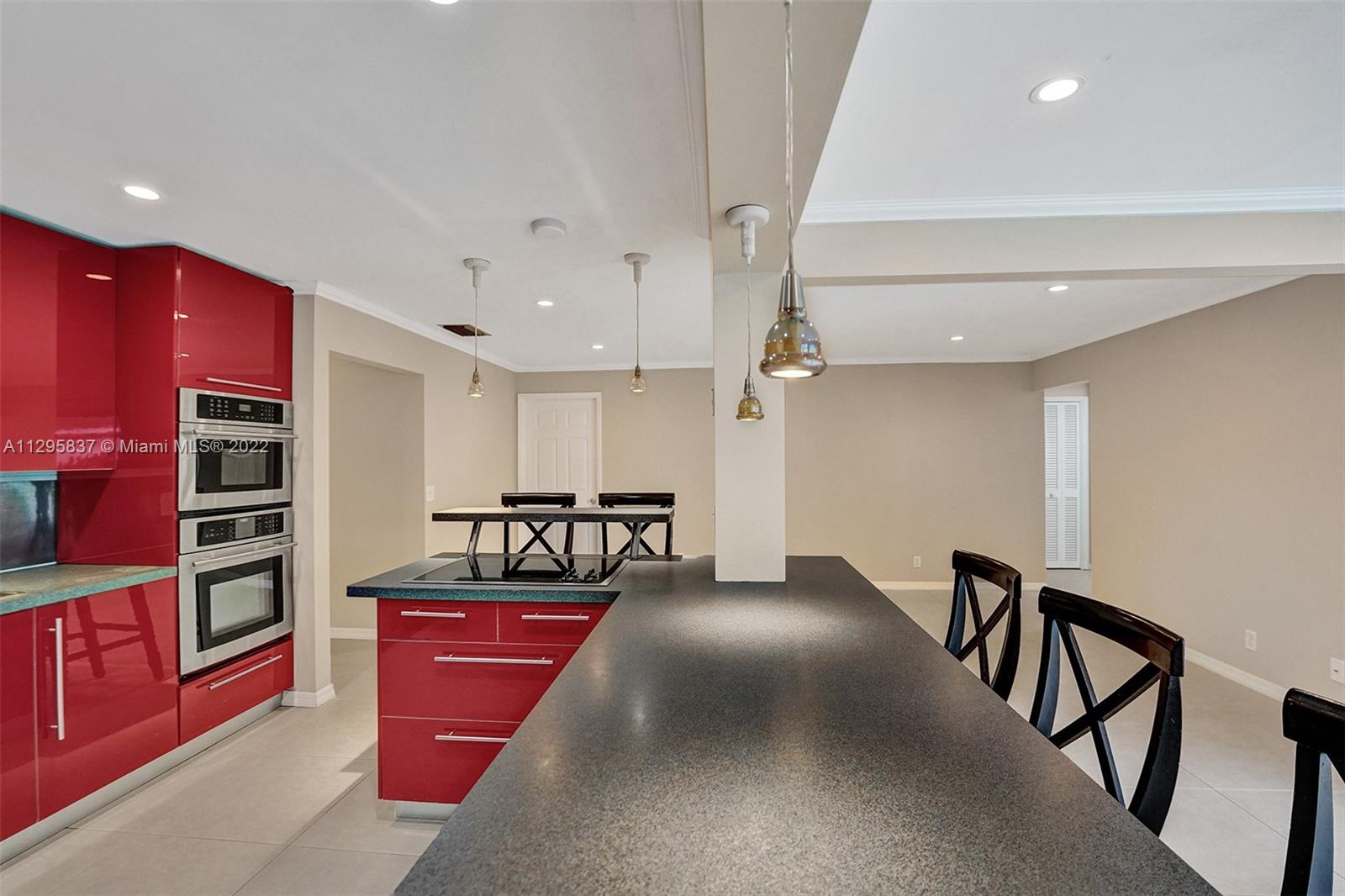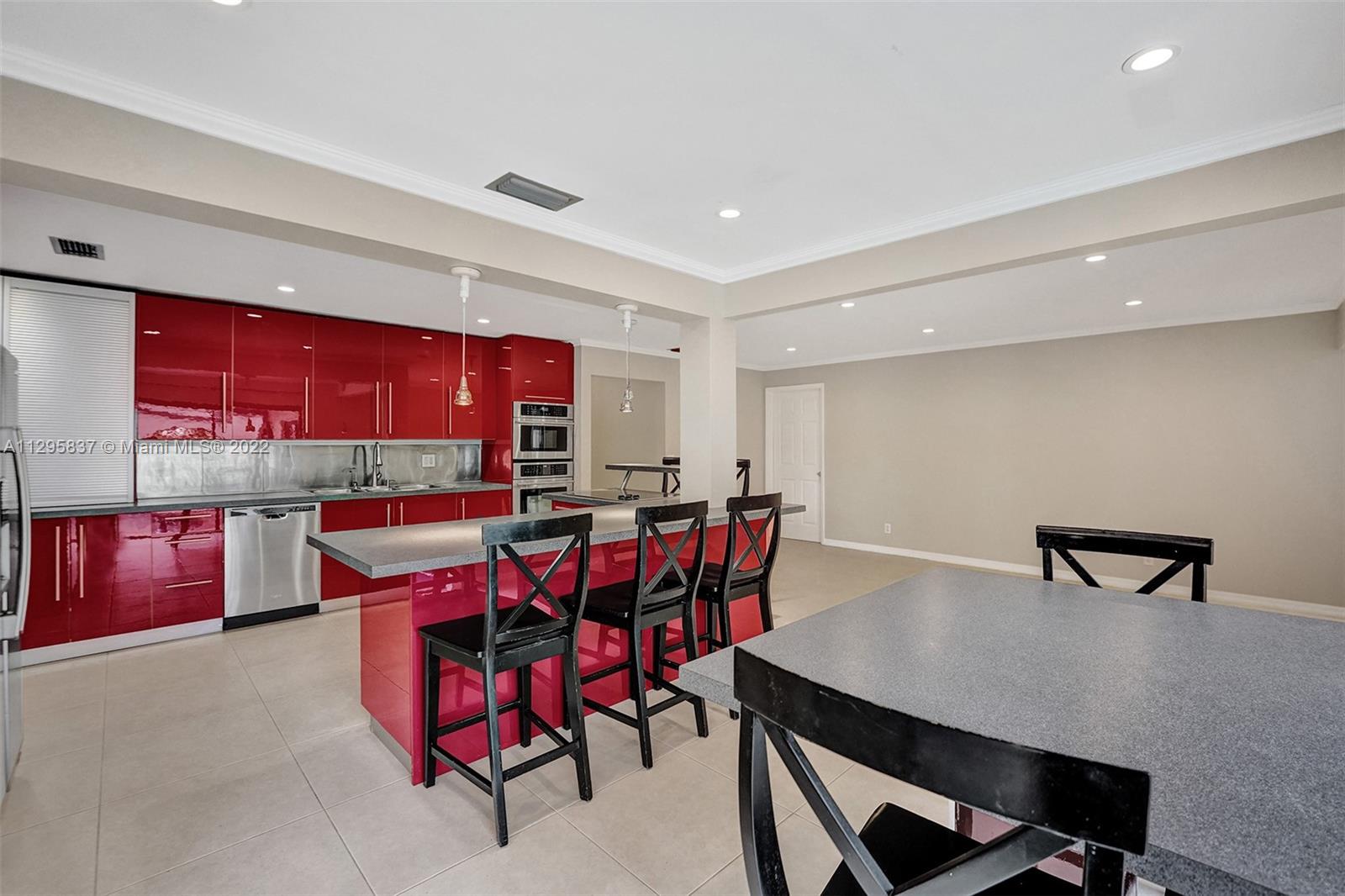This spacious 4/2 with 2 car garage is located on a LARGE CORNER LOT & features a PEACEFUL SCREENED POOL area with ARCHED CONCRETE WALLS and a CONCRETE PRIVACY FENCE. Beautiful MODERN STYLE KITCHEN with COOKING ISLAND and STAINLESS STEEL APPLIANCES. SPLIT FLOOR PLAN with two living areas with SEPARATE SPACE FOR DINING OR OFFICE. SPACIOUS MASTER BEDROOM with walk-in closet. Master cabana bath has DUAL SINKS and a LARGE TUB/SHOWER. Guest bedrooms share a BIG CABANA BATHROOM. Kitchen and baths have RECESSED LIGHTING. FRESHLY PAINTED inside. TILE AND NEW WOOD LAMINATE FLOORS THROUGHOUT. INDOOR UTILITY/LAUNDRY ROOM WITH SINK and plenty of storage.