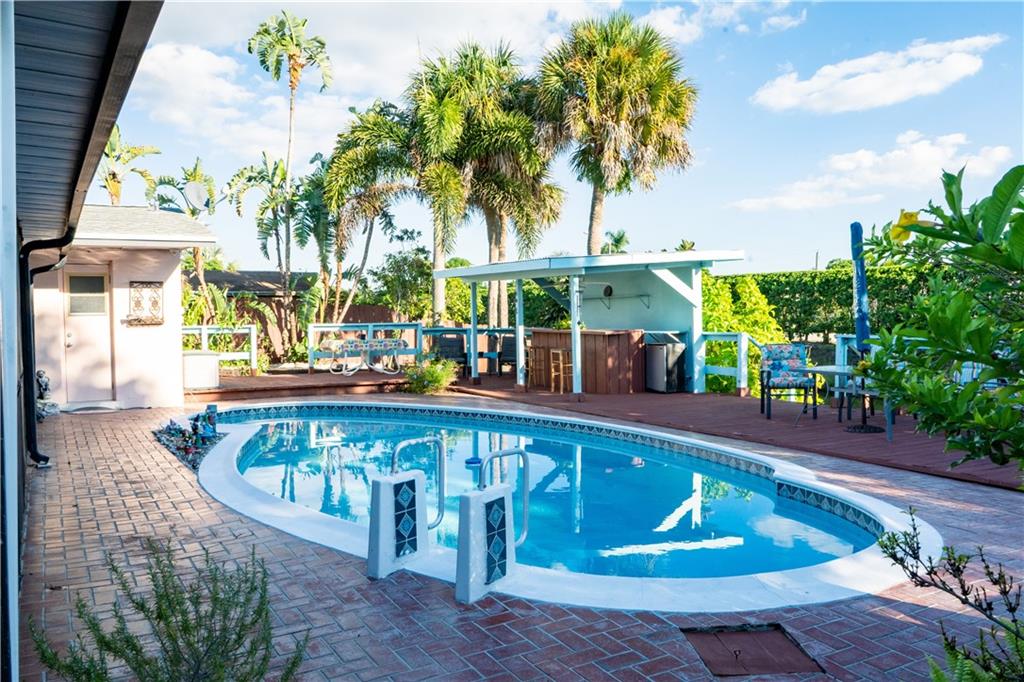 This house is a very well maintained gem in Pasadena Lakes. It has lush landscaping, a huge entertainment/pool area with cabana/bar with water view. Newly resurfaced pool. Laundry room with tub sink, large screened in patio with sliding door access from the master bedroom. Large screened in patio has custom painted murals and a bar with direct kitchen access through the serving window. Direct bathroom access from the pool/entertainment area, so guests do not have to walk thru your house. This home has plenty of parking/circular drive for convenient access on both sides. 4th bdrm is currently a music studio with private entry. It can be used for a mother in law quarters or rent for extra income, etc. Easy to show. Buyer incentives. Please ask realtor. Pre-approval not required to view