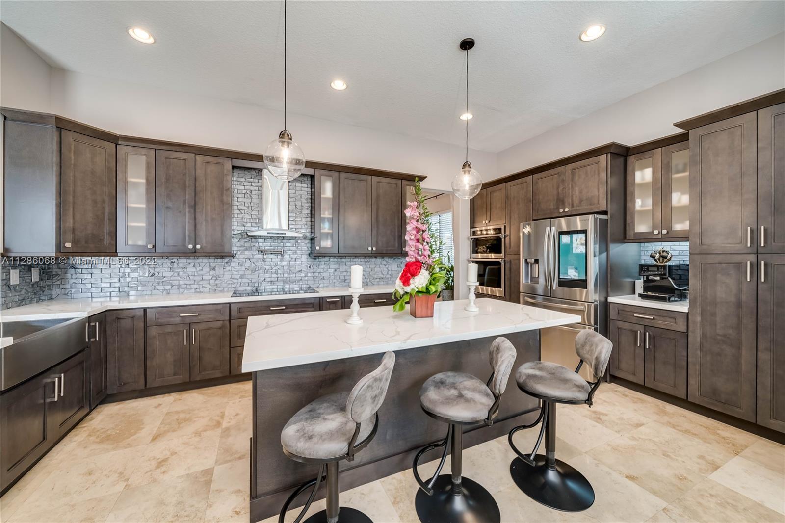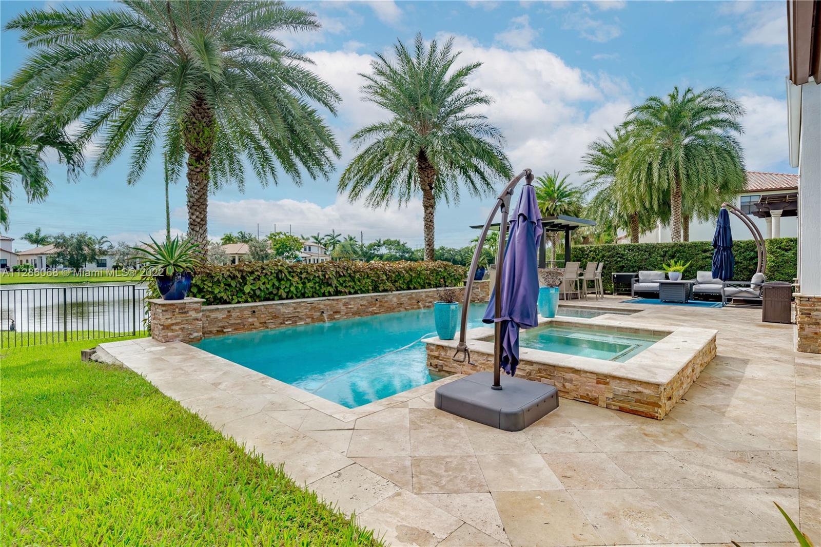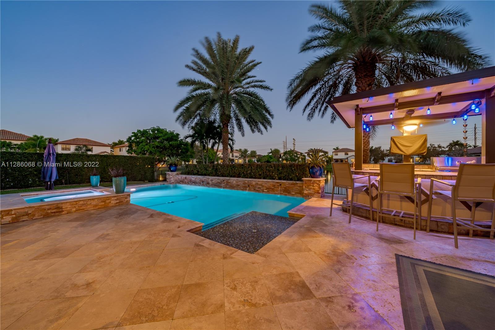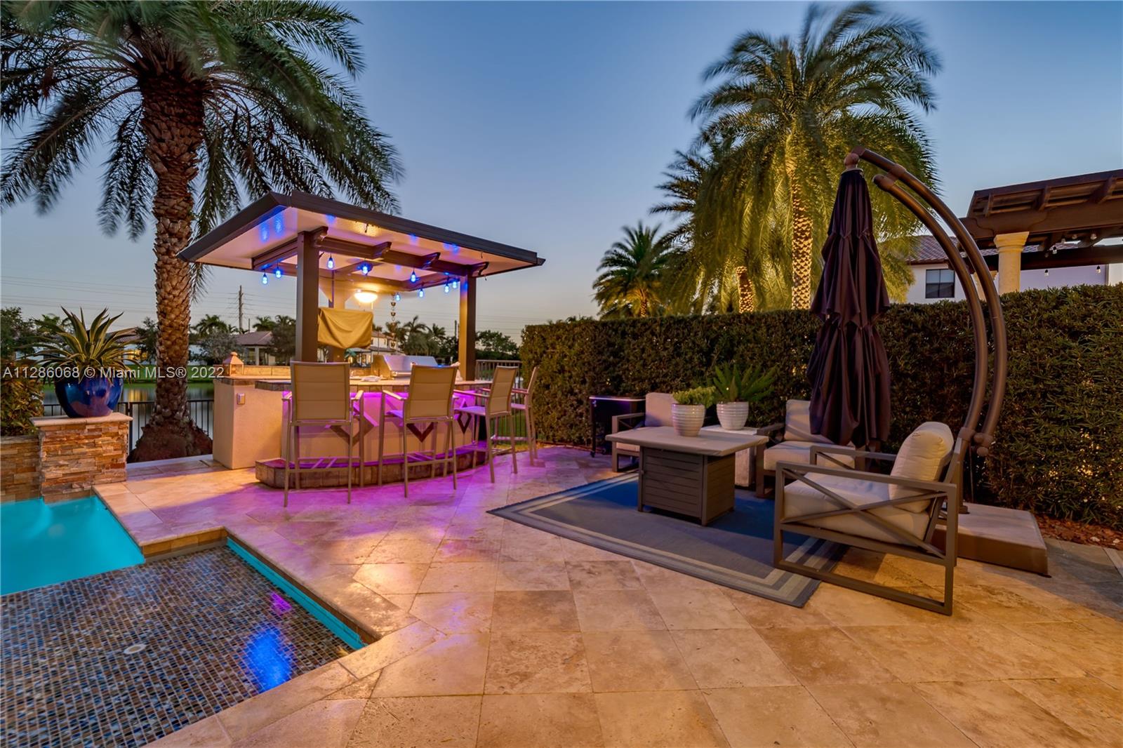 Gorgeous Lakefront home at Monterra, Cooper City’s most Luxurious Gated Community. The Tortuga Model boasts of vaulted ceilings, marble & wood floors, En-Suite downstairs & Spacious loft. Upgrades: Impact Windows/ Doors, Motorized Screen Patio, New Pool Pump with WIFI Panel, two 6 Ton AC Units, AC 3 Car Garage, Outdoor Kitchen & Bar & Remodeled Kitchen and Owner Suite Bathroom. Additional features: wired surround sound indoor/outdoor, wine fridge, plantation shutter & SWAT Mosquito Systems at rear yard perimeter with warranty. Your Oasis features a Custom Pool / Spa with a Waterfall, Outdoor Kitchen & Screened-in Patio. Community amenities: Guard Gate, Gym, Pool, Clubhouse, Tennis & Basketball Courts, Playground, Dog Park and more. A-rated schools, shopping & restaurants are nearby.