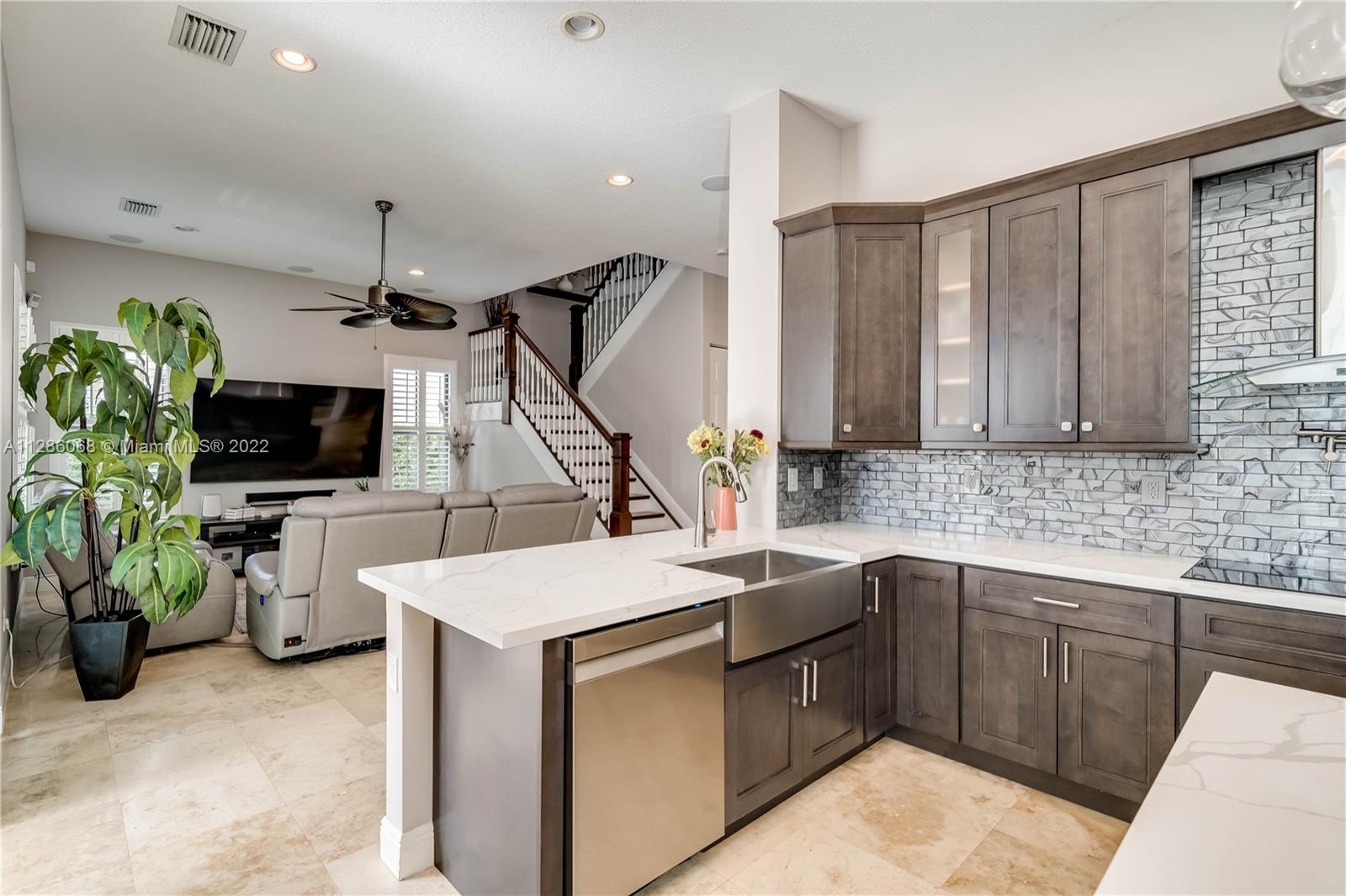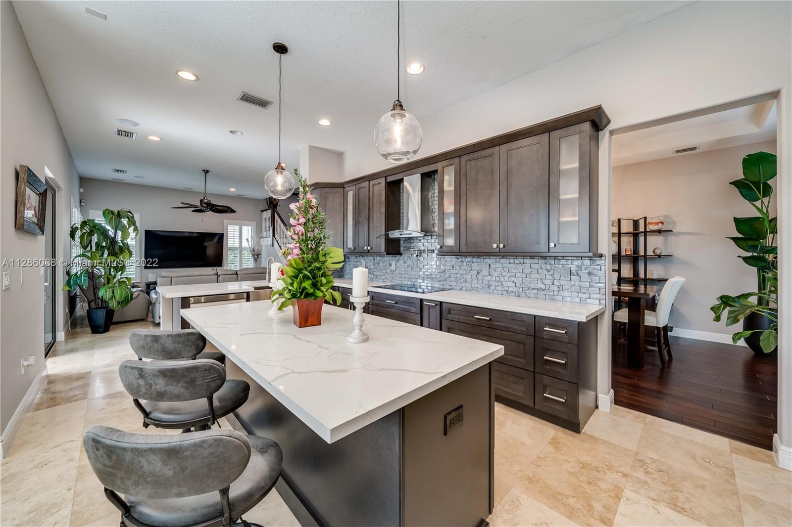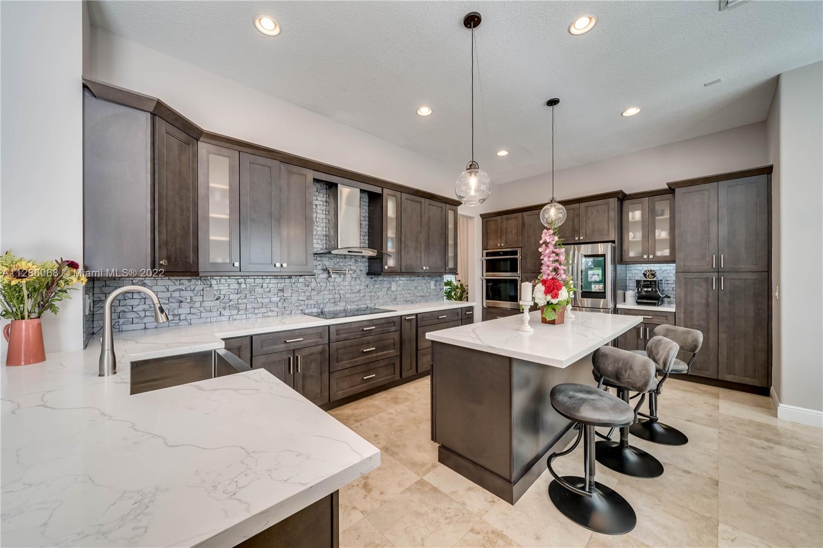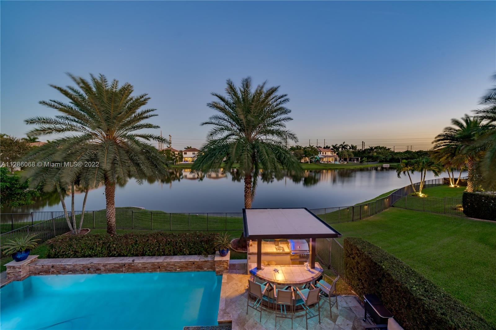 Gorgeous Lakefront home at Monterra, Cooper City’s most Luxurious Gated Community. The Tortuga Model boasts of vaulted ceilings, marble & wood floors, En-Suite downstairs & Spacious loft. Upgrades: Impact Windows/ Doors, Motorized Screen Patio, New Pool Pump with WIFI Panel, two 6 Ton AC Units, AC 3 Car Garage, Outdoor Kitchen & Bar & Remodeled Kitchen and Owner Suite Bathroom. Additional features: wired surround sound indoor/outdoor, wine fridge, plantation shutter & SWAT Mosquito Systems at rear yard perimeter with warranty. Your Oasis features a Custom Pool / Spa with a Waterfall, Outdoor Kitchen & Screened-in Patio. Community amenities: Guard Gate, Gym, Pool, Clubhouse, Tennis & Basketball Courts, Playground, Dog Park and more. A-rated schools, shopping & restaurants are nearby.