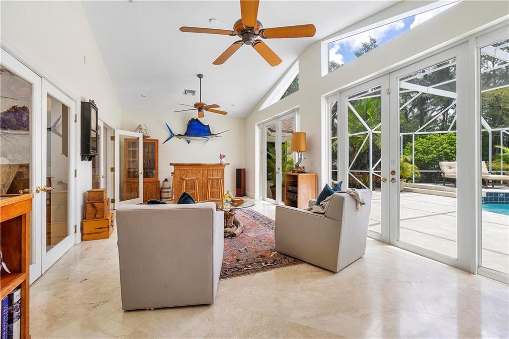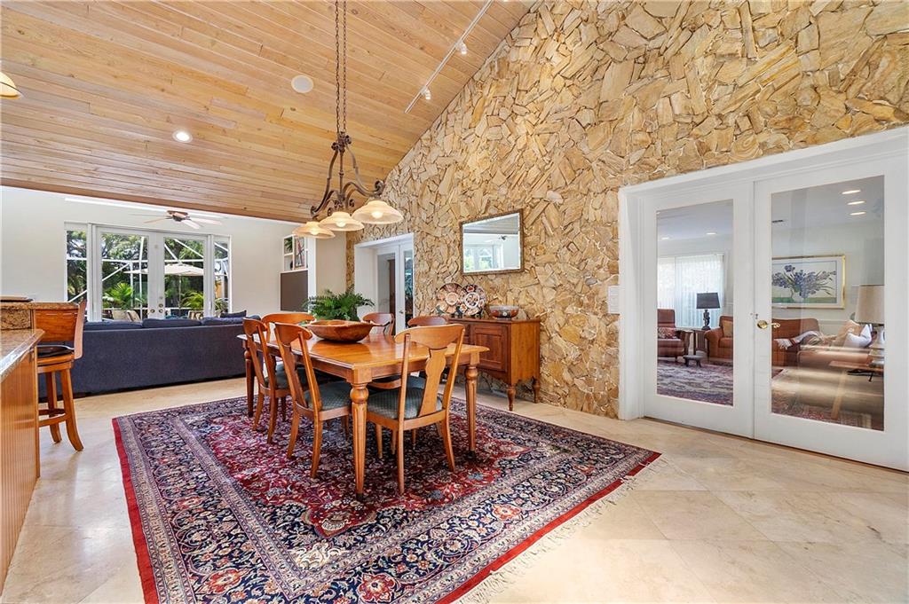 Nestled on a treed acre, Nature flows throughout this rich estate. Enter to feel the home’s unique spirit; Past a river rock entrance & under cypress wood ceilings- rare materials in this home are a treasure. The design honors use of Florida’s protected resources with stone & mahogany floors & detailing. Off the grand entrance, go to the Florida Room for pool & garden views or escape to the bedrooms- 3 stacked for privacy from the many entertainment spaces. Nestle up with a book in the library or use the 4th room for overnight guests. Bonus room is perfect for even the most discerning hobbyist; originally designed for the builder’s car collection, it currently serves as a recording suite. Your options are limitless! This home is for the buyer who demands quality above all else.
