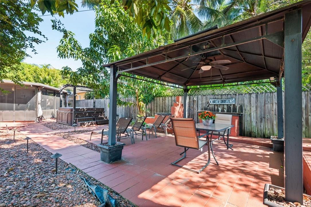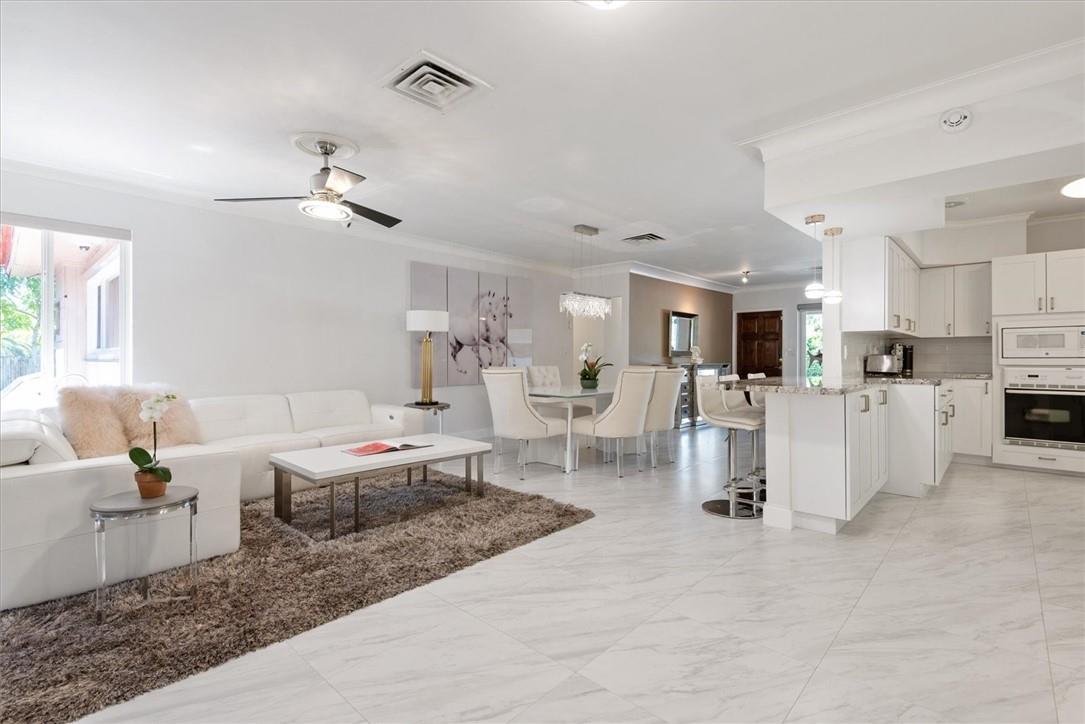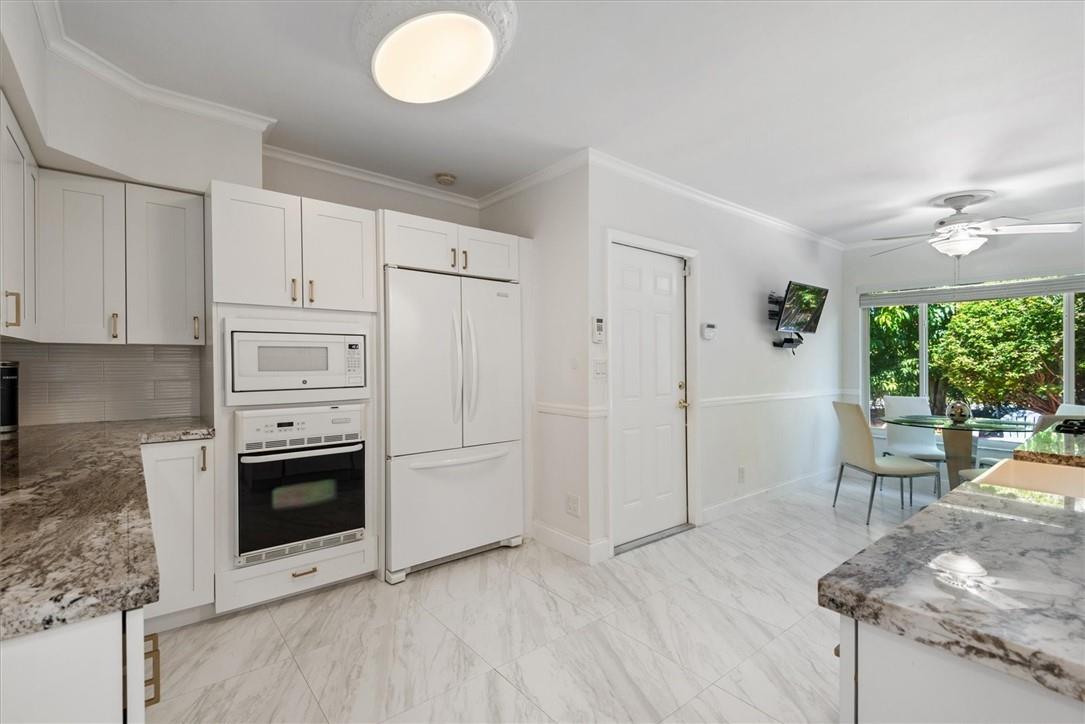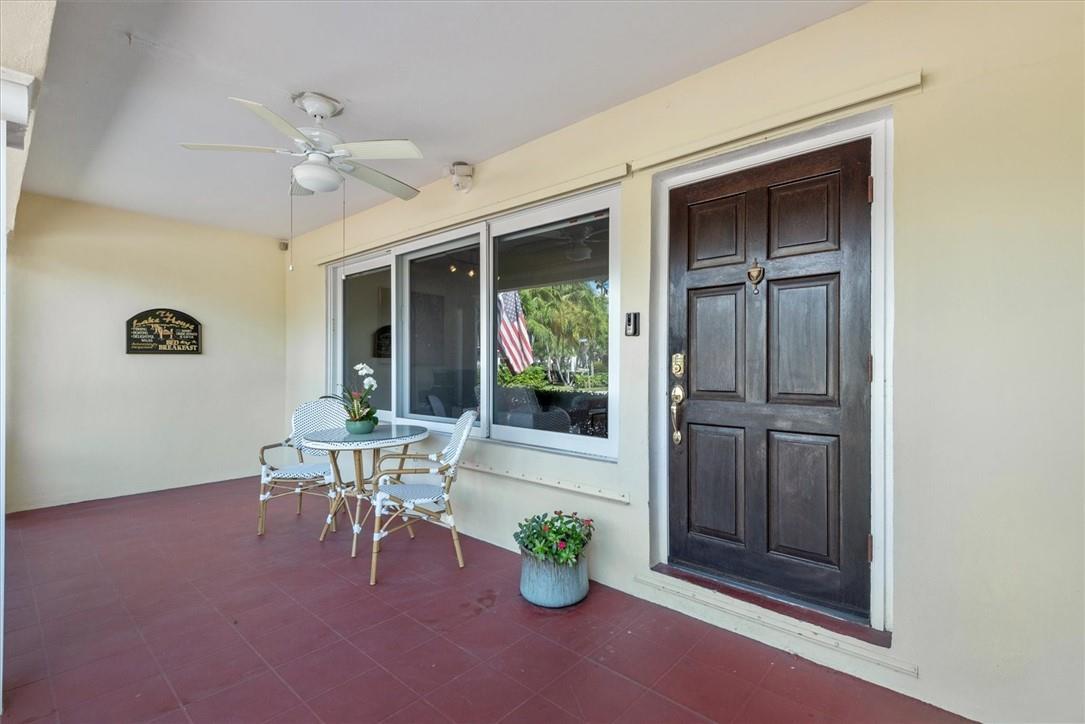 Pride of ownership in this renovated home located on a corner lot. Very well maintained residence featuring a light bright eat in kitchen with garden views, 3 bedrooms, 3 full bathrooms, built in closets, living room, dining room combination and a spacious cozy Florida room that leads to the expansive fenced in backyard for privacy. Mature trees add a warm gracious feel to outdoor areas that surround the property providing an atmosphere perfect for entertaining! White tile flooring throughout. One car garage with storage. Hurricane shutters included. Walking distance to Golf Course and Lake. Just a few minute drive to the ocean, restaurants and airport. A pleasure to show!