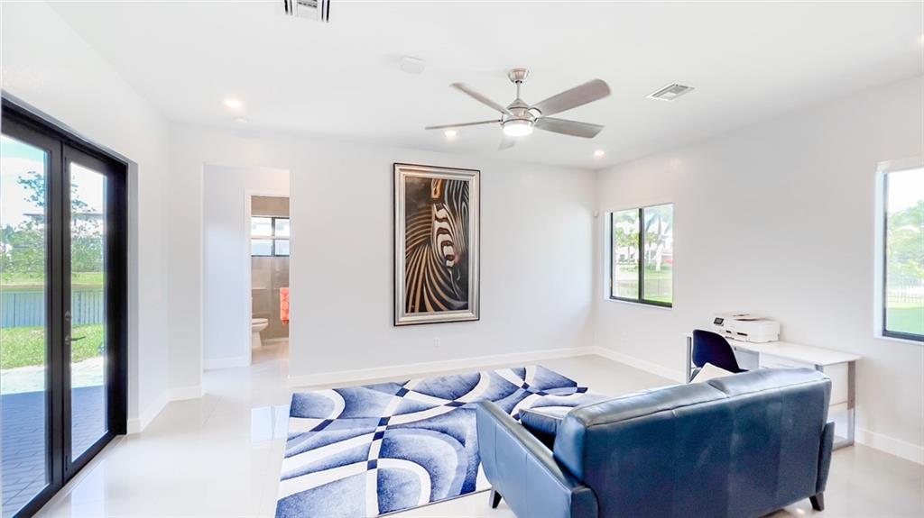 Contemporary architecture home in Presidential section of Cascata at MiraLago in Parkland. Waterfront views from many rooms. Bright open floor plan with lots of natural light in every room. Gourmet kitchen with stainless steel appliances and white quartz countertops open to living area with views of lake. Big primary bedroom, picture window view of lake and huge primary bathroom with separate dual vanities and large walk-in shower and soaking tub. Big formal dining room. 3 car garage with separate 2 car and 1 car garages. Extended patio and huge backyard fully fenced. Access to resort clubhouse and sportsplex, pool, spa, party room, ballroom, gym, tennis, racquetball, indoor and outdoor basketball, playground. 24/7 guard guarded security with two entrances. A + rated Parkland schools.