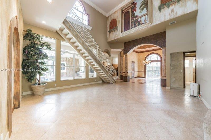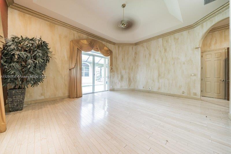 AUCTION. This spacious 5 bed/5.5 bath home is nestled in the upscale, gated community in Coral Springs. Home features an open floor plan with soaring ceilings in the living room, and large windows allowing natural light; open spacious gourmet kitchen. The living room, dining room all open up to the large paved, covered patio with an inground pool. The backyard offers great water views of the canal. Come enjoy resort style living with great amenities. The home offers a separate guest quarters for all your entertaining needs. MOLD REPORTED - USE CAUTION- water damage reported. Property is sold as-is with no repairs. Schedule your visit and make an offer.