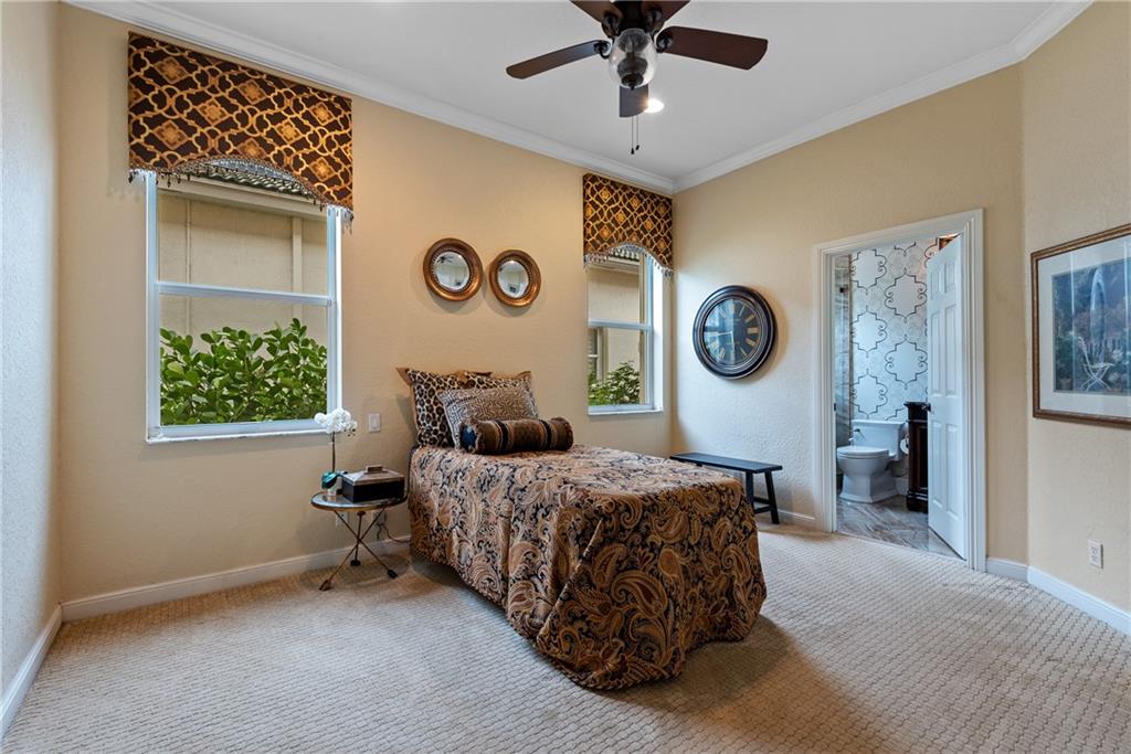 Offering unparalleled comfort & elegance, this home is sure to exceed all your expectations. The designer living room features floor to ceiling windows showcasing the beautiful water views from the moment you walk in. Gorgeous gourmet kitchen has GE Monogram appliances & double stacked cabinets. The family room is a great place to relax and unwind with a custom wall unit & French doors that lead out to the beautiful patio area & summer kitchen. Dramatic wrought iron staircase leads to the huge loft & additional br's. Luxurious & elegant primary suite loaded with top of the line upgrades including a stunning spa like bathroom. The backyard is a true tropical retreat with a gleaming heated pool, spa, screened in lanai & private built-in sauna. Resort style clubhouse with tons of amenities.