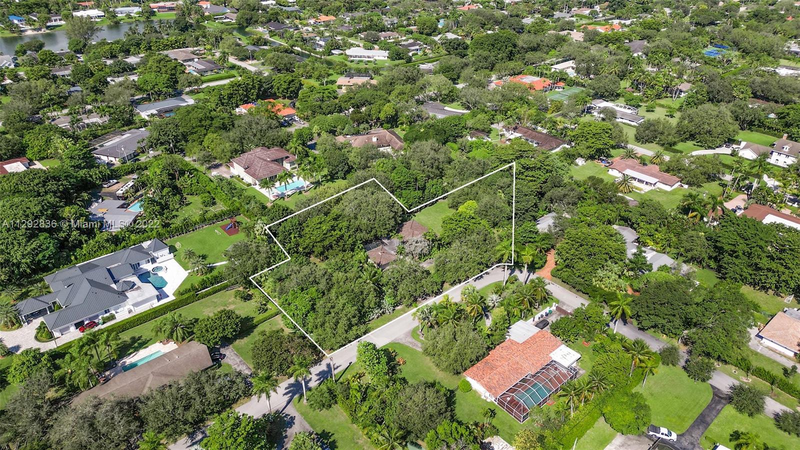 Reminiscent of the Coconut Grove landscapes this land is over 57,000 square feet and positioned perfectly on a quiet cul de sac. Design and build your next tropical abode in the highly desirable Pinecrest neighborhood. Stunning mature foliage surrounds the property to integrate into your plans. There is an existing small 1960s home on the property. Get your plans ready and create your forever home and pick everything you ever dreamed about in your next residence.