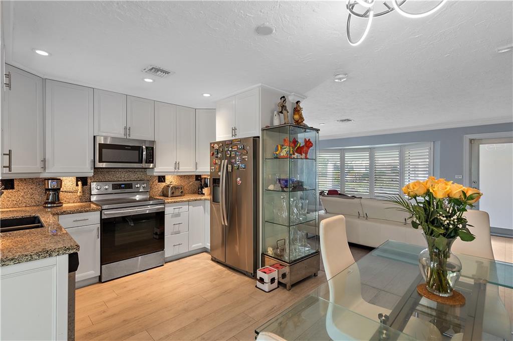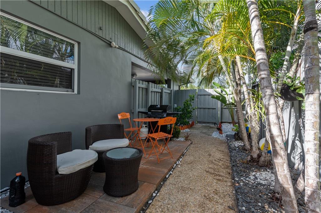 This property is a gem! It features 3 bedrooms, 2 bathrooms, a heated salt water pool and fully fenced gorgeous private tropical oasis backyard with an abundance of tropical foliage, to include a cabaña. Spacious screened patio with couch and firepit. New roof 2021. AC 2018. Pool 2019. Impact Windows. New wood flooring, Kitchen and bathroom 2019. Circular driveway. Outdoor Storage Room. No HOA! Could be an income generating property - Vacation rental / AirBnb. Third bedroom features a separate entrance, Ensuite bathroom and walk-in closet! Beach is only 1.6 miles away! Great location nearby dining, shopping, schools and much more! This property is a Must See!