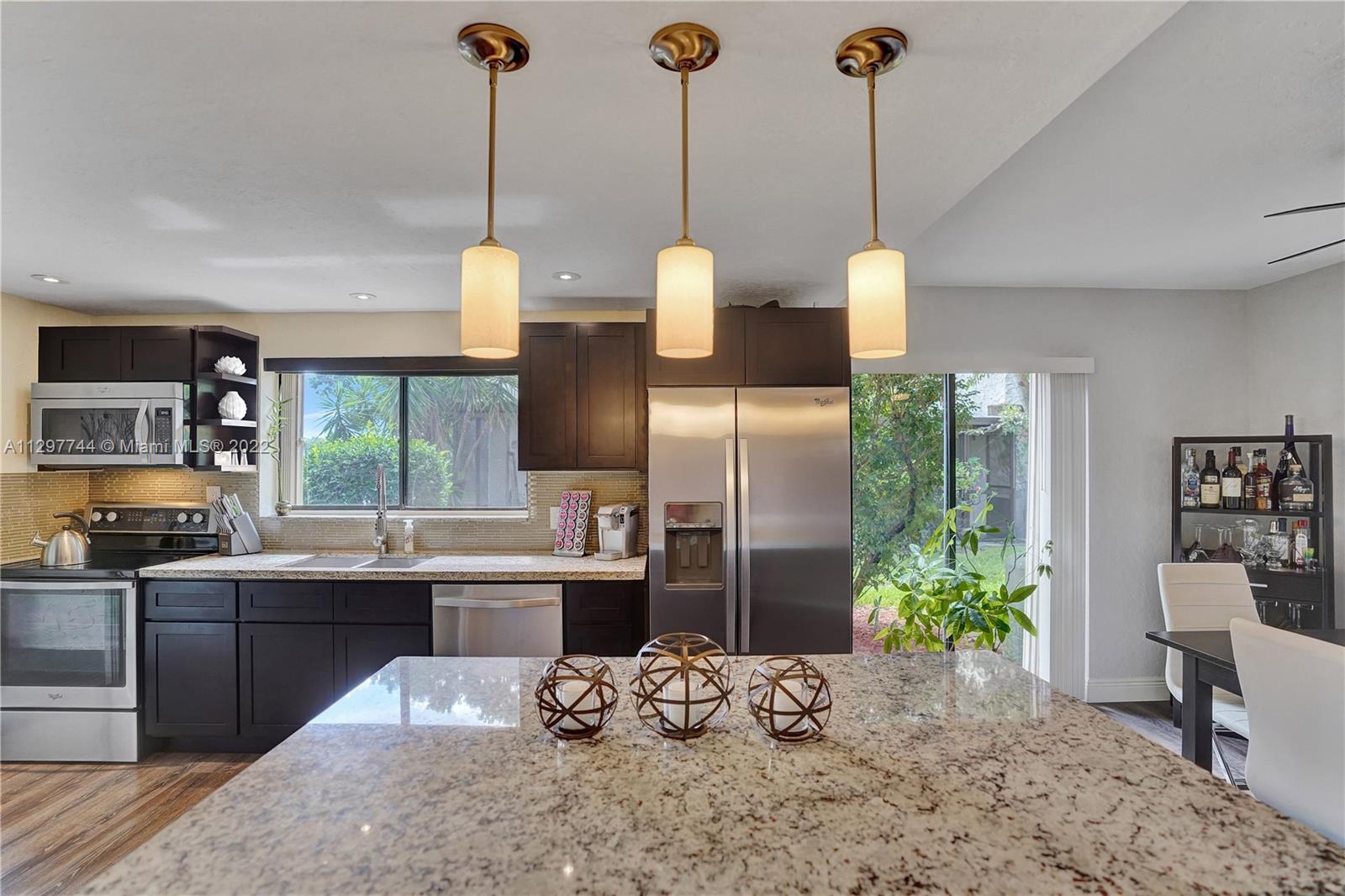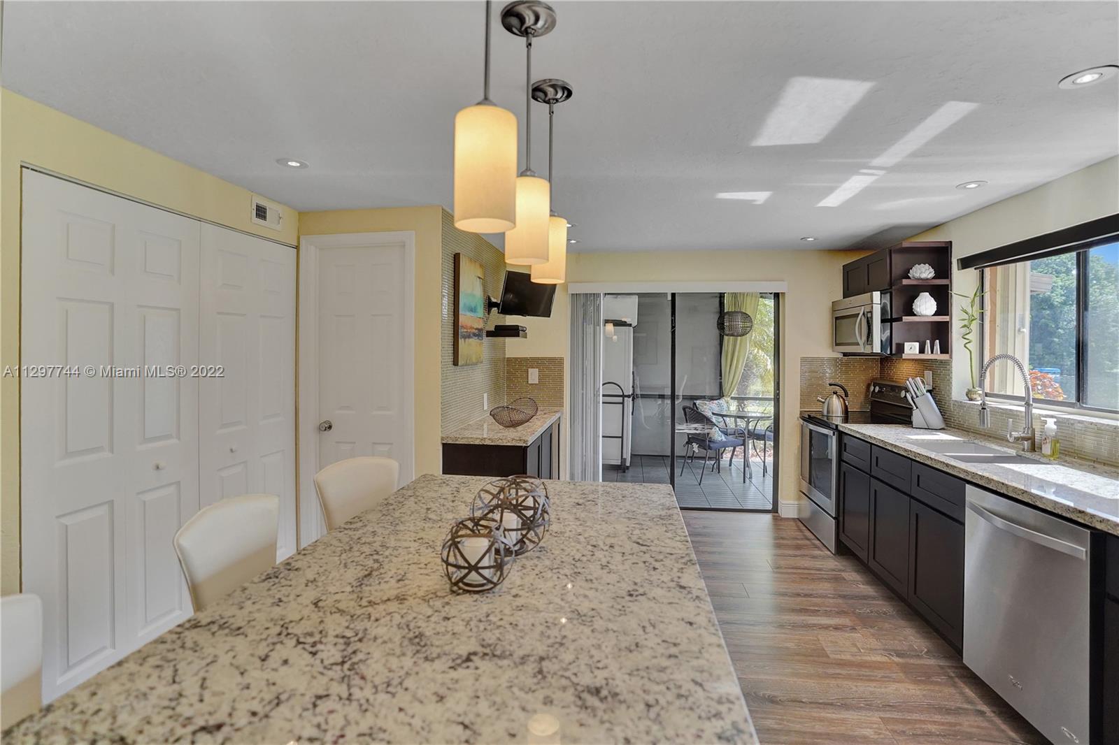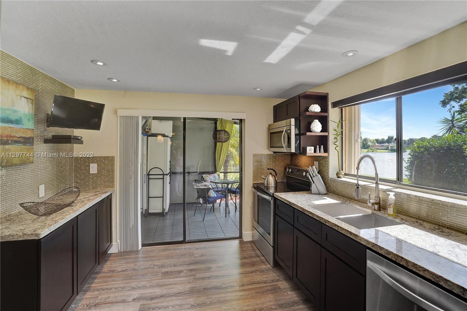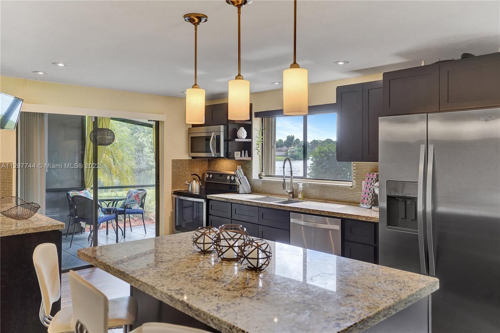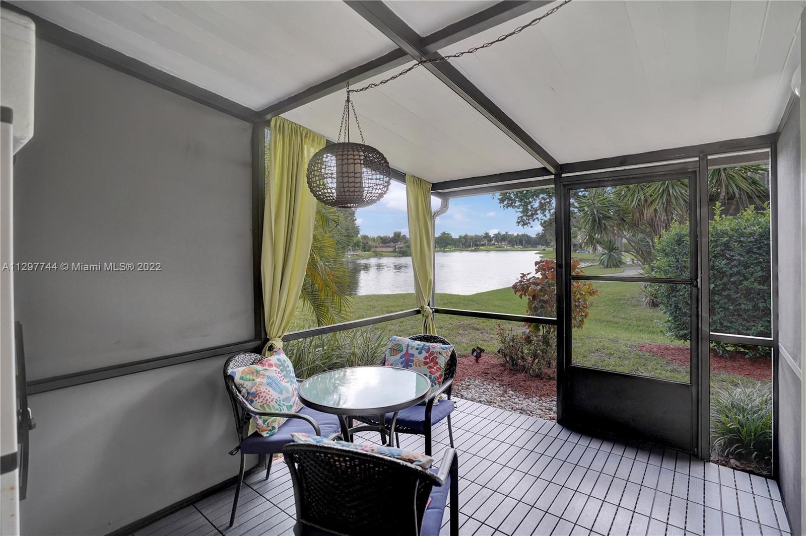 CASH ONLY. Fabulous townhome, tastefully updated. Come home and unwind looking at that peaceful lake view from your screened patio. Open-concept kitchen/dining area with abundant countertop space. TWO assigned parking spots right in front of your door. Accordion shutters were installed throughout for your peace of mind. Low HOA fee includes exterior maintenance, water/sewer, and amenities. New ROOFS are being installed throughout the community. Pets under 25 lbs are allowed and the property can be rented out immediately. Located in the heart of Plantation, you are within walking distance from Central Park and just a few minutes from major shopping areas. Full-size washer and dryer are less than 3 years old and AC unit and electric panel are both less than a year old.
