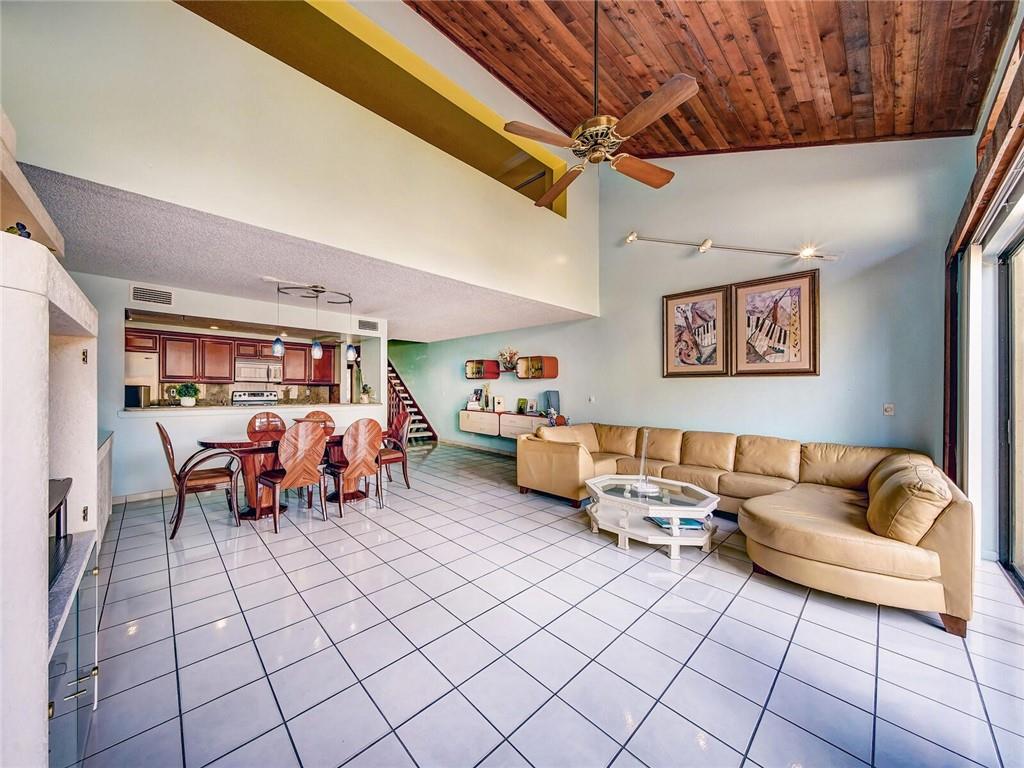 This lovely 3 bedroom 3 full bath corner unit is spacious, light and bright. From the moment you enter you are greeted with soaring Cedar cathedral ceilings, and an open concept design perfect for family gatherings and entertaining. The kitchen boasts granite countertops, real wood cabinets and S.S. appliances. All 3 bathrooms are fully updated with new vanities, lighting fixtures, and hardware. Second floor has crown molding. The lighting fixtures in the dining room and all 3 bathrooms are Tec lighting. Spectacular back porch recently redone, and brand new privacy fencing perfect for enjoying the Florida Lifestyle. Low HOA fee of $240.00 a month includes tennis facilities, pool and lawn maintenance. Centrally located near restaurants, shopping and major highways. Seeing is believing!