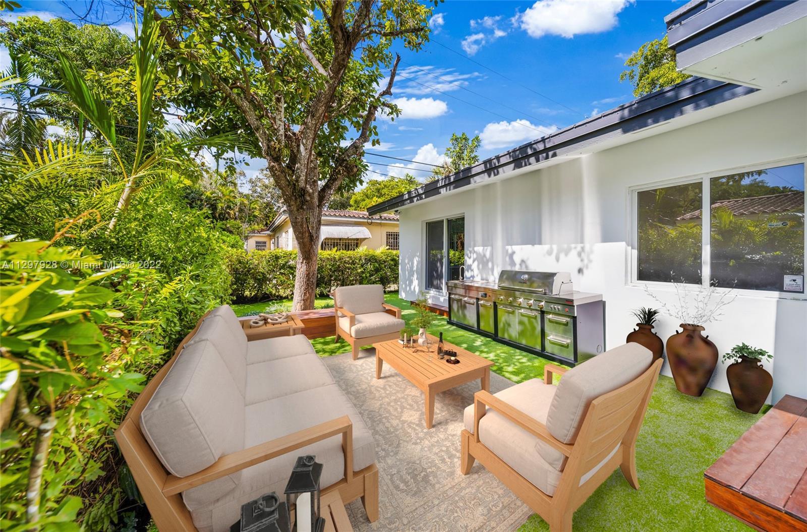 A completely remodeled Single Family house at prime location in Coral Gables! 3 beds 2 baths and car garage! High-end finishes include 24x48 imported Spanish porcelain flooring, gorgeous custom kitchen with black stainless steel appliances, electrical & PVC plumbing, and much more. IMPACT windows all around the house. Built-in BBQ in the backyard. 7k sqft lot! Take advantage of this beautiful house Ready to move in! Won't last
