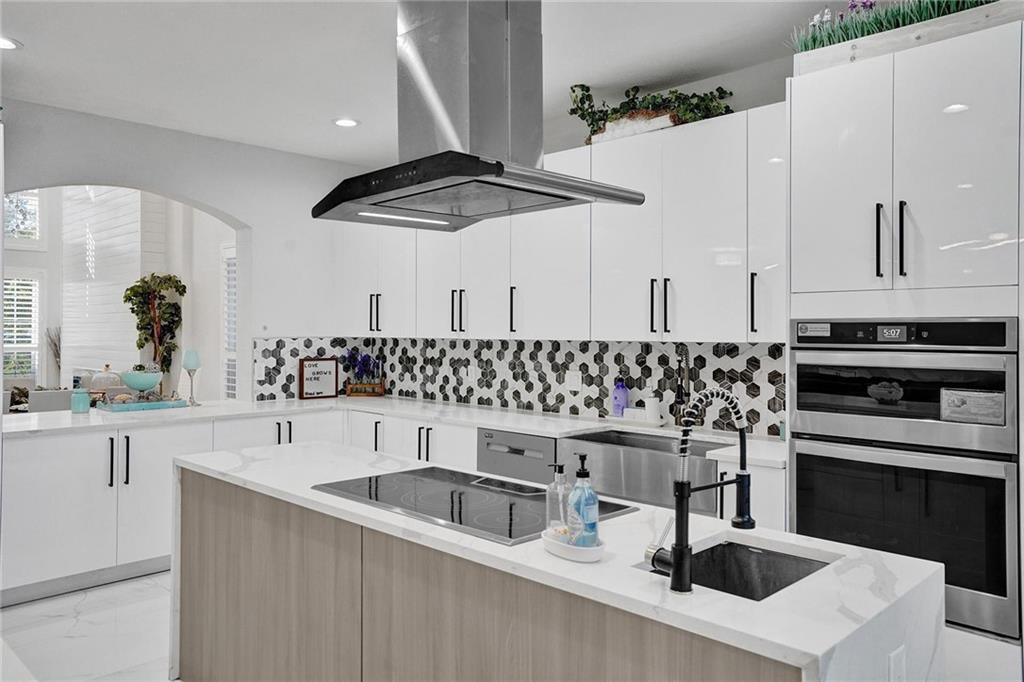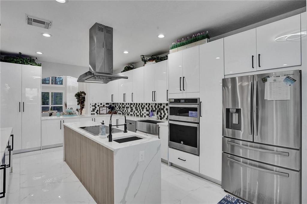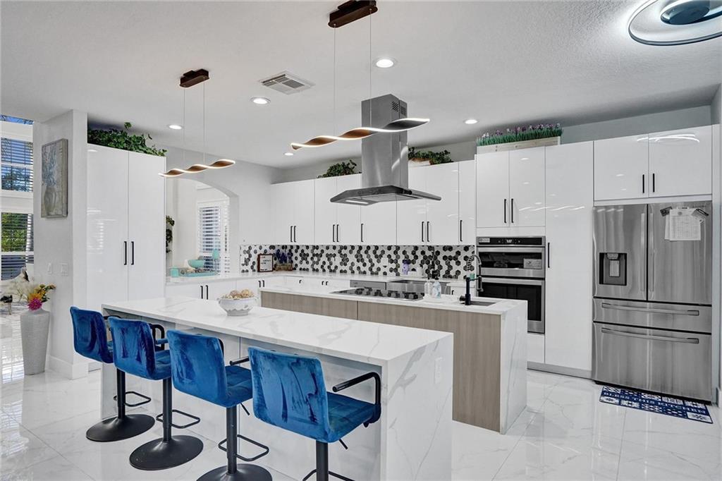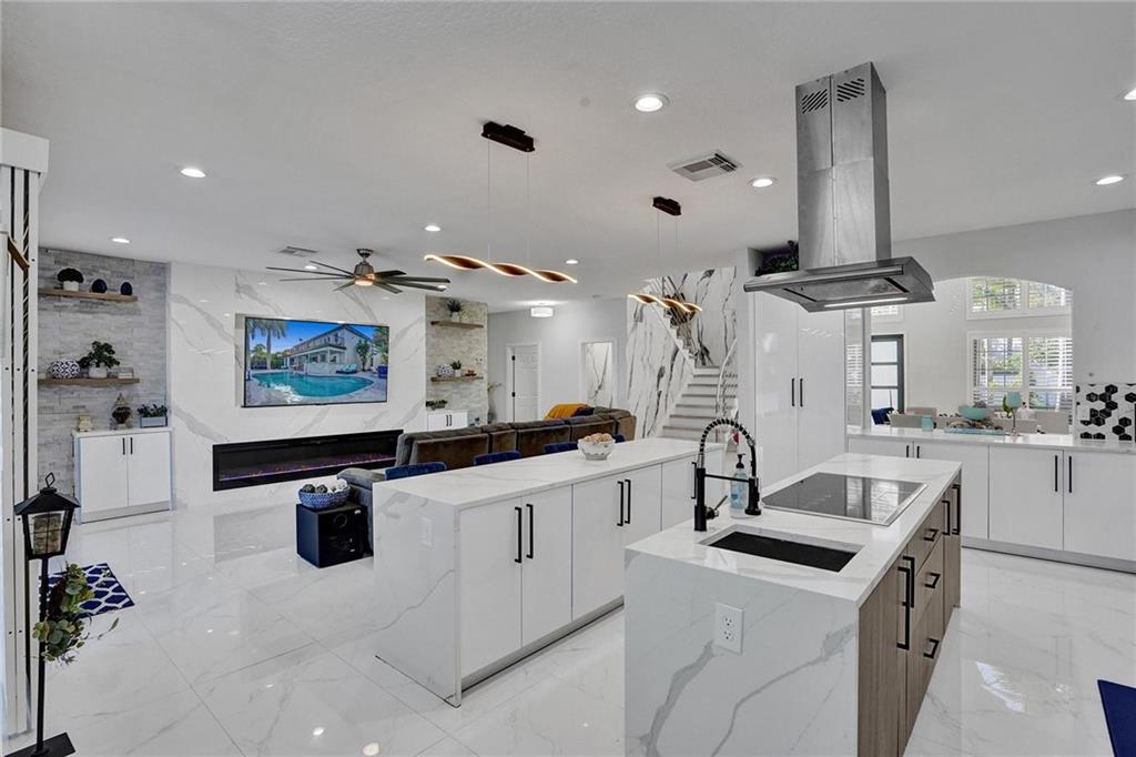 OMG!! Resort style living. This unbelievable 5/4.5 BTHS lakefront pool home was completely remodeled in 2020 & 2021. Baths features 24x48 porcelain tiles, custom shower drs, new vanities, etc. New recessed lights. Kitch features wood cabinets, Qtz countertops, SS appliances. Pool resurfaced with new diamond bright, new tile, & new marble pavers. Entertain while you BBQ on your SS barbecue grill and fryer. Garage setup as playroom with m-split AC. Check the family room wall affixed with custom porcelain slabs, linear fireplace and TV. Be mesmerized by the Custom build stainless steel stairs. Features 2 Master bedrooms 1(st & 2nd floor). AC units only 2 yrs old, WIFI compatible wtr htr, all closets have storage build-ins. Has accordion shutters on all windows, frnt & side doors are ​​‌​​​​‌​‌​​​​‌‌​‌​​​​‌‌​​‌‌​​‌‌ impact.