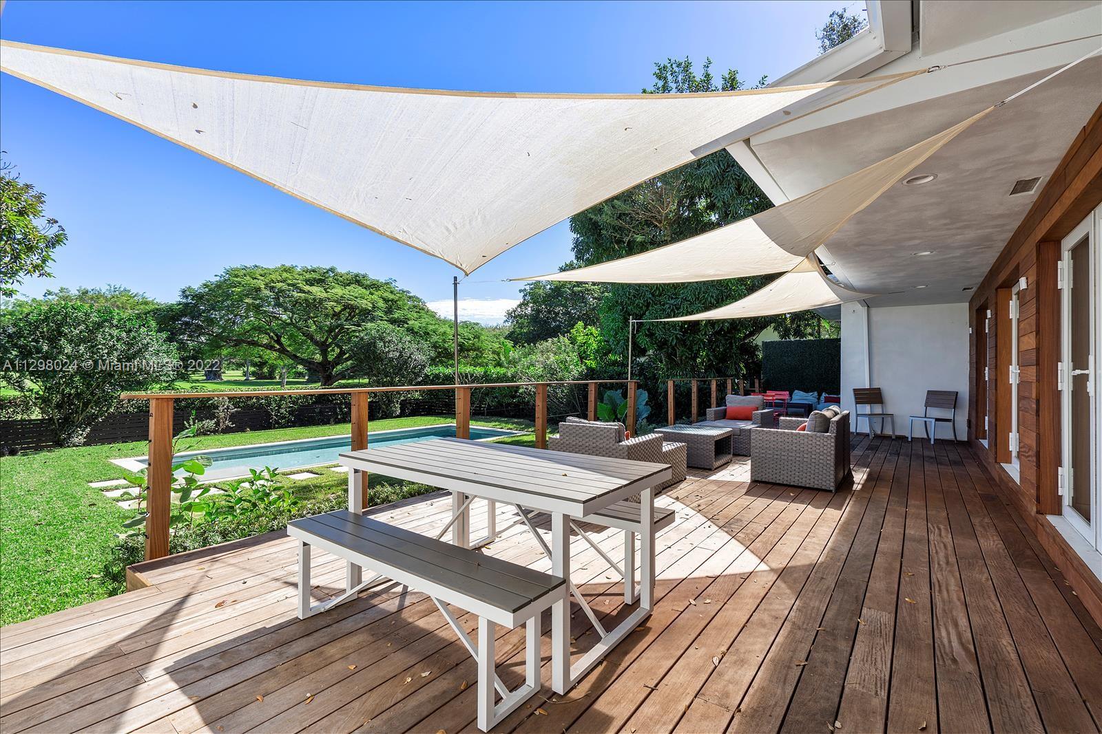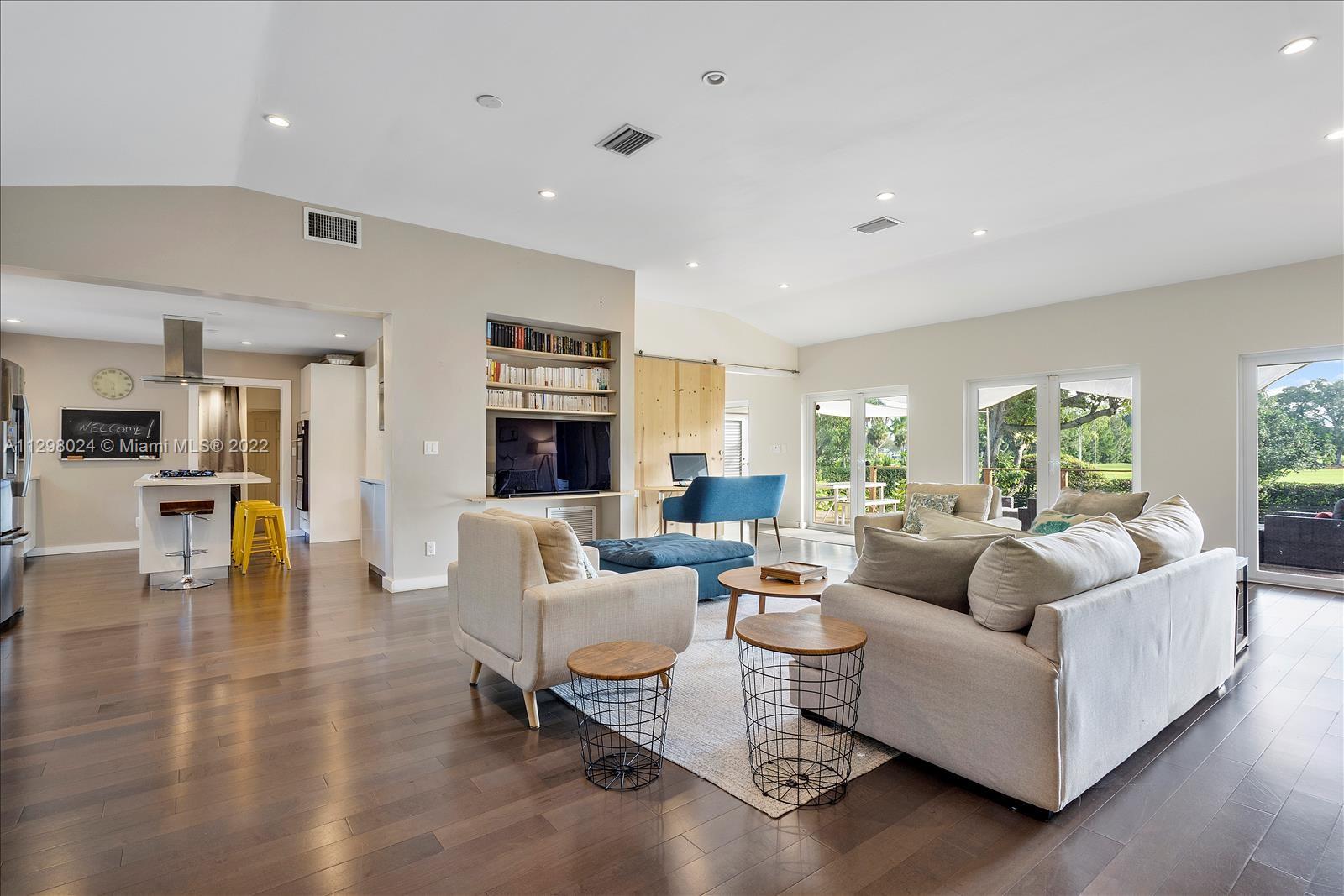 Imagine waking up to sunrise over the golf course! Rarely available entertainment home located in desirable Miami Shores boasts expansive views of the 6th fairway. Enjoy open-plan living with 3 bed/2.5bath + office as well as an updated kitchen, high ceilings, wood floors and oversized living spaces. The primary bedroom features access to the deck, a renovated bathroom and multiple closets. 2 oversized guest bedrooms have large closets and a shared bathroom. A bonus flex room provides the perfect spot for an office/playroom/den. Set on an oversized lot, light pours in from the many french doors leading onto the deck and overlooking the pool and garden. Walk to some of Miami's finest private schools or take a short drive to beaches/downtown/design district. Tenant OCC/Lease ends early Jan.