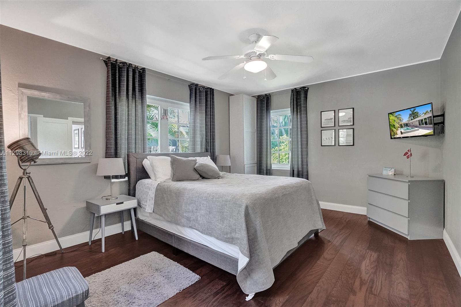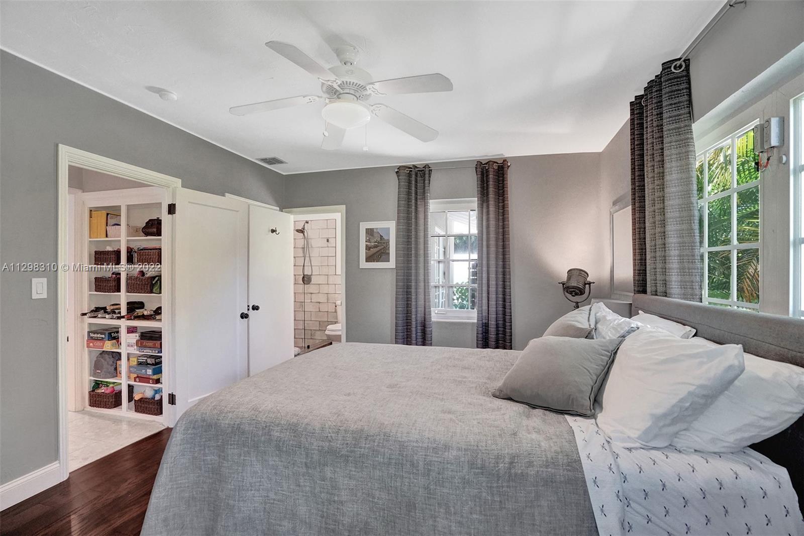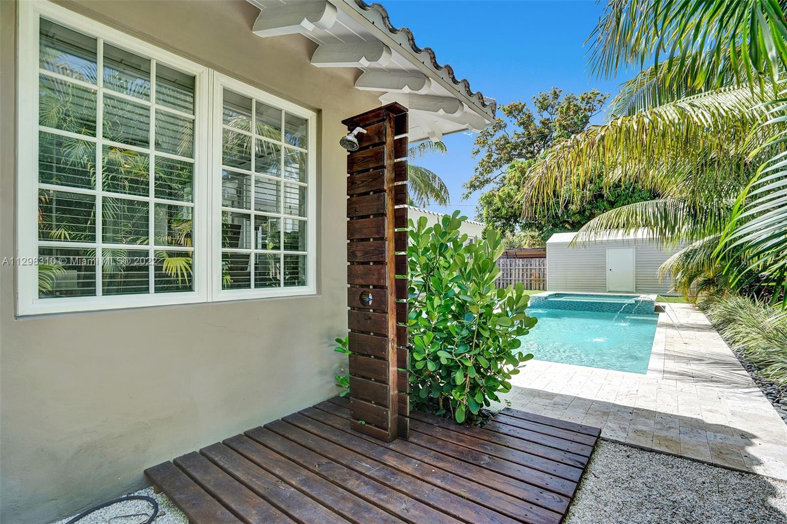 PRICED UNDER APPRAISED VALUE!! This is a well kept historic home in the heart of Hollywood Lakes within a mile to the beach and walking distance to downtown. This 3/3 split floor plan home has two master bedrooms lined with custom trim, composite stone flooring in living areas and wood flooring in all bedrooms. It comes equipped with 2 A/C units under 4 y/o, recessed LED lighting, ceiling fans in all bedrooms, and tankless water heater. Bathrooms are newly remodeled, home also has impact windows/doors and upgraded appliances. Irrigation is controlled by an app and runs on well water. Pool is a year old surrounded by natural stone decking and an outdoor shower. Large permitted storage shed also located in the back.