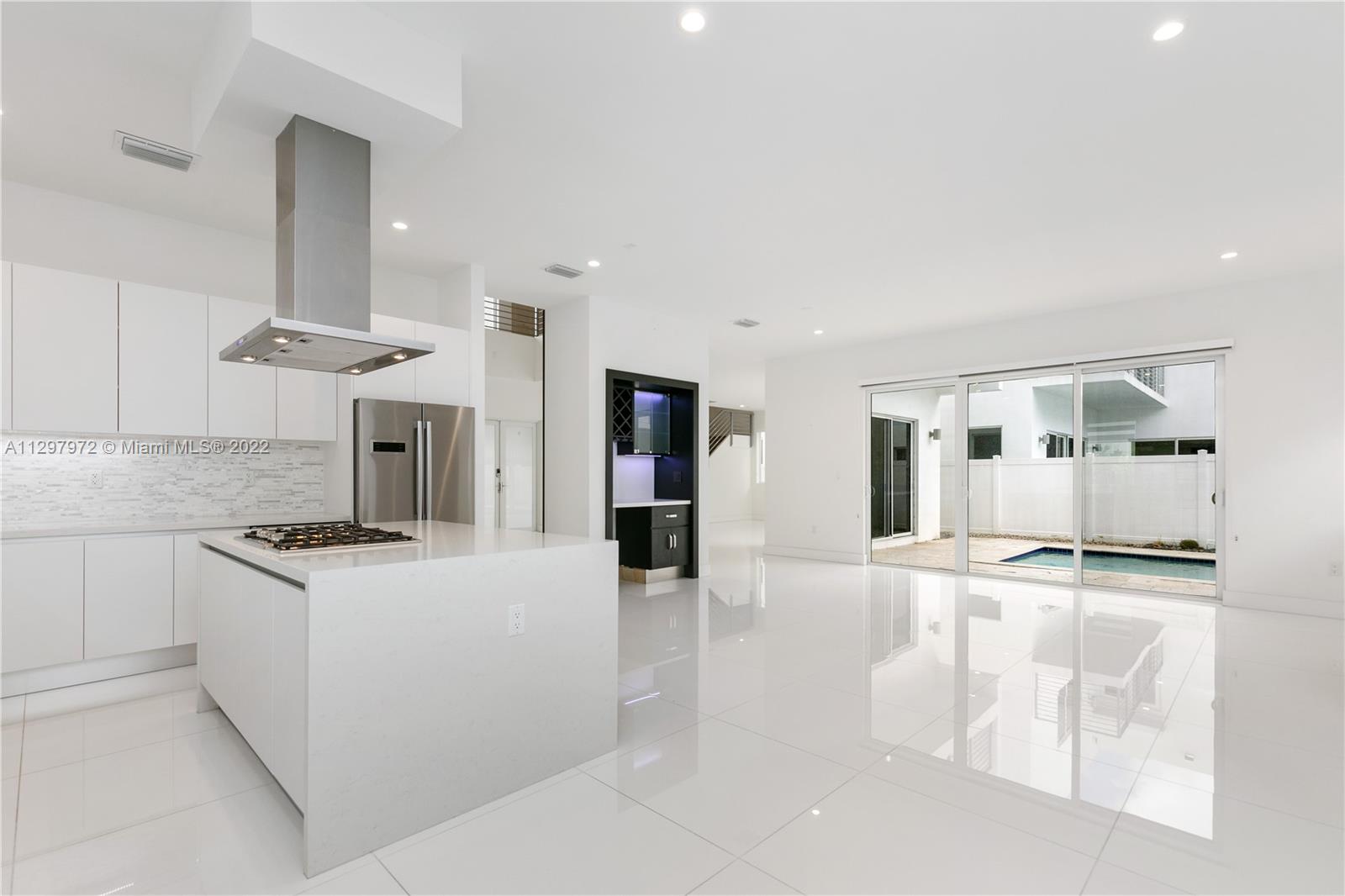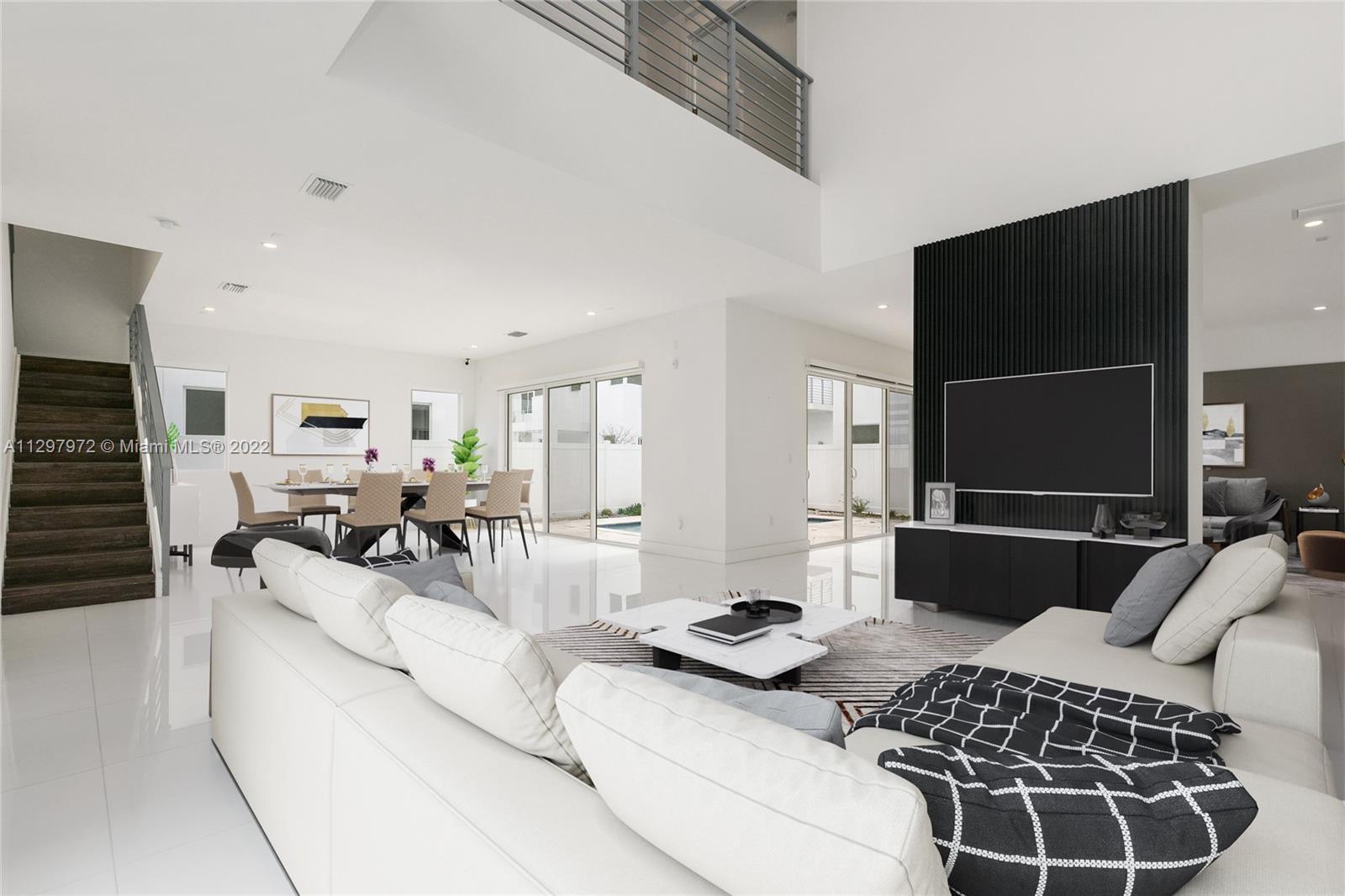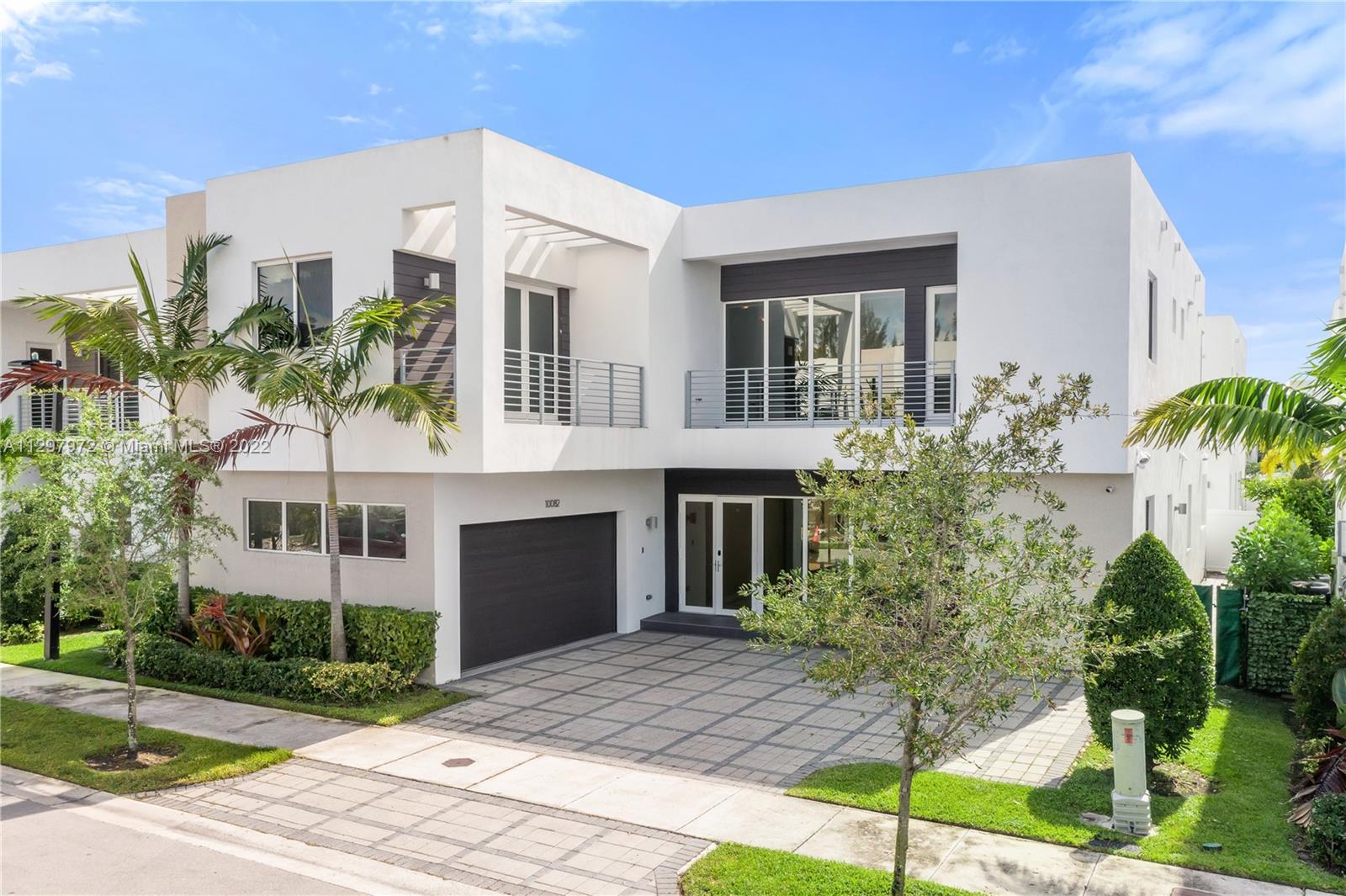 Welcome to the most iconic community in Doral. Luxury contemporary single-family home featuring 5 bedrooms with 5 bathrooms. One bedroom downstairs with a murphy bed, perfect for guest or office, and full bathroom with access to the patio. Plenty of upgrades: bar in the family room, extra pantry in the kitchen, extra storage in the garage, white metal fence, and much more. Open living spaces with white porcelain floor through-out the 1st level and wood in staircases and 2nd floor. Italian kitchen with quartz countertops & Bosch appliances and wine cooler. Concrete construction with impact windows & doors. Master suite has two custom walking closets, bathroom with dual sinks, roman tub, and a separate shower. Pool and outdoor BBQ area. Gated community with 24hrs security. Easy to show!