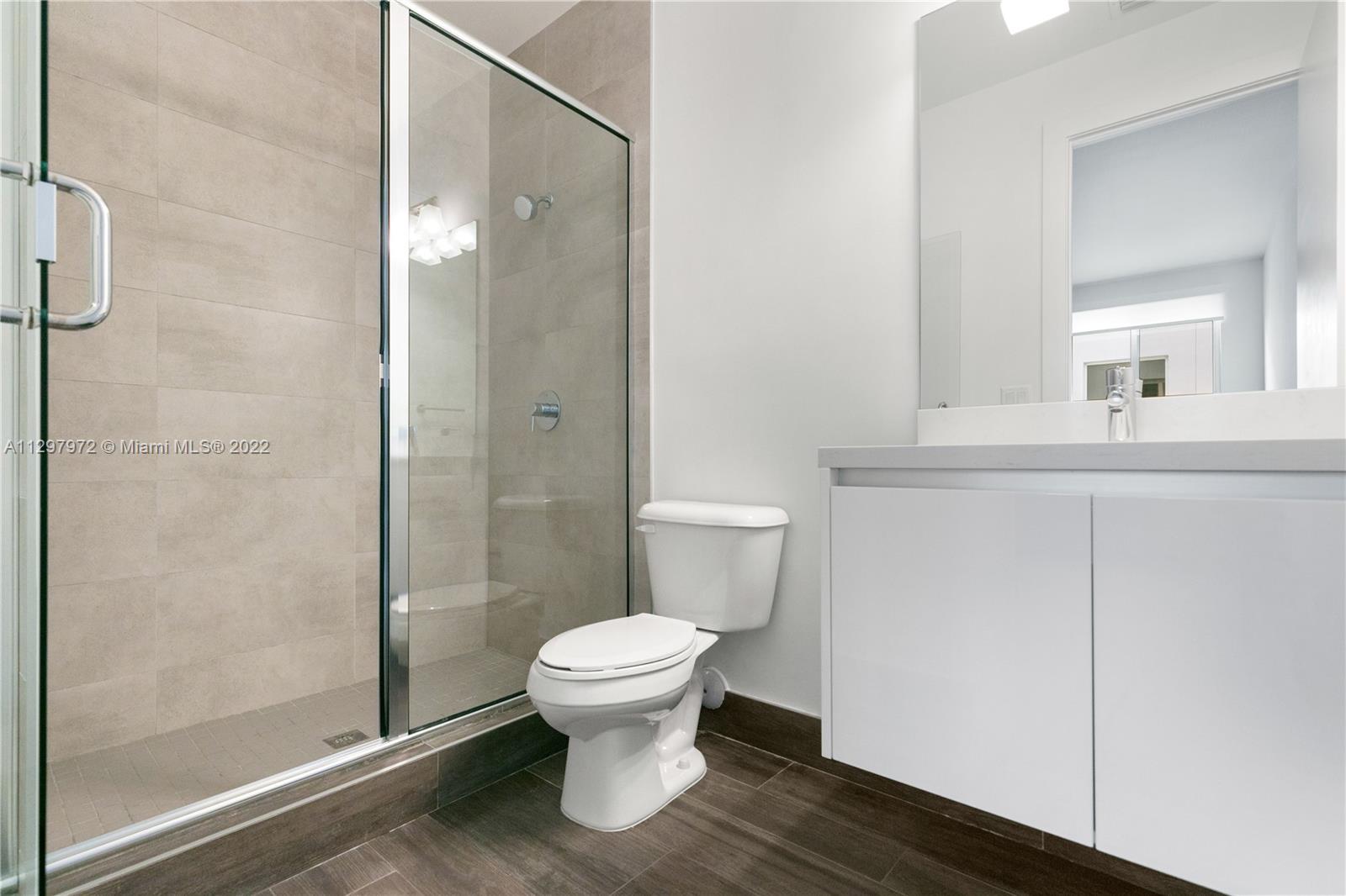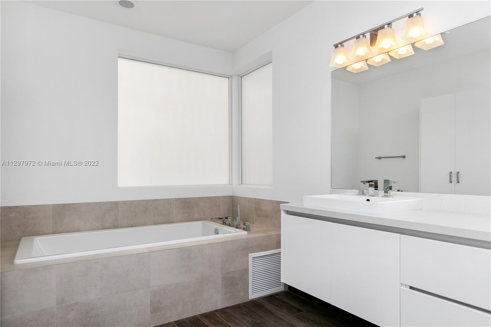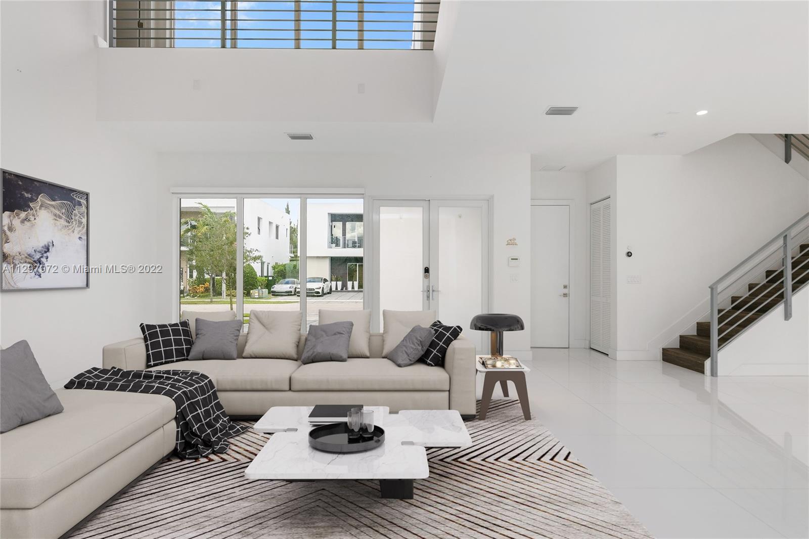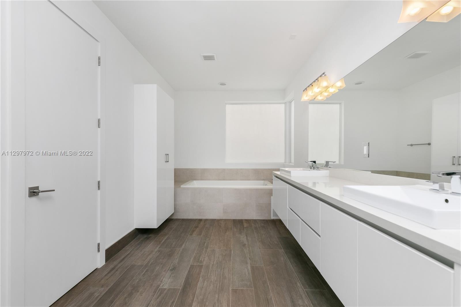 Welcome to the most iconic community in Doral. Luxury contemporary single-family home featuring 5 bedrooms with 5 bathrooms. One bedroom downstairs with a murphy bed, perfect for guest or office, and full bathroom with access to the patio. Plenty of upgrades: bar in the family room, extra pantry in the kitchen, extra storage in the garage, white metal fence, and much more. Open living spaces with white porcelain floor through-out the 1st level and wood in staircases and 2nd floor. Italian kitchen with quartz countertops & Bosch appliances and wine cooler. Concrete construction with impact windows & doors. Master suite has two custom walking closets, bathroom with dual sinks, roman tub, and a separate shower. Pool and outdoor BBQ area. Gated community with 24hrs security. Easy to show!