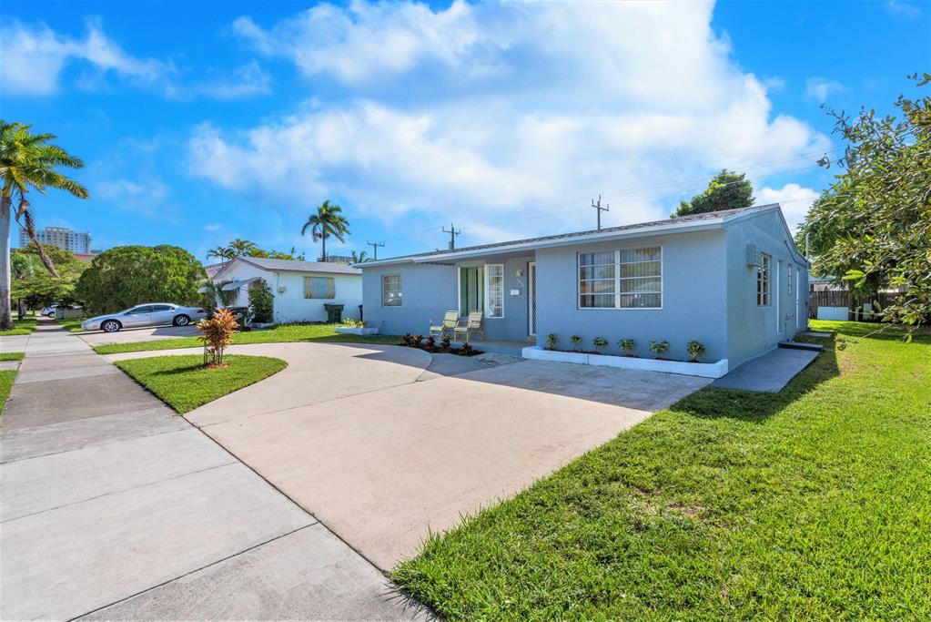 Great home in East Hallandale Beach, East of US1, just minutes from the beach. Great investment opportunity or single family home at a great price in this fantastic location! The home features A BRAND NEW ROOF, installed in 2022., Freshly painted outside, clean and ready for your personal touches. House has 2 bedrooms on one side and a 3rd bedroom on the opposite side with it's own entrance, cabinets and small refrigerator, access to private bathroom, could be used as in law suite or Airbnb. The home has a huge backyard with concrete patio, a large Florida room with closet, the kitchen had been renovated a few years ago. Has a large circular driveway that provides parking for a few vehicles. NO HOA! Come see this great home today!