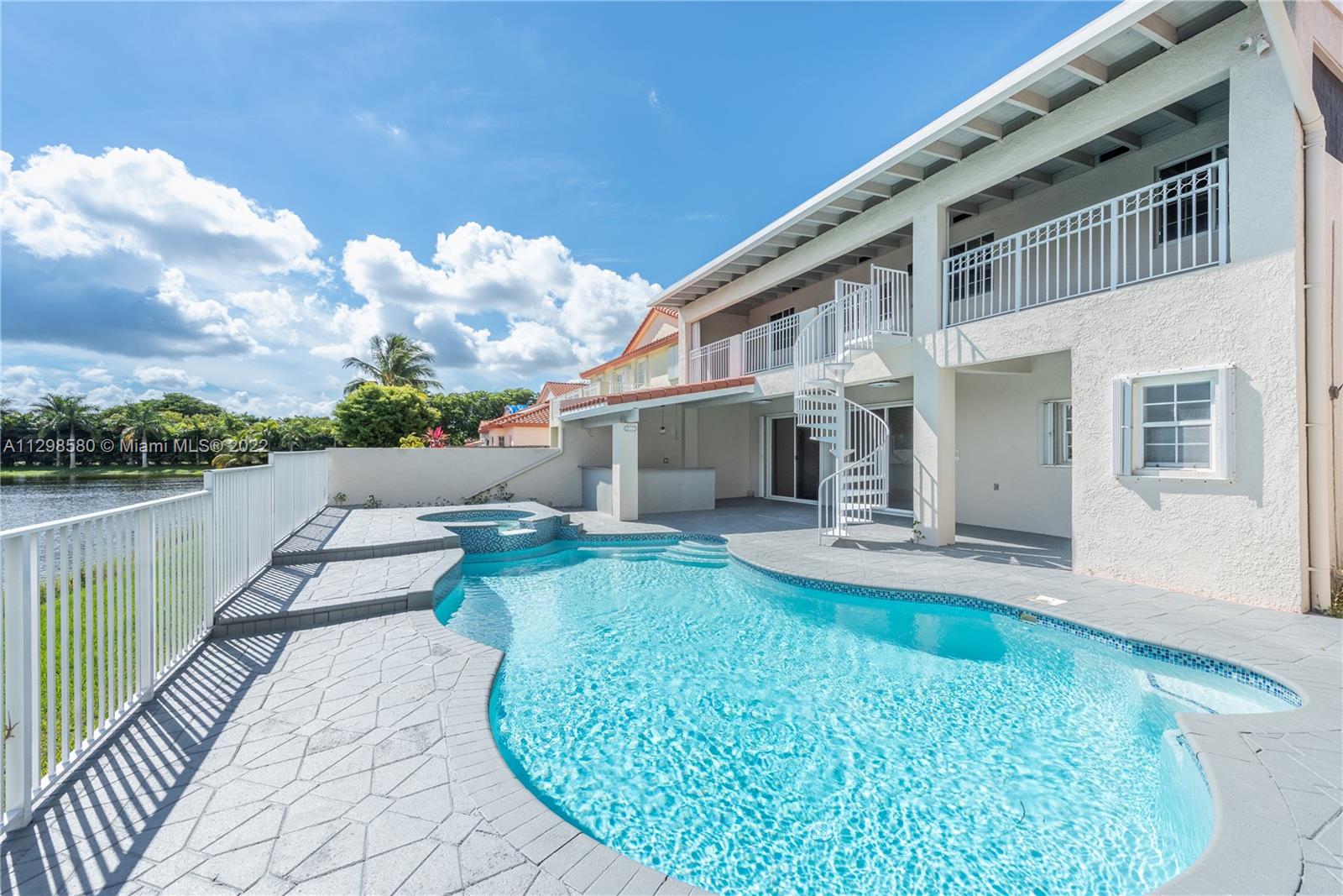Amazing lakefront 2 story home with 4 bedrooms + one studio and 3.5 baths, 4 bedrooms upstairs and one studio/bedroom/office downstairs. Amazing Pool and Jacuzzi with a wonderful covered terrace upstairs. Outside there is a full bathroom for the pool area and a newly design outdoor kitchen/bar. New roof from 2018, New ACs, new pool equipment, pool has been remodeled completely. Living in Doral Sands provide you access to the private clubhouse called Doral Park that provide 10 tennis courts, 2 basketball courts, beach volley court, full gym, huge play area for kids, 2 members only restaurants, Olympic pool, etc... Doral sands is one of the best gated communities in Doral. Don't miss this opportunity!