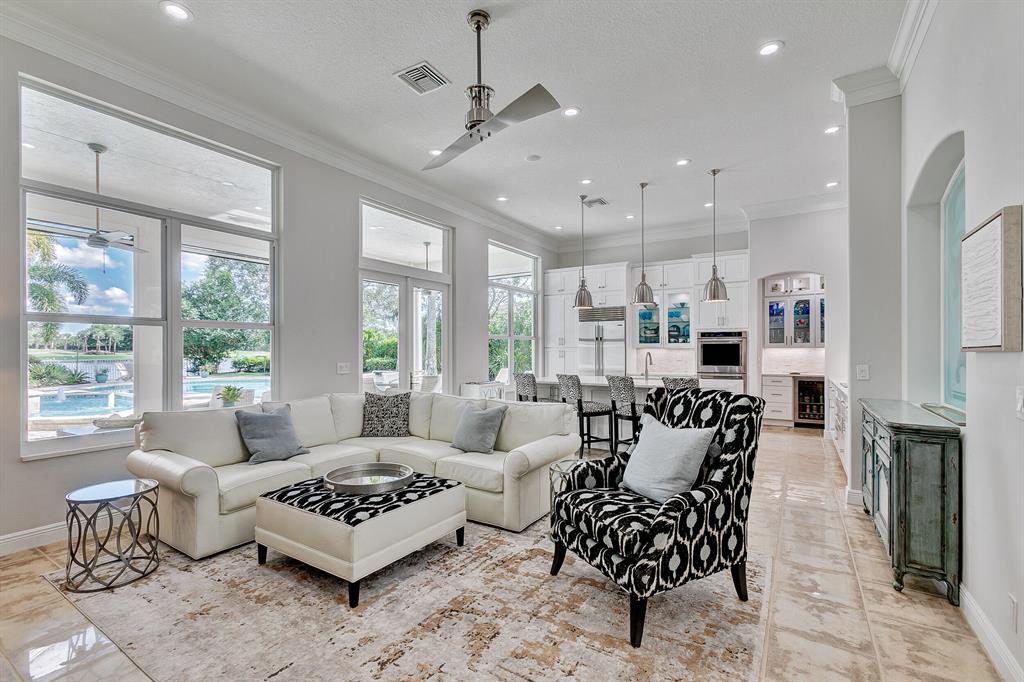 Sunny 3 Bed 3 Bath One Story renovated home. New eat-in kitchen, 3 new baths. Living room, dining room, family room, 2 den/study's. Butler's pantry. Oversized screened porch with phantom screens. Renovated pool overlooking lake & golf in Ironhorse CC.Oversized private lot. New roof & almost complete Impact windows. Newer AC's. Membership available but not required.