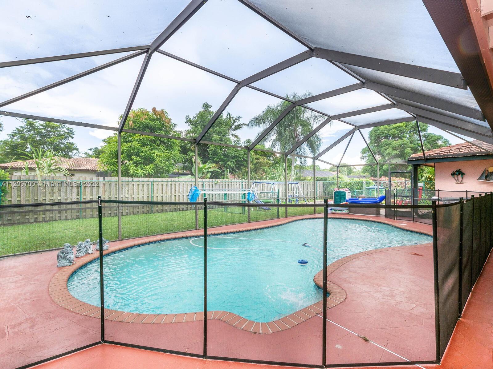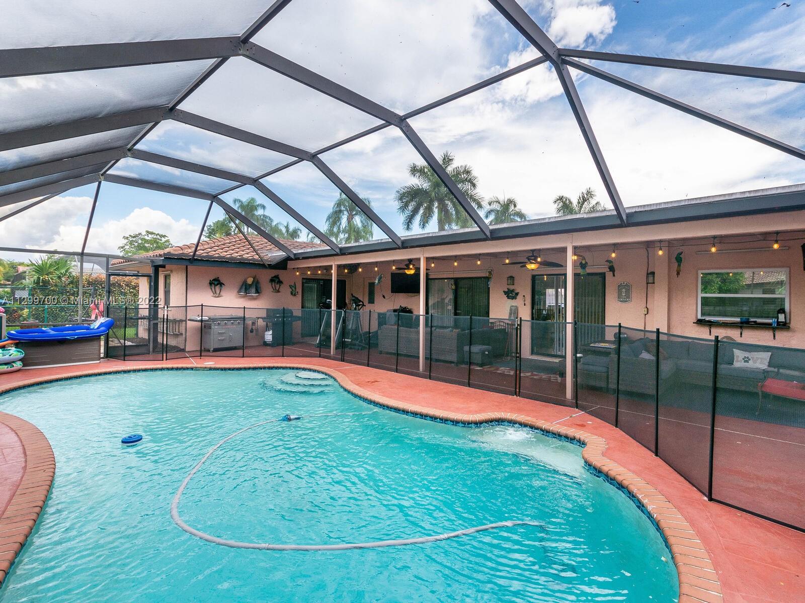 BUYERS FINANCING FELL THRU LAST MINUTE. MOTIVATED SELLERS Completely renovated 4 bed, 2.5 bath corner home with a pool and NO HOA. New roof 2017, new kitchen/granite countertops 2021.Master bath renovated months ago with new granite tops. Hallway/Cabana bath renovated with Jacuzzi tub, travertine marble walls/floors and a custom countertop. New flooring throughout the four bedrooms, hallway and living room. Wet bar in the family room for entertaining. Screened pool with a baby gate surrounding it. Backyard was divided with a fence to allow animals on one side and keep the other side clean for kids to play. Tankless water heater, partial impact windows, corner home with two driveways that can accommodate up to 8 vehicles (plus 2 more in garage). NO FLOOD INSURANCE NEEDED.
