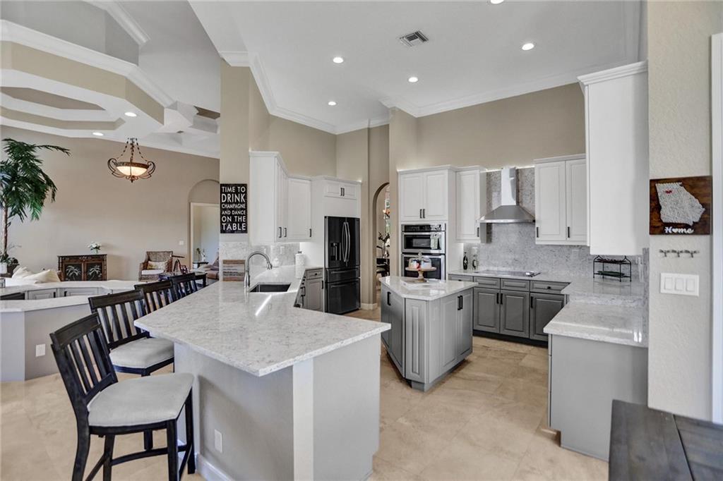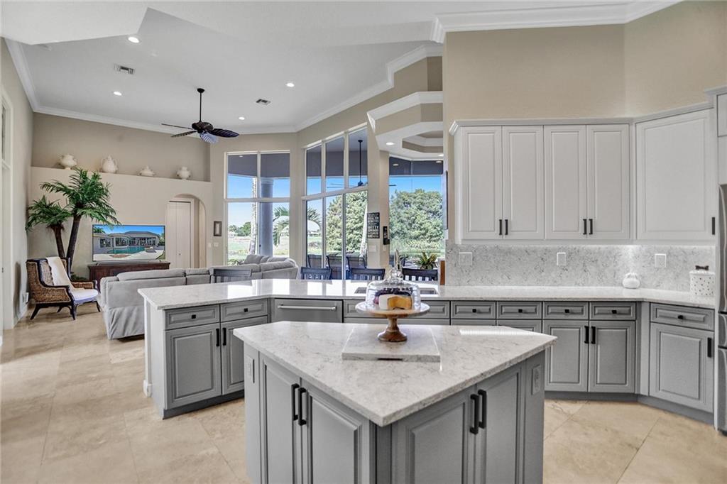 Stunning One Story Custom Home Located In The Double Gate Community The Falls of Heron Bay. 5 Bedroom + 4 Bathrooms + 2 Half Bathrooms + Office Custom Home Located On The Water With Amazing Sunset Views. Brand New Roof 2022! Interior Features Include Renovated Kitchen With Wood Cabinets, Quartz Countertops, Center Island, Stainless Steel Appliances. Interior Features Include Spacious Open Family Room w/ Entertaining Built In Bar Area, Marble Floors In Living Area, Coffered Ceilings and Crown Molding, New Flooring In Bedrooms and Freshly Painted. Spacious Master Suite w/ Sitting Area, Private Office, Dressing Area, 2 Walk In Custom Closets, Master Bathroom w/ Double Sinks, Jacuzzi Tub. Gorgeous Water Views w/ amazing sunsets, Fenced In Yard, Mosquito System. Resort Amenities Clubhouse