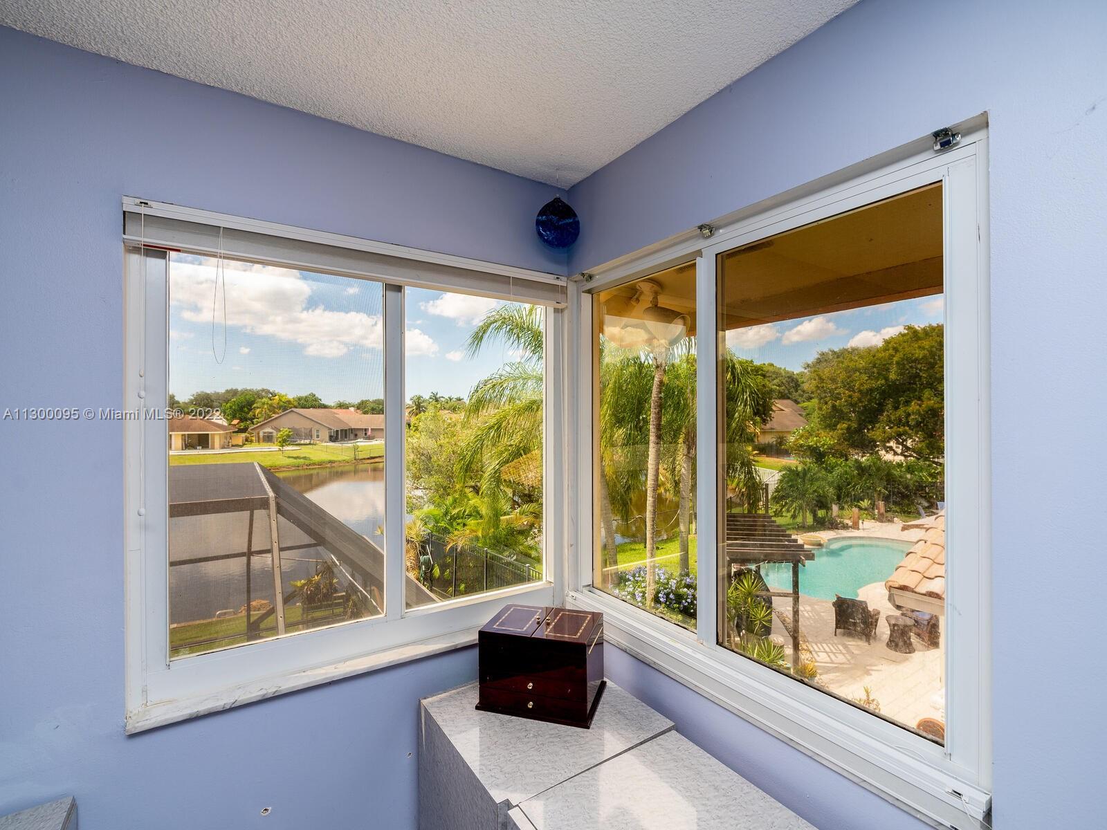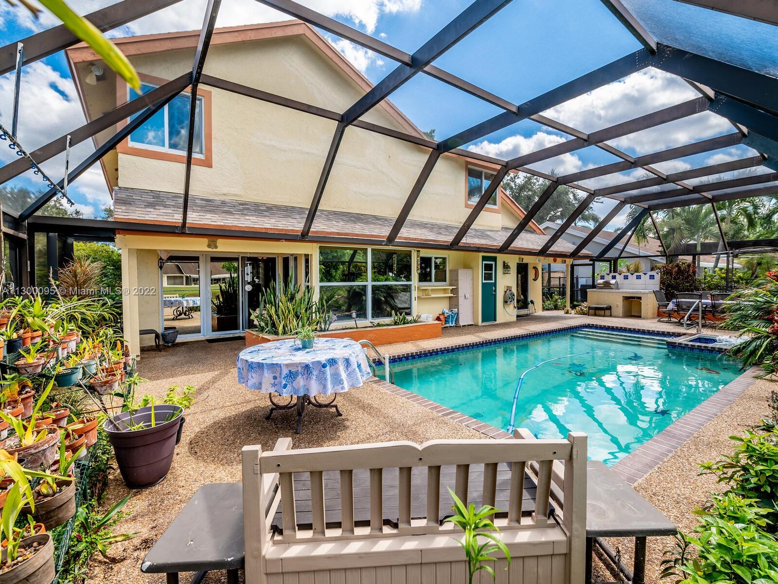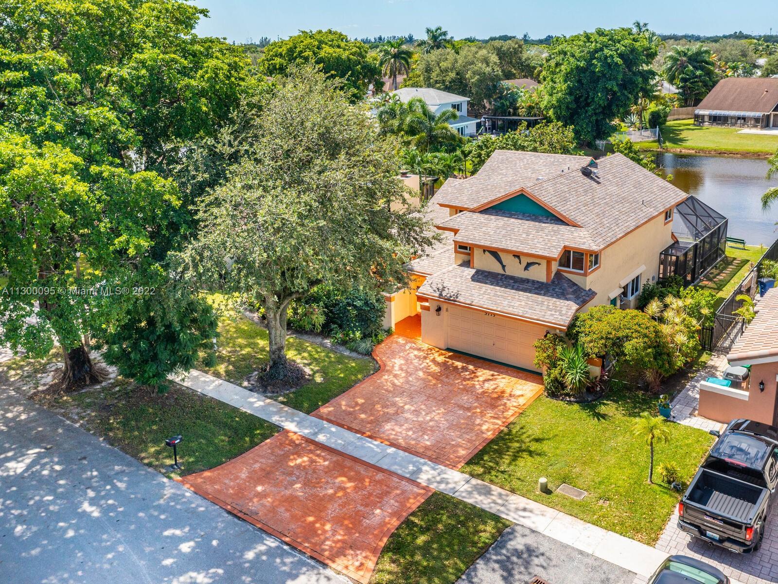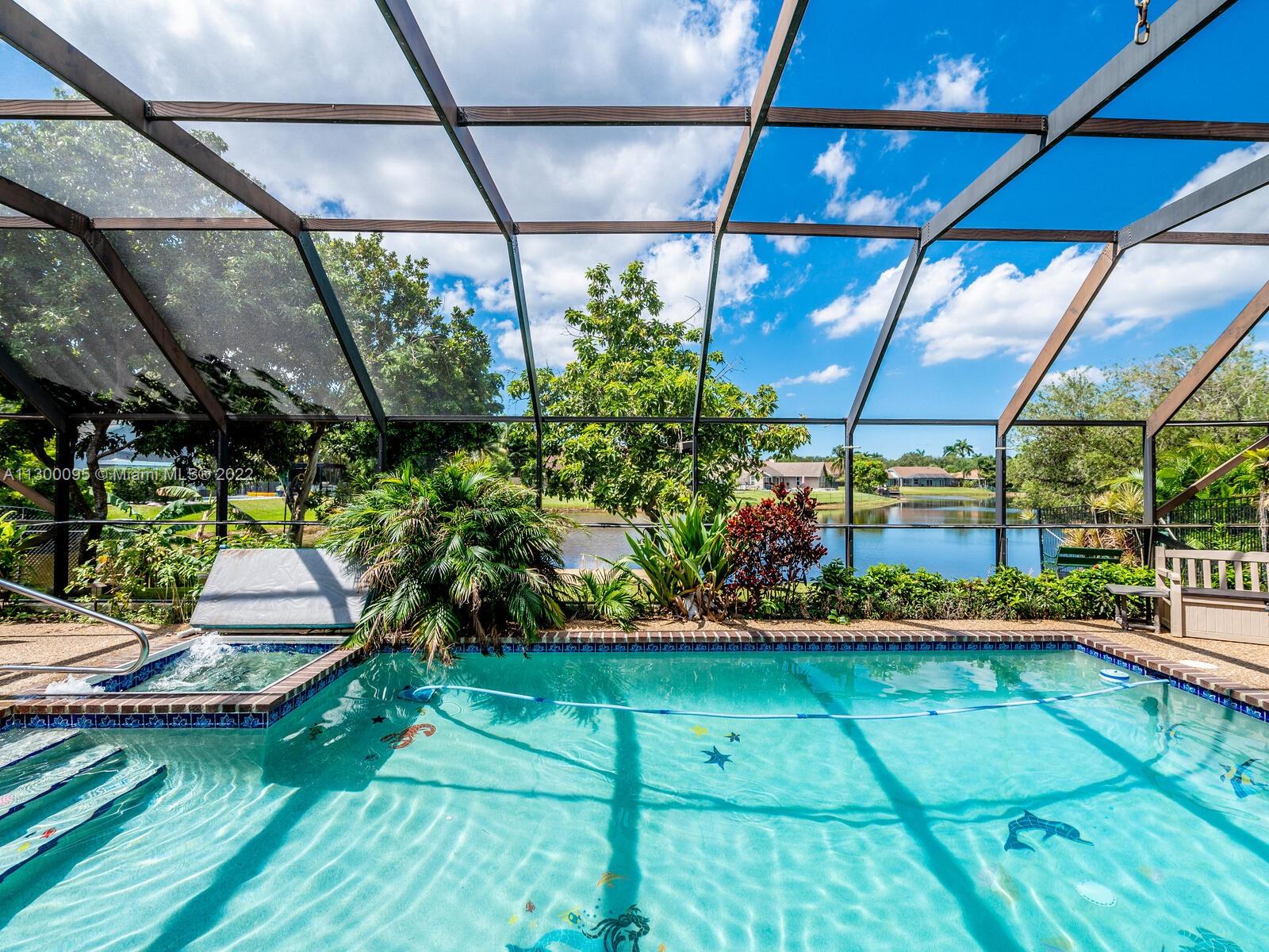 Great views & lots of space ! Country address home, waterfront with dock. pool, jacuzzi, This home is a Dogwood model features 4/3/2 car garage , laundry room with A/C, high ceilings formal living, dining room, Kitchen with wood cabinets and granite counter tops, breakfast nook, cabana bath, family room, 1st floor tile, 2nd floor carpet, Newer shingle roof, PGT Hurricane impact windows and doors that provide lots of natural light, Master suite boasts walk in closet, His/her sinks +vanity. Spacious outdoor w/built in grill perfect for entertaining and screened-in pool overlooking serene water views, large 15,210 sqft lot with lots of fruit trees, dock. Close to all Top rated schools , shopping, dining & major roadways. Non mandatory hoa of $50 yearly & lakefront assoc of $95 yrly
