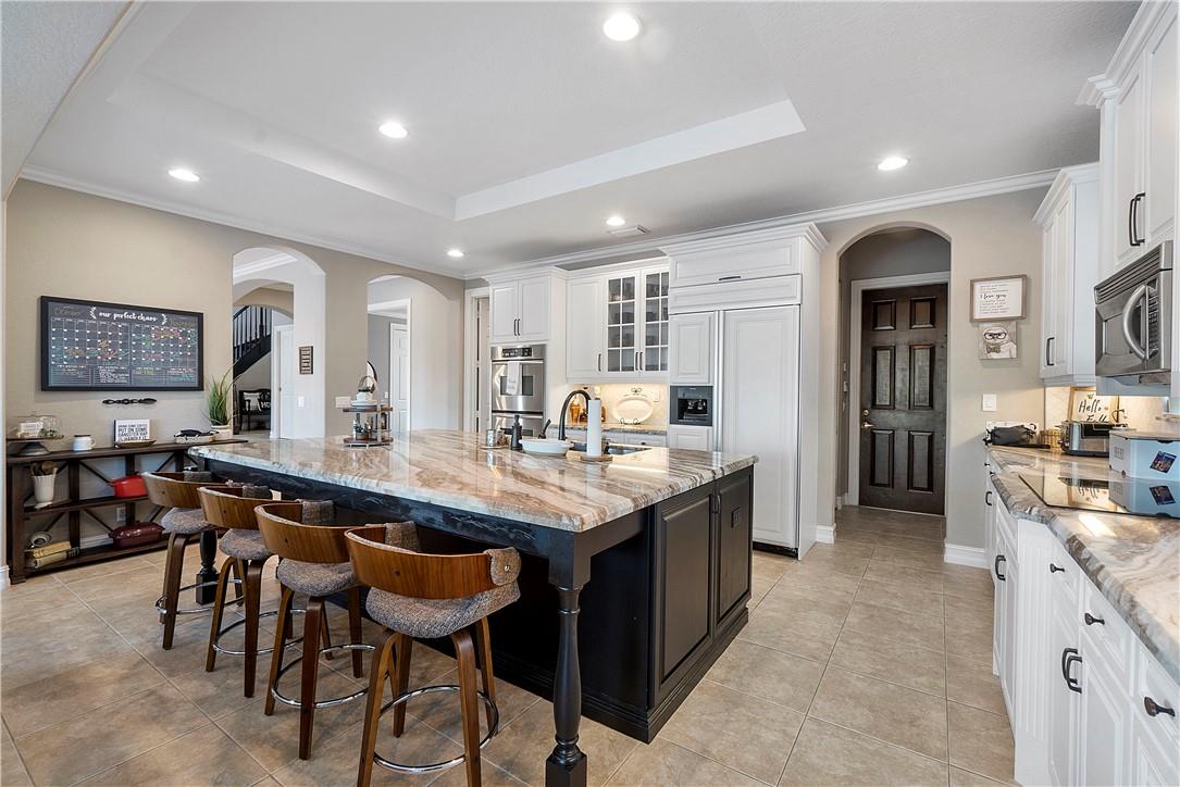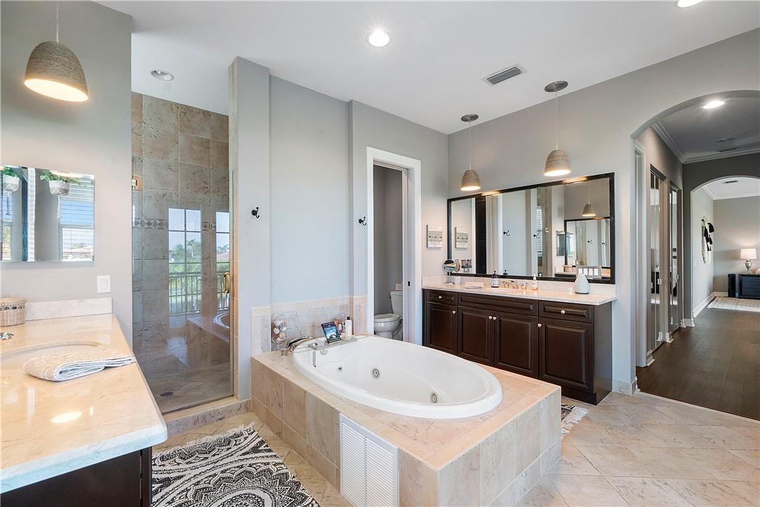 Reduced price, Spectacular cul-de-sac estate, The Glen-Heron Bay, 2 story updated stunning premium oversized 14,113 sq foot lot on breathtaking 3 point lake, Hurricane impact protection on entire house, 5th bedroom w/large balcony used as media room "can be converted back to builders 5th bedroom" 2-tone-white & oak kitchen w/ new unique marble countertops & stainless appliances, Italian tile flooring, engineered wood flooring on stairs & upstairs, Master bedroom upstairs w/en-suite sitting room & breathtaking screened balcony overlooking 3 point lake, New modern sapphire blue pool with Sandblasted modern white marble pavers overlooking huge fully fenced private back garden, Guard Gated community & roaming guards 24/7, A+ Schools. 48 hrs notice showings starting Feb 16th