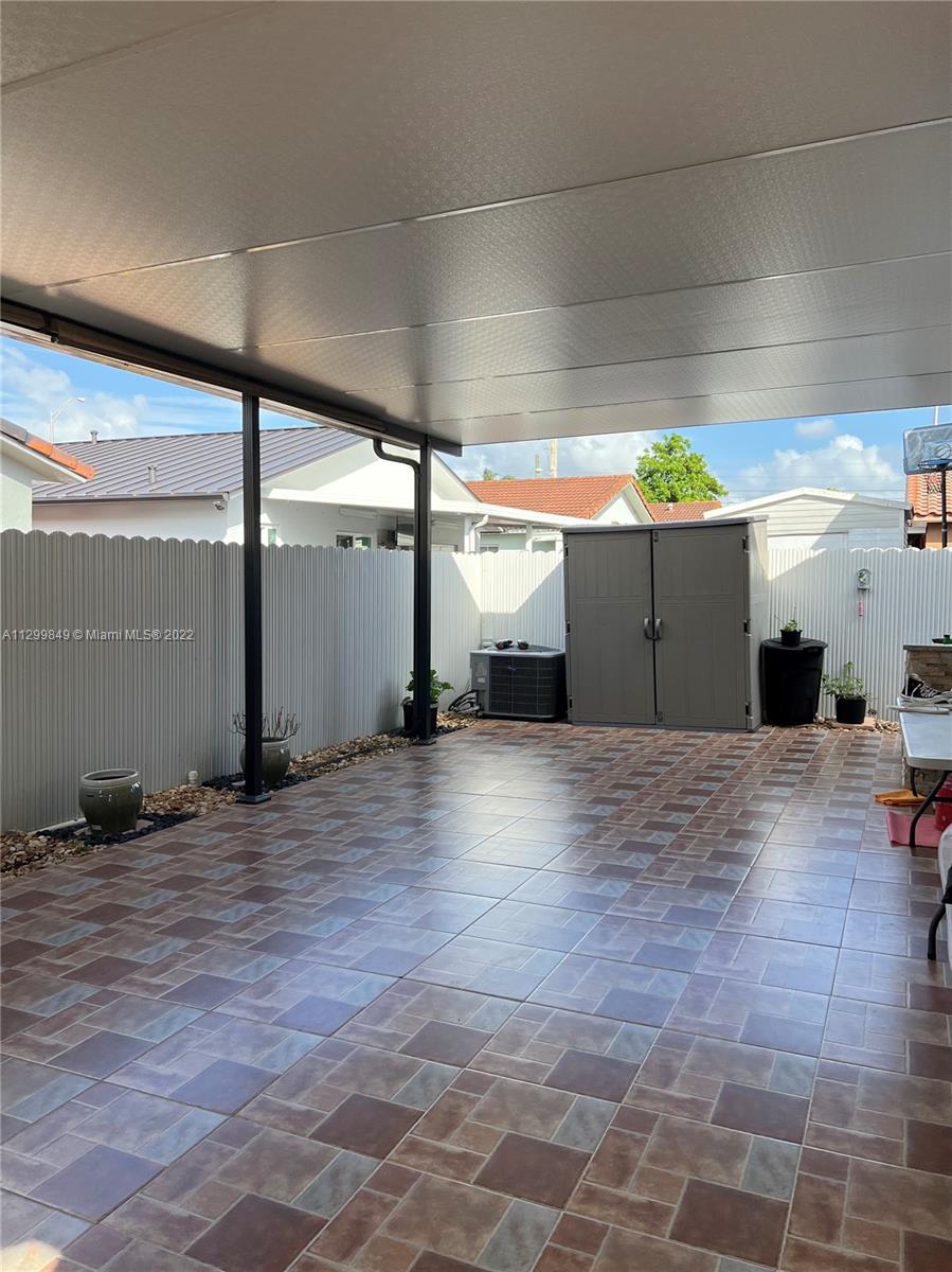 Exceptionally maintained single story three bedroom two bath home located in Hialeah. Open kitchen concept with full granite countertops and seating. Split floor plan. Owner's bath is remodeled with walk in shower. Enjoy the completely covered and tiled backyard featuring: built-in BBQ, gas stove and sinks. Exterior is freshly painted. Hurricane impact windows and doors installed in 2020. Central A/C system is from 2015. Other features include: covered entrance, rain gutters, new exterior lighting, security cameras, aluminum side gates, stamped concrete circular driveway.