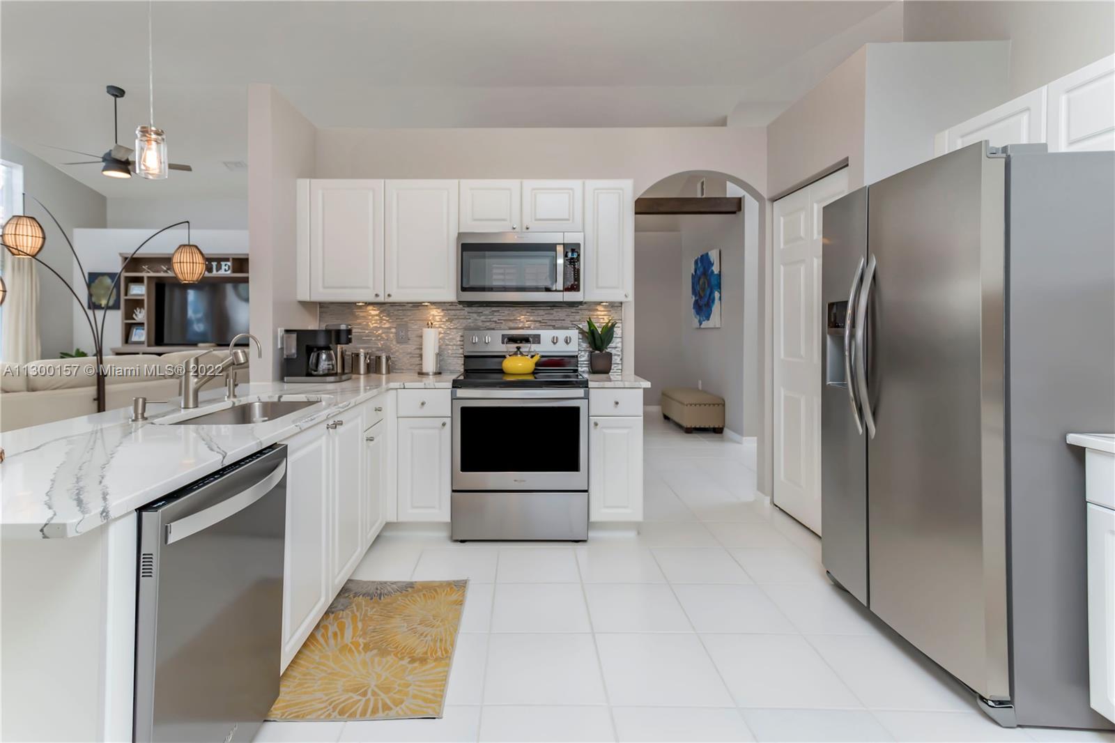 THIS HOME SHOWS LIKE A MODEL! GORGEOUS THREE BEDROOM, TWO BATHROOM, ONE STORY HOME WITH POOL & LAKE IN THE MANNED GUARD GATED SECTION OF SILVER LAKES. THIS HOME FEATURES PLANTATION SHUTTERS & VOLUME CEILINGS. THE MODERN KITCHEN IS COMPLETE W/QUARTZ COUNTERTOPS, WHITE CABINETRY & STAINLESS STEEL APPLIANCES. THE SPACIOUS MASTER SUITE HAS NEWLY UPGRADED FLOORING, THE MASTER BATH WAS RECENTLY UPGRADED W/NEW FLOORING, NEW VANITIES W/QUARTZ COUNTERTOPS, DEEP SOAKING TUB & NEW SHOWER. THE TWO OTHER BEDROOMS ALSO HAVE UPGRADED FLOORING. THE FENCED-IN BACKYARD IS THE PERFECT PLACE TO RELAX, TRAVERTINE PATIO, NEWLY RESURFACED POOL, BEAUTIFUL LANDSCAPING, COVERED SITTING AREA, ALL OVERLOOKING THE PEACEFUL LAKE. THE SLIDING GLASS DOORS ARE HURRICANE IMPACT. NEW A/C (2018), NEW WATER HEATER (2020).