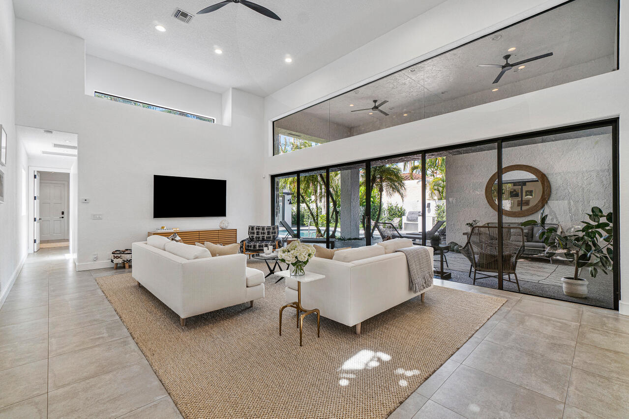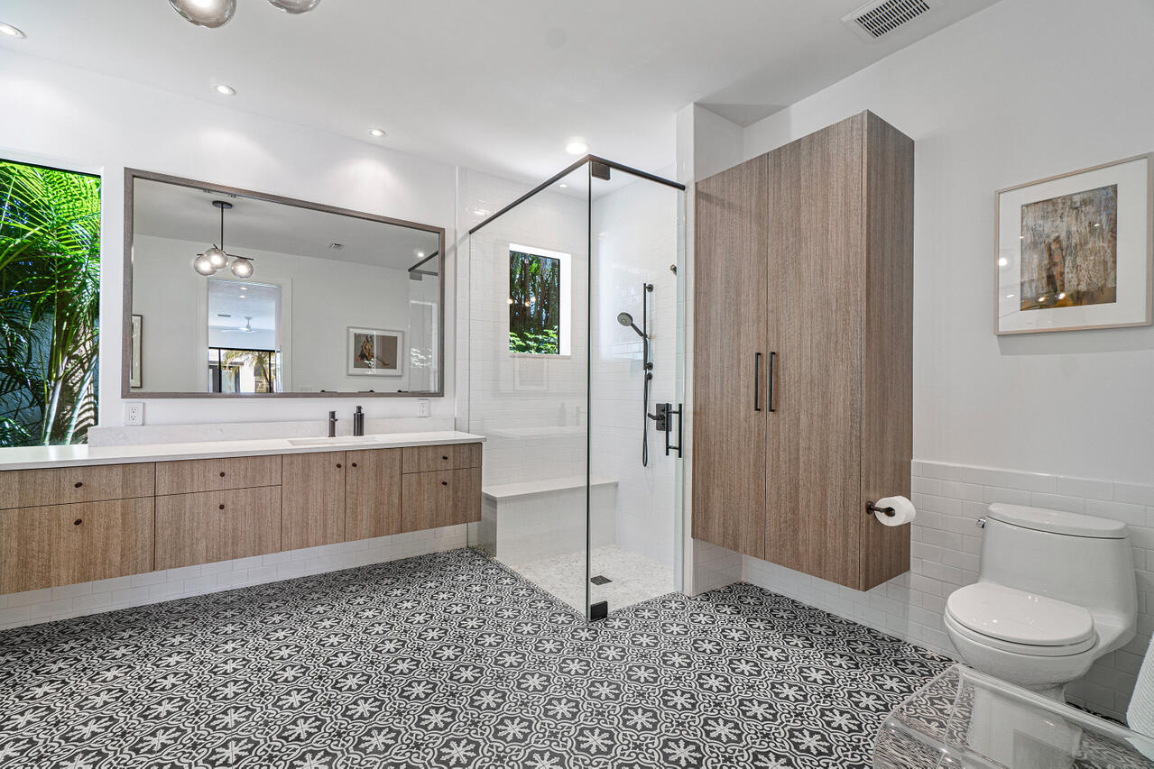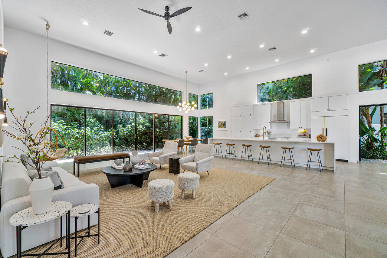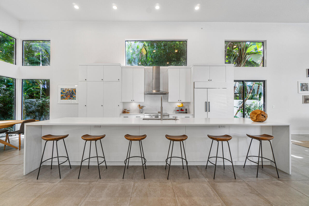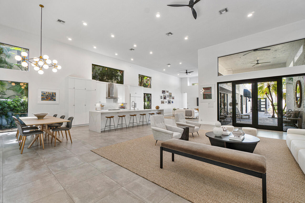 A chic sense of combined organic and modern elements creates the perfect balance for this one-of-a-kind home. Upon entering the private courtyard you are greeted by a charming balance of nature that connects seamlessly with the pool and outdoor entertaining spaces. Soaring ceiling heights are inundated with natural light while the open-concept design creates an impressive statement when walking into the main house. The sizable open kitchen with a Ceasar stone waterfall island smartly integrates Sub-zero refrigerator and dual wine coolers, Wolf appliances, and an intelligent design behind the matte white cabinetry. The master bedroom features tranquil views, dual walk-in closets and a clean-lined contemporary master bathroom with a glass feature wall that incorporates nature into the space.