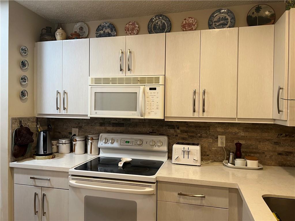 Beautifully renovated three bedroom townhouse ideally located in a cul-de-sac privately tucked away. The corner home features a new kitchen tastefully done with soft close doors and drawers, travertine tile flooring throughout the first floor and wood on the stairs and the second floor. The main bedroom and bathroom is on the first floor, while the second floor has both guest bedrooms, a large loft which could potentially be a fouth bedroom as it features a closet and a window, or it can be a den or an office. All bedroom closets are furnished with California closets, the property features lots of storage space. The patio is private and one of a kind perfectly laid out for a great family barbecue fun day or just a happy hour evening. No HOA approval required. Rentable property immediately!