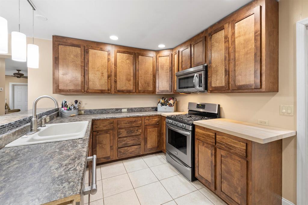 Beautiful 4 bed 2 bath home featuring tile floors throughout and no HOA! The open concept kitchen is ready to entertain with 42'' real wood kitchen cabinets and a breakfast bar. The backyard features a 6 ft privacy fence, wood deck, shed, and concrete pad for an RV/Boat/Trailer. Oversized entry door and back door is perfect for moving furniture in! Energy efficient gas hookup for Range, Washer, Dryer, and Water Heater! Replacement dates for Roof (2010), A/C (2014), Gas Instant Hot Water Heater (2022).